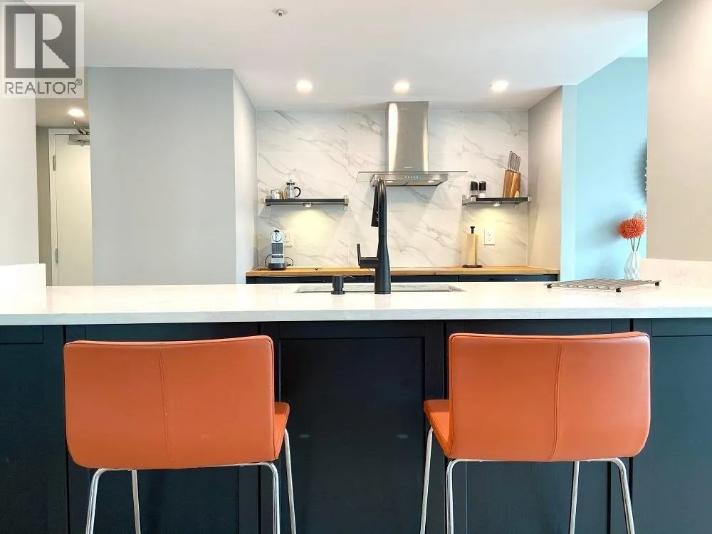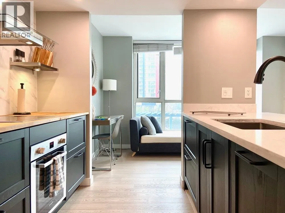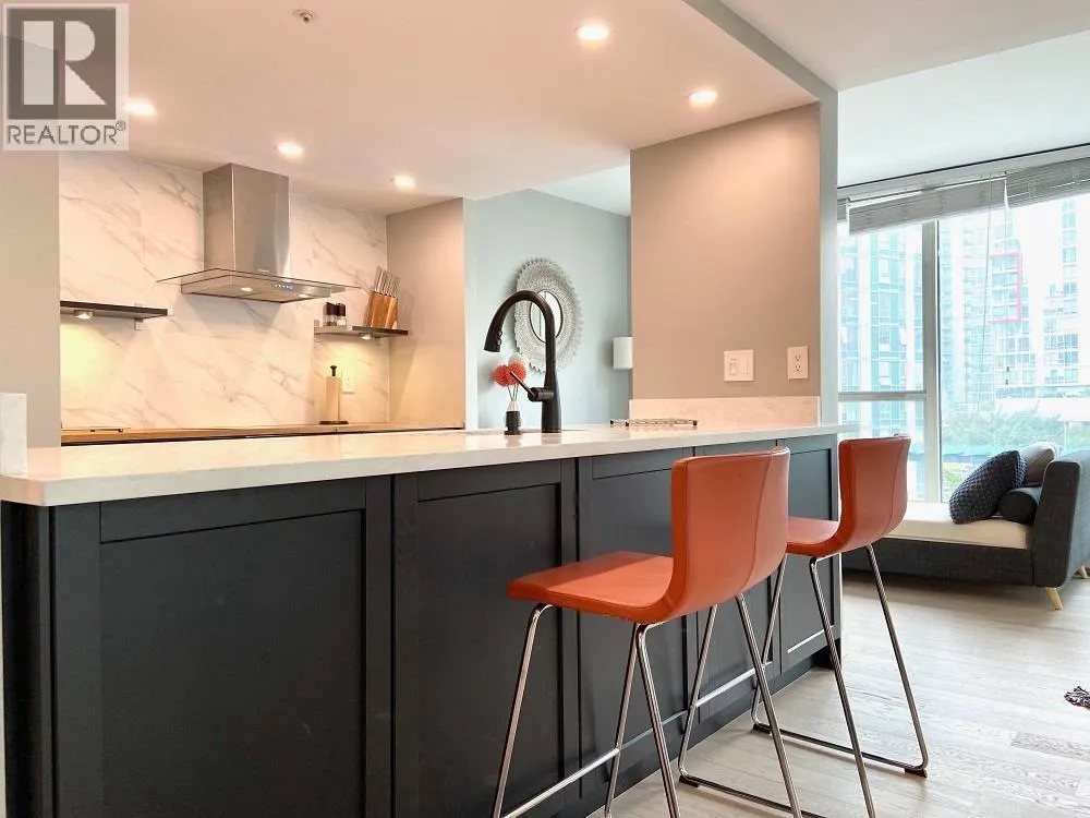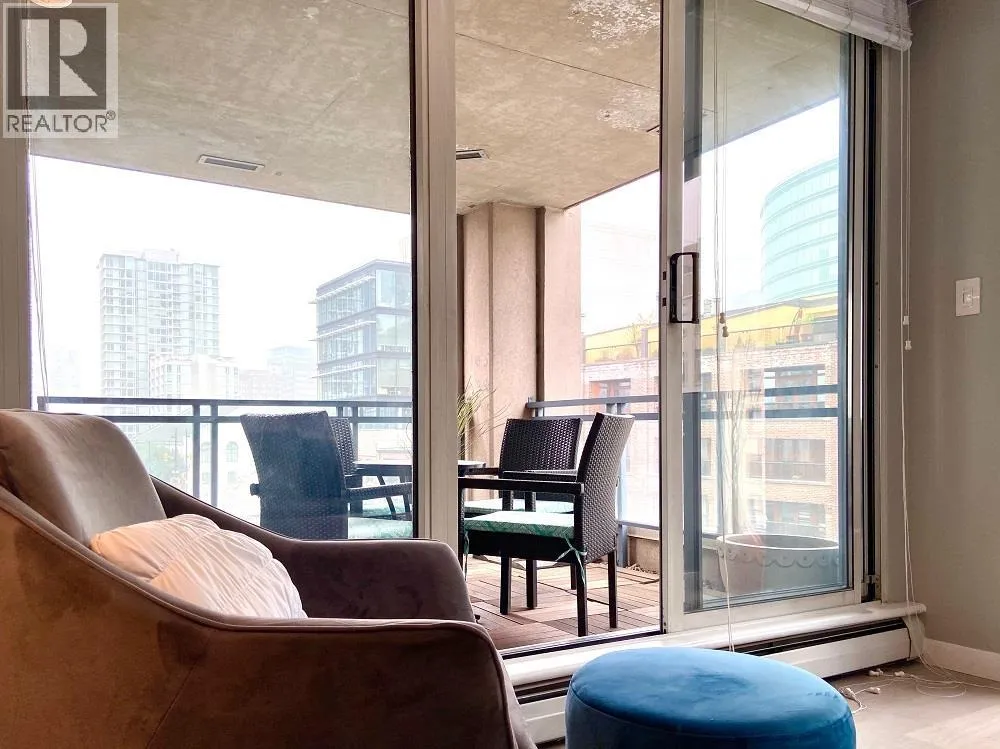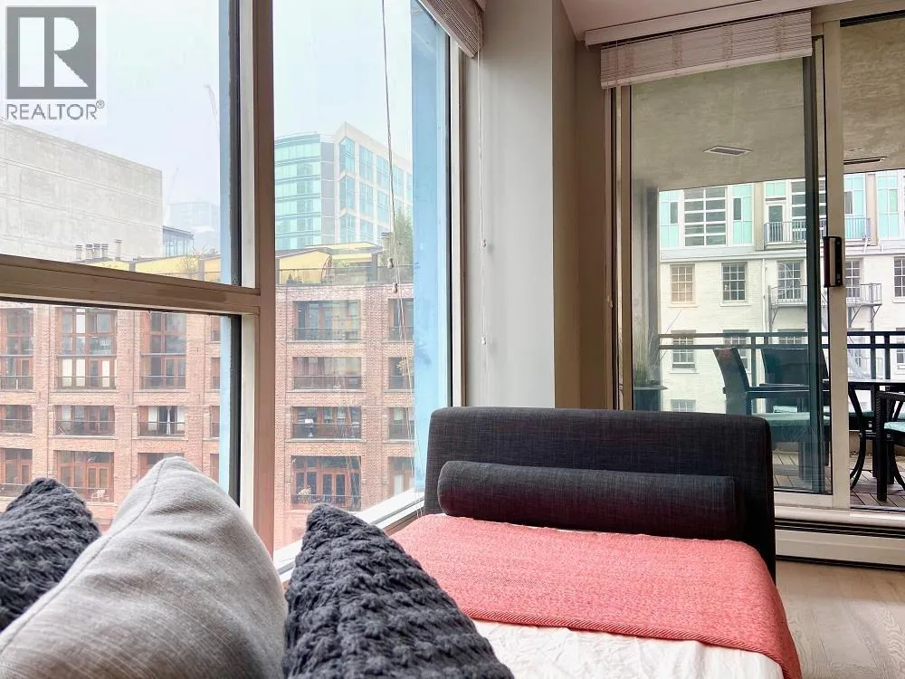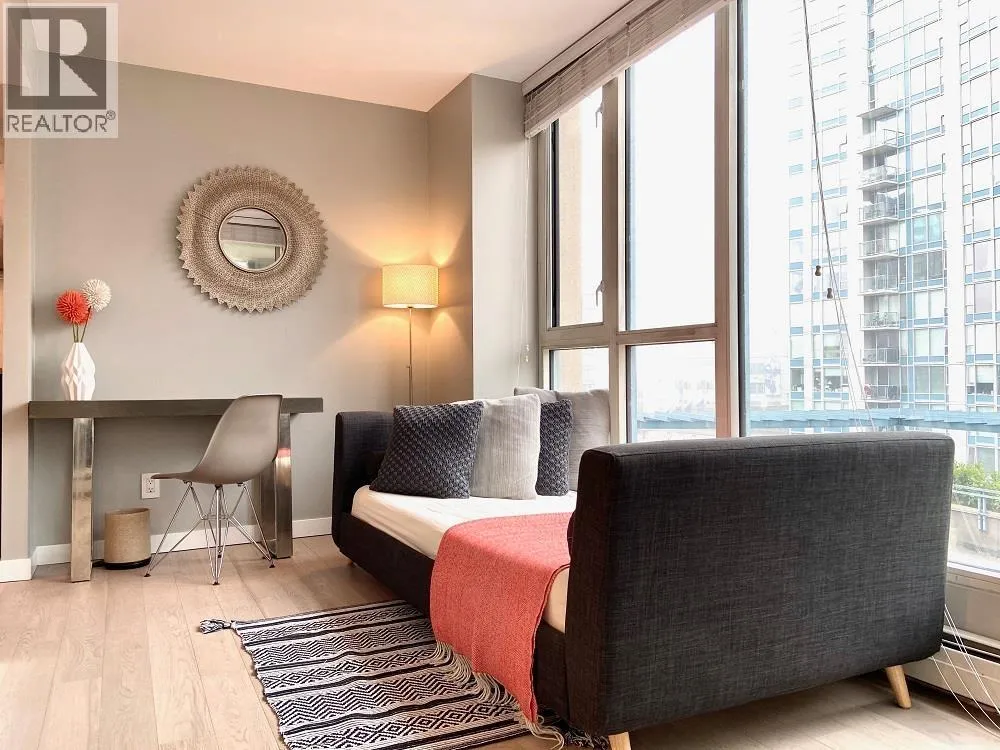 This spectacular 1 bedroom, 1 bathroom Vancouver Furnished Condo for Rent features beautiful modern décor, a large private balcony with city views, hardwood flooring, large windows, a den area and perfect amount of living space. Find a fireplace anchoring the main living space, an L-shaped sofa, modern home accents and access to the balcony. This open concept design enjoys a dining area complete with seating for 4 and access to a brilliant kitchen. The kitchen features beautiful dark cabinetry, a marble backsplash, quartz and wood countertops, a breakfast bar with seating for 2 and upscale Subzero and Bosch appliances. Find the den area with a perfect workstation and chaise lounger and enjoy the flexibility in this space. (id:27476)