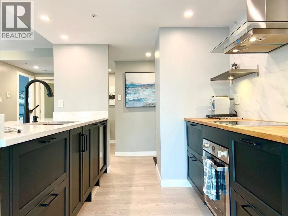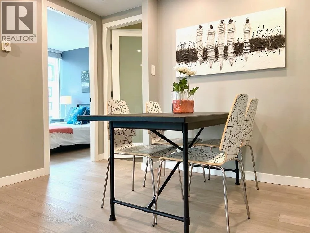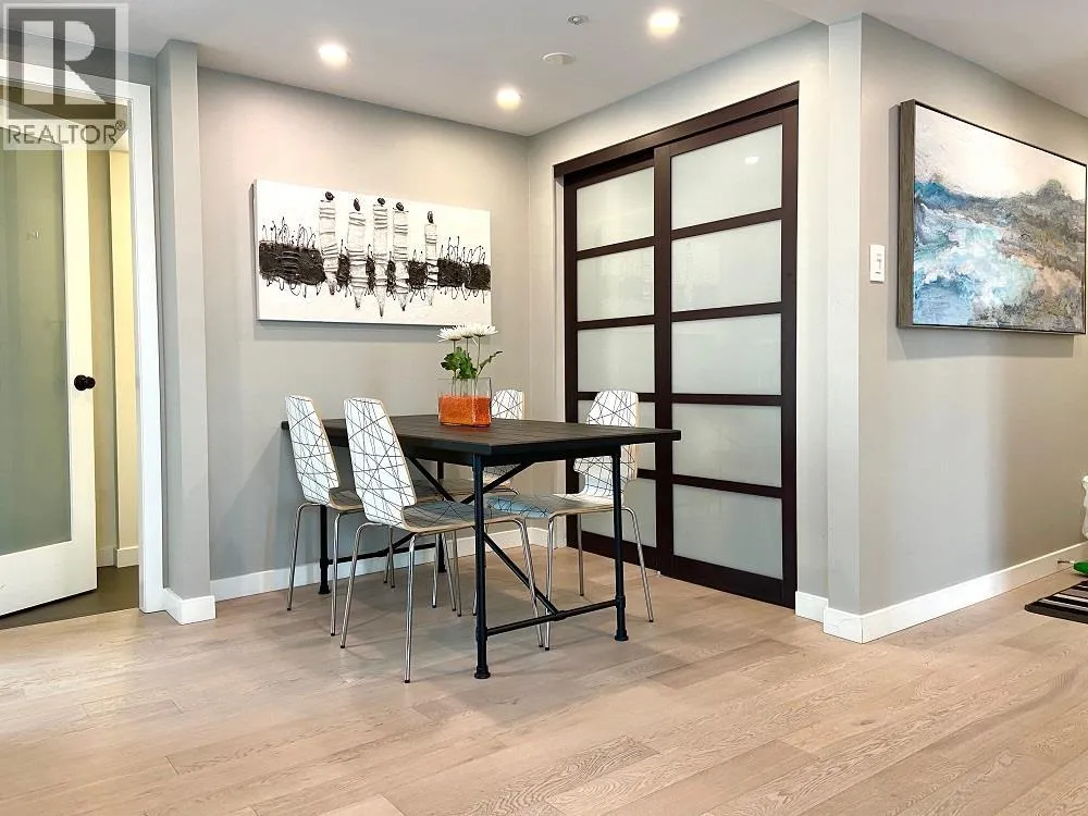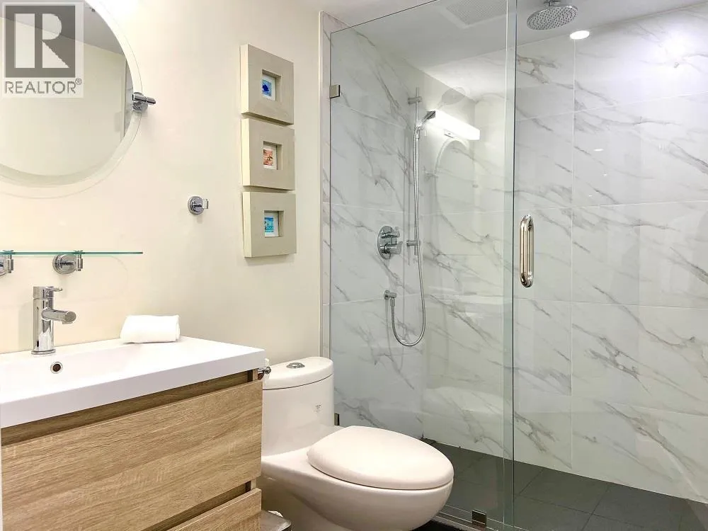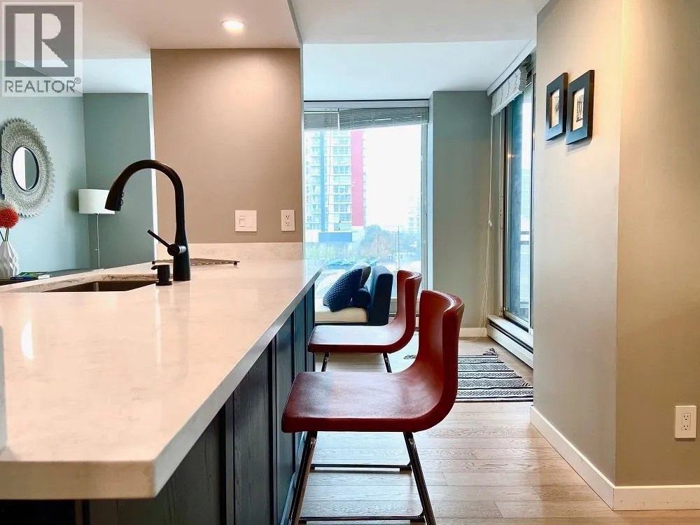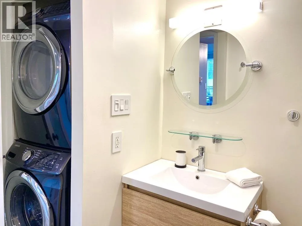 This spectacular 1 bedroom, 1 bathroom Vancouver Furnished Condo for Rent features beautiful modern décor, a large private balcony with city views, hardwood flooring, large windows, a den area and perfect amount of living space. Find a fireplace anchoring the main living space, an L-shaped sofa, modern home accents and access to the balcony. This open concept design enjoys a dining area complete with seating for 4 and access to a brilliant kitchen. The kitchen features beautiful dark cabinetry, a marble backsplash, quartz and wood countertops, a breakfast bar with seating for 2 and upscale Subzero and Bosch appliances. Find the den area with a perfect workstation and chaise lounger and enjoy the flexibility in this space. (id:27476)