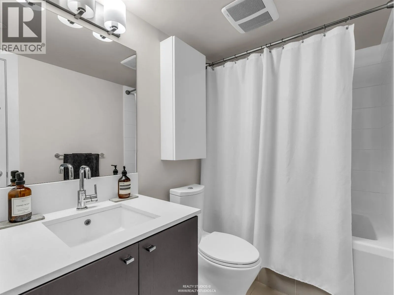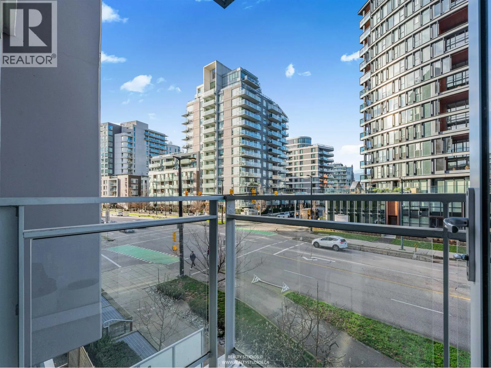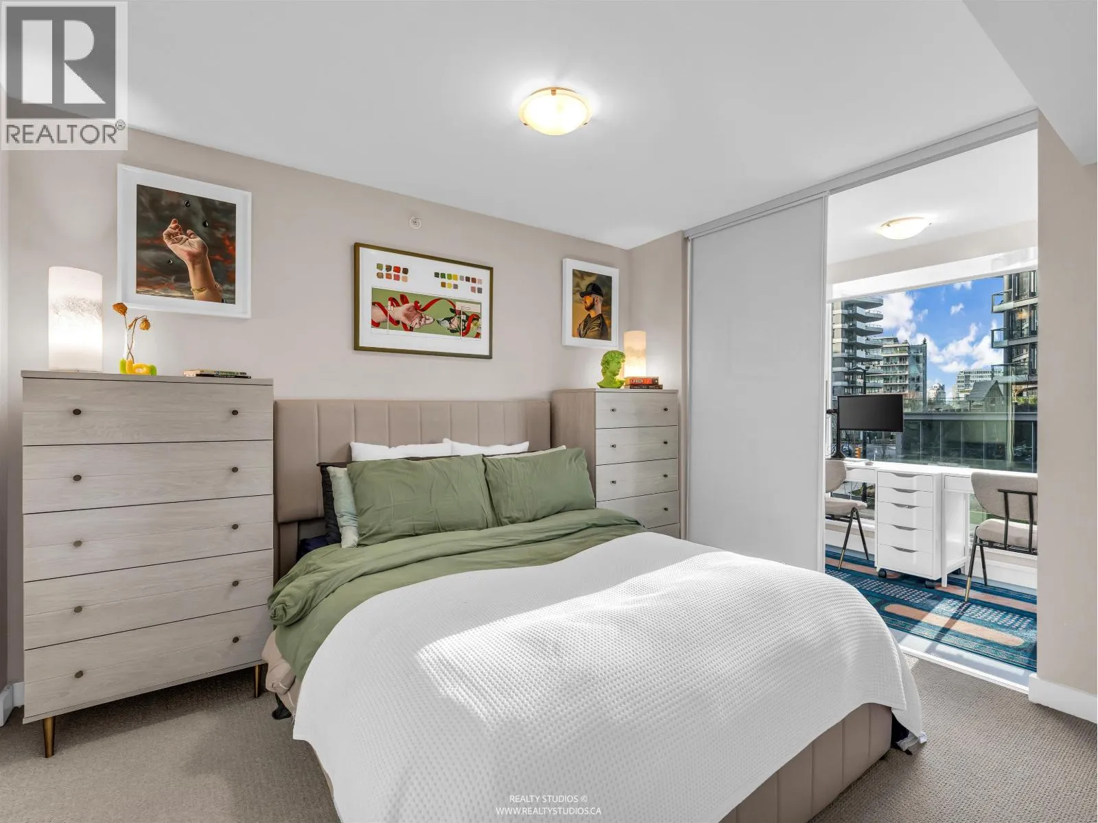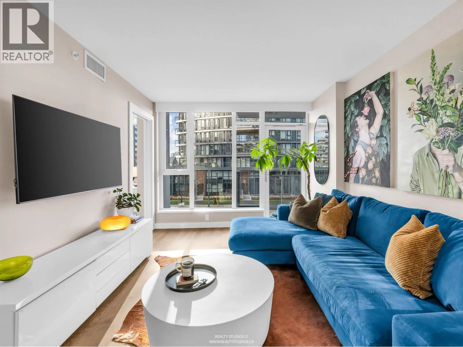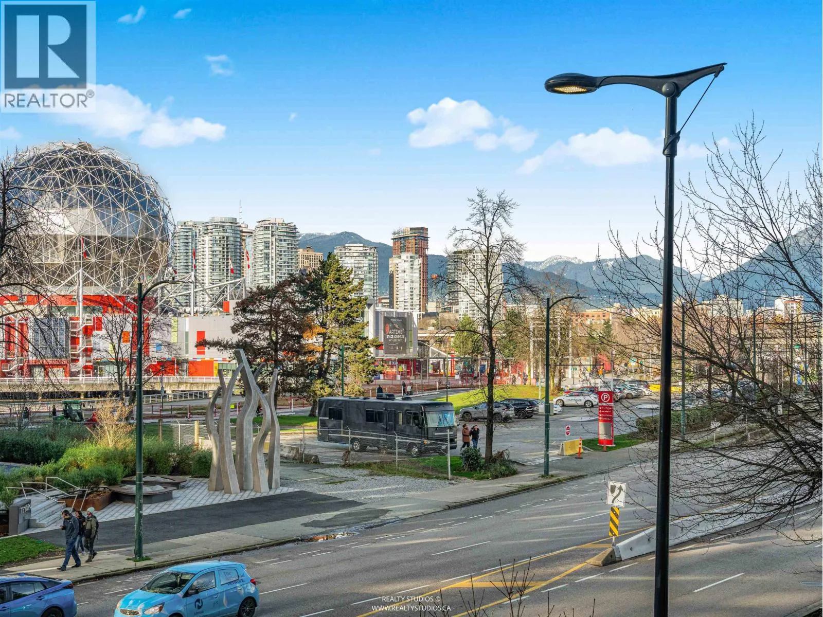 Welcome to Central by ONNI! This bright and well-designed 1-bedroom, 1-bath home boasts fabulous city and mountain views and features a gourmet kitchen with stainless steel appliances, gas range, and quartz countertops. Thoughtfully laid out with air conditioning, a den, and a versatile solarium/flex space, this residence offers both comfort and functionality. Ideally located just steps from the Seawall, SkyTrain, Olympic Village, parks, and an excellent selection of restaurants and shops. Enjoy outstanding amenities including a fully equipped gym, rooftop garden and playground, theatre room, sauna, and concierge service. Includes one parking stall and one storage locker. An excellent opportunity for first-time buyers or investors alike! (id:27476)