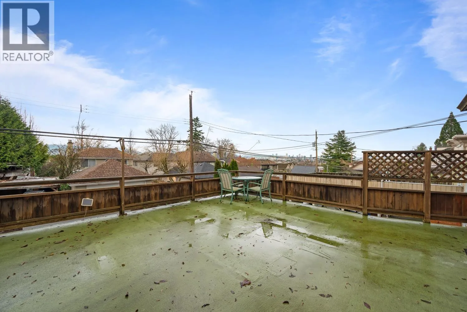 This bright and spacious main house in Point Grey offers comfortable living in a highly sought-after neighbourhood within the Lord Byng Secondary catchment. The home features three bedrooms, a generous living room, one full bathroom plus a convenient half bathroom, and approximately 1,500 sq.ft. of well-laid-out living space. A standout feature is the expansive 600 sq.ft. balcony with panoramic city views, complete with an outdoor table and chairs, making it ideal for relaxing or entertaining. The location is exceptionally convenient, with bus routes 7, 9, and 14 just a five-minute walk away, providing direct access to UBC and Downtown Vancouver. Daily essentials are close at hand, including supermarkets, restaurants, cafés, shopping, and entertainment. Move in ready! (id:27476)