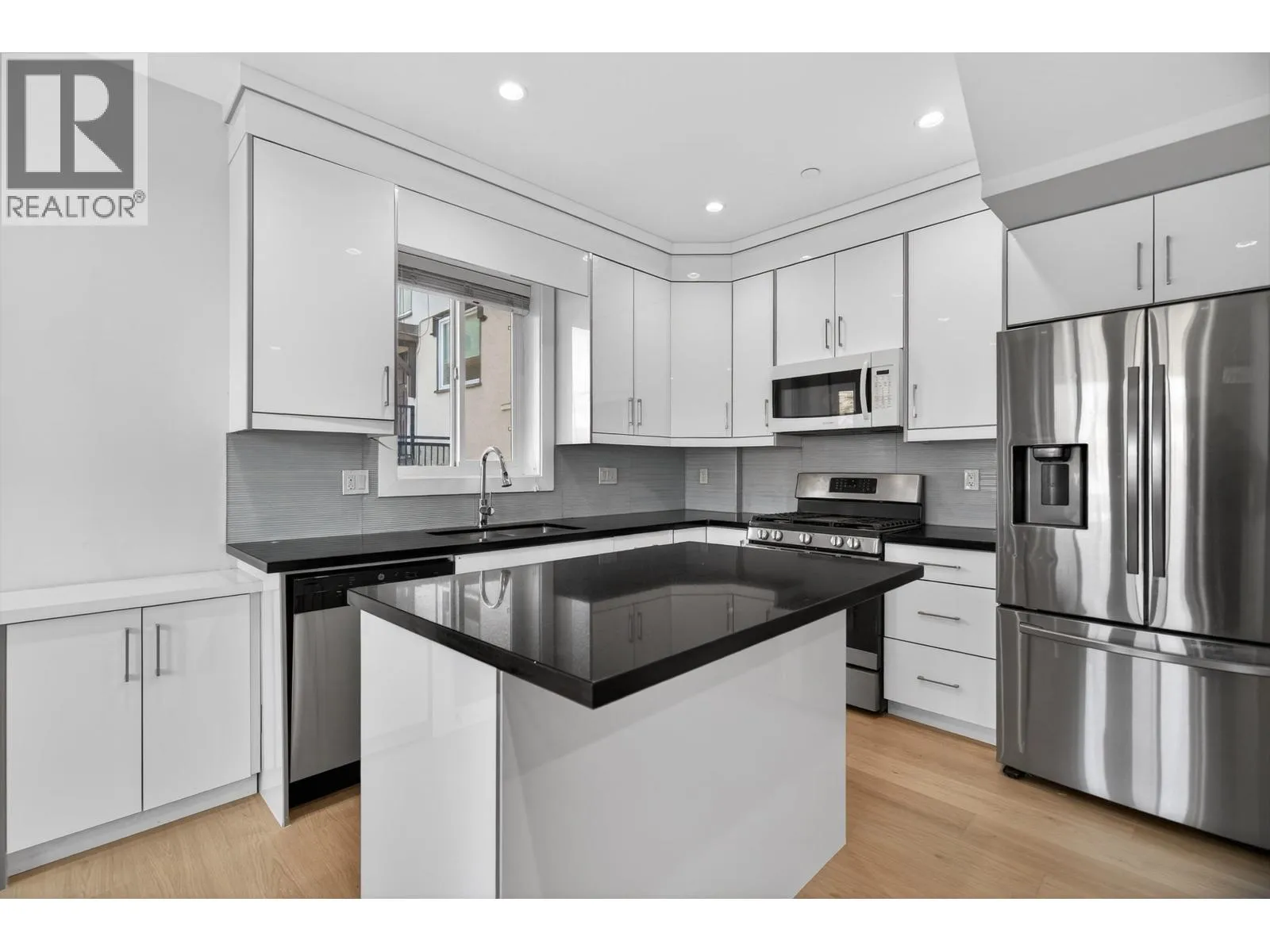 Welcome to this modern 4-level duplex built in 2021, offering almost 1,600 square ft of well-designed living space in a convenient East Vancouver location. Thoughtfully laid out with contemporary finishes, the home features quartz countertops, clean modern lines, and a functional floor plan ideal for everyday living and entertaining. A key highlight is the LEGAL 2-bedroom self-contained suite with a private entrance, currently rented month-to-month at $1,900, providing excellent mortgage assistance or flexibility for extended family. Added value includes security cameras and low-maintenance newer construction. Close to schools, parks, transit, and daily amenities, this home is a smart opportunity for both end-users and investors. (OPEN HOUSE SUNDAY JAN 4, 2026 1-4PM) (id:27476)