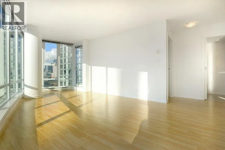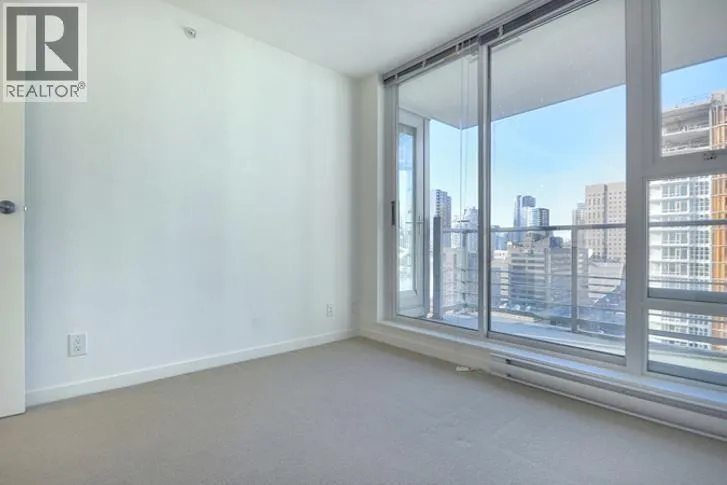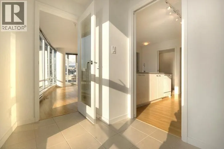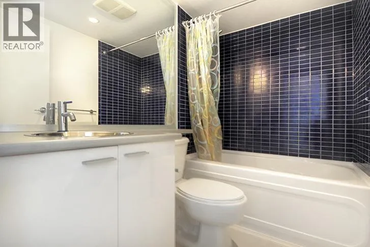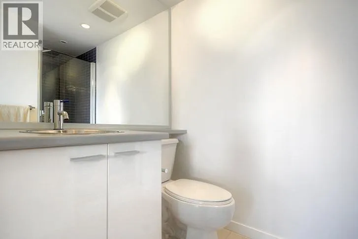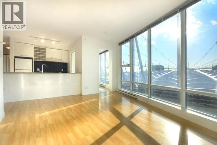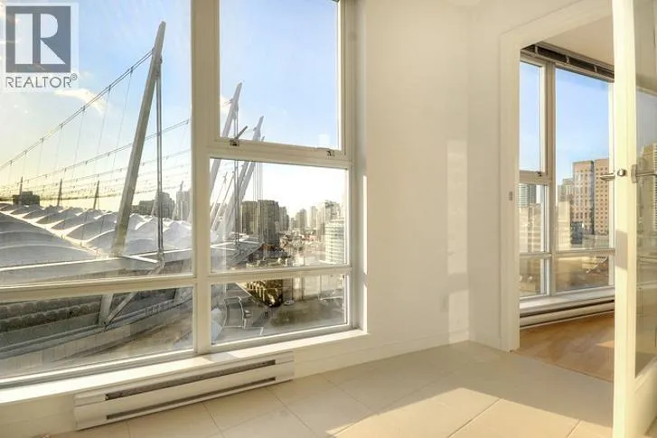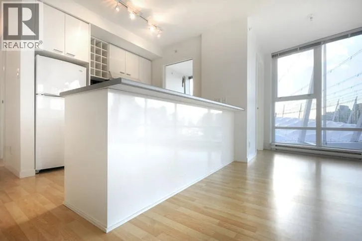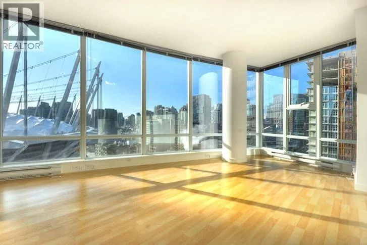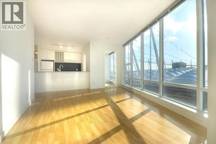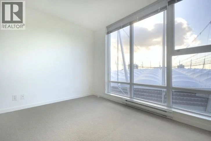This 2 bedroom + den + office + balcony unit faces south west directly overlooks BC Place to the left and Downtown buildings to the right. The open living area features laminate floorings throughout, floor-to-ceilings windows down one whole side of the unit maximizing natural sunlight, and access to the covered balcony. The full size gourmet kitchen comes with all white cabinets, a large centre island with breakfast bar, built-in wine rack, Faber hidden hoodfan and ceramic glass cooktop. Adjacent to the kitchen is a den with glass walls which can be used as a dining room. Both bedrooms have sensibly dark coloured carpets. At the corner there is a large office or storage room. Both bathrooms comes with stainless steel circular basins with sleek single lever chrome faucets. (id:27476)