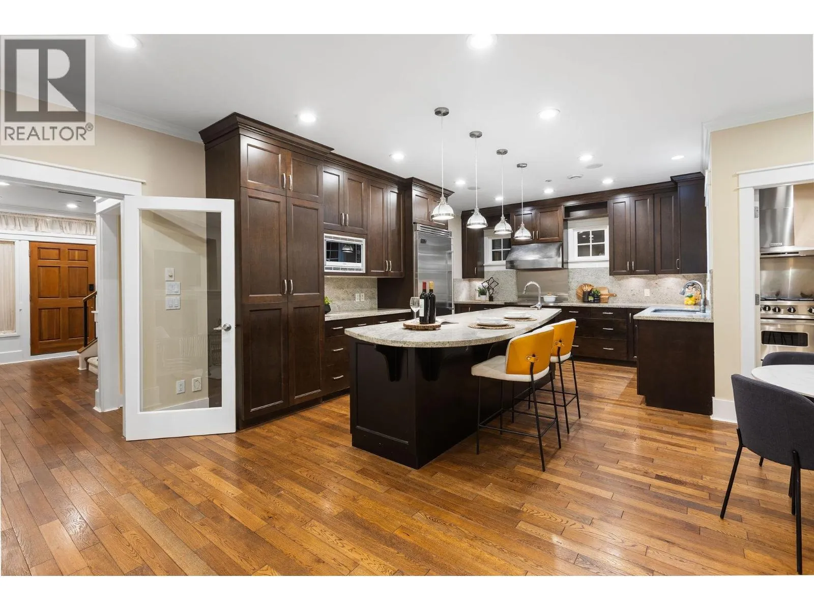 NEWLY RENOVATED - A masterclass in craftsmanship and design, this opulent Craftsman gated residence sits on a prized corner lot in Vancouver´s exclusive Dunbar enclave. Its generous proportions, nearly 50 ft of frontage, abundant north-south exposures, & west-facing windows fill the interiors with natural light, creating a bright, airy flow throughout. The home features soaring 9-ft ceilings, a fully appointed wok kitchen (added 2016) , new laminate floors, fresh paint, & the flexibility of a self-contained in-law suite below. Additional highlights include VIKING appliances, a built-in music system, AC, exquisite moldings, and the best school catchment in Vancouver, making it ideal for families. Every detail combines luxury, and timeless appeal in this exceptional Dunbar residence. (id:27476)