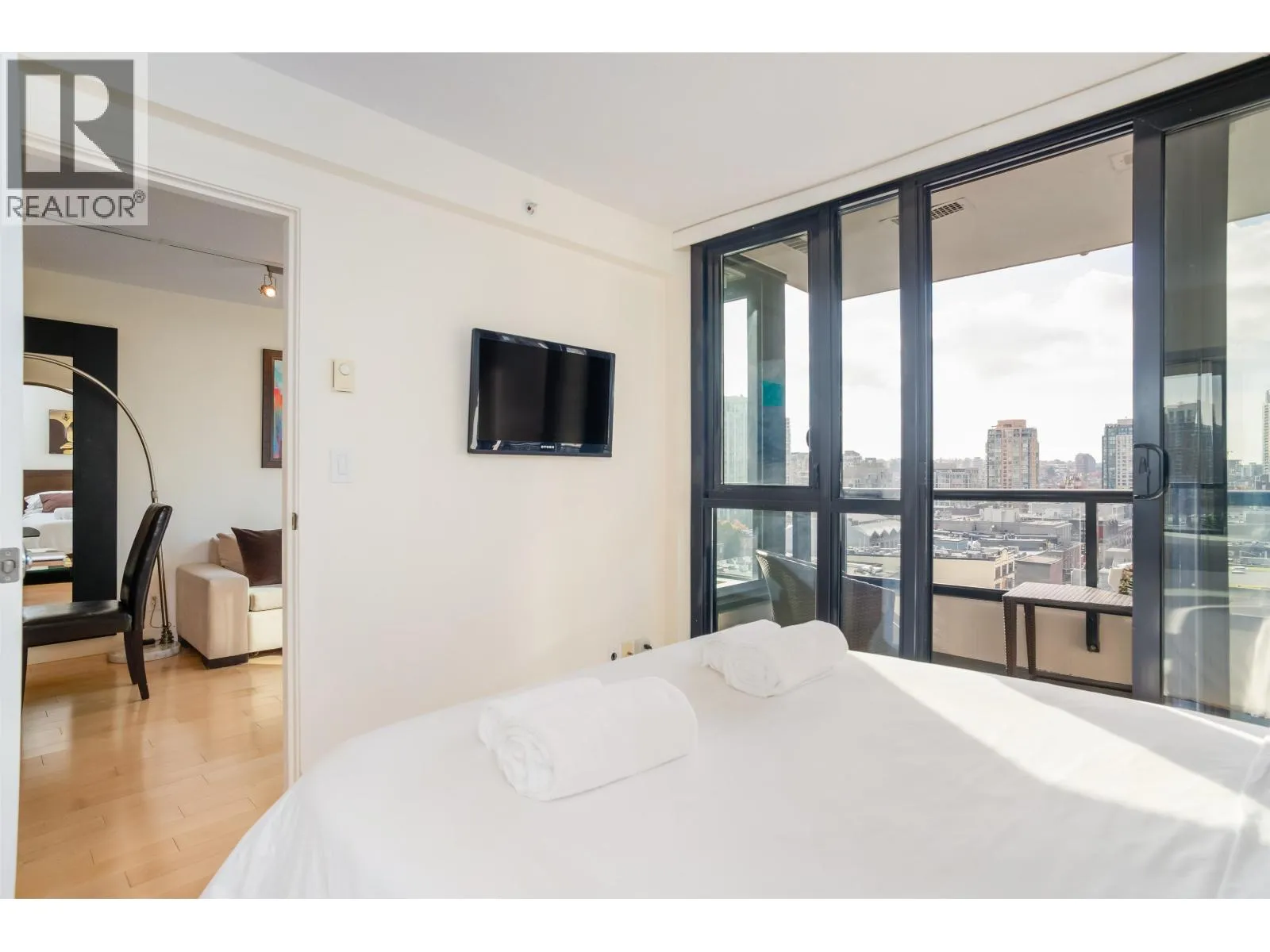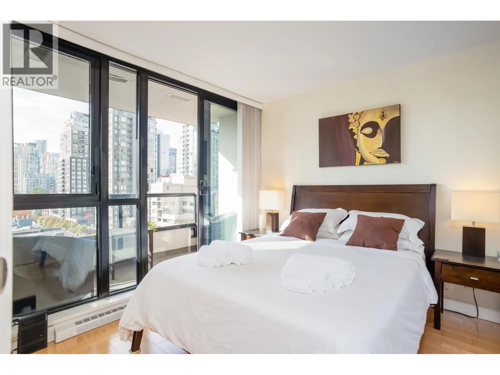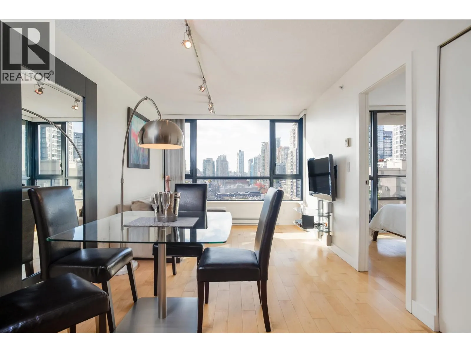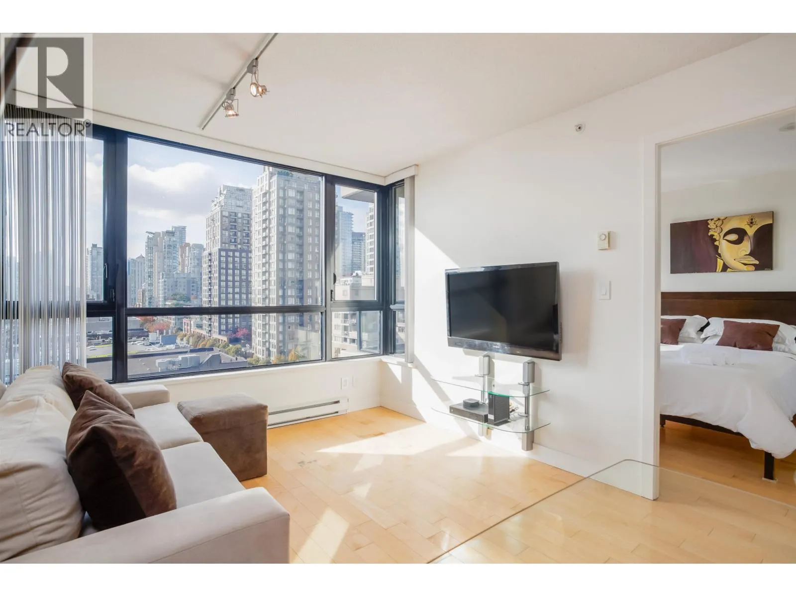 *Yaletown Park 1** - This highly sought-after "10" plan is rarely available and features bright southern exposure, offering exceptional views of Yaletown and False Creek. Upon en*try, one is greeted by floor-to-ceiling windows, an efficient layout, a den or flex area, and a covered balcony.Upgrades include engineered wood flooring, a Bosch washer and dryer, a GE dishwasher, and track lighting. The kitchen is thoughtfully designed, featuring a spacious island, stone countertops, and stainless steel appliances. This residence presents an opportunity as a turnkey investment, suitable for rental use.The building provides a range of amenities, including 24-hour concierge service, a gym, a bicycle room, a garden, and a guest suite. CLOSE to Seawall, shopping boutiques, and the Canada Line. (id:27476)