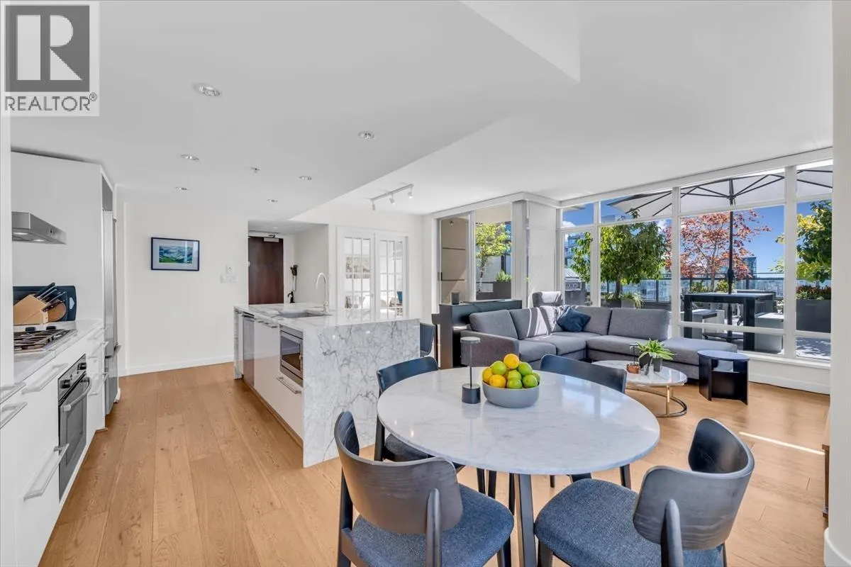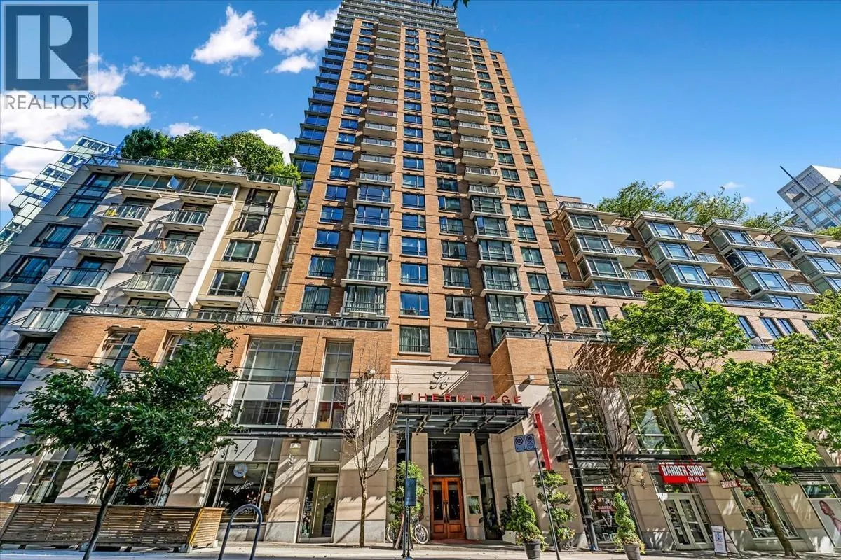 Welcome to L´Hermitage! This stunning 1,312 sq. ft. 2 Bed + Den corner unit features just under 1000 sq. ft. of additional outdoor living space with expansive city views! Inside, enjoy air-conditioning, hardwood floors, and a chef-inspired kitchen with an oversized island, Bosch appliances, and Sub-Zero fridge. Walk out from your open-concept main living space onto your private wrap-around terrace - perfect for entertaining! The primary suite features a large walk-in closet, double-sink ensuite, and direct access to the west-facing balcony. Includes two side-by-side parking stalls & oversized storage locker. L´Hermitage is one of Vancouver´s most coveted addresses, with 24-hour concierge & resort-style amenities: outdoor pool & spa, steam room, gym & more! Located at Richards & Robson, just steps to restaurants, shopping & entertainment! Open House Sat/Sun 2-4pm. (id:27476)