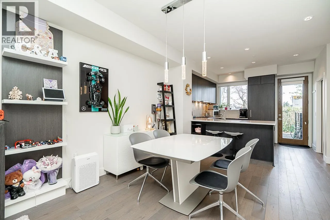 Welcome to this beautifully upgraded 3-level + basement townhouse in Vancouver's desirable Cambie neighborhood. Offering 1,609sf of living space, this 3 bed+den,3.5 bath home with AC is directly across from VandDusen Garden. Step inside to discover warm interior with custom upgrades throughout-many built in cabinetries on all levels such as cabinets around fireplace and California closet on the main, built in hamper & jewelry organizers on top floor, heated floor in master ensuite, murphy bed and custom built cabinet on 2nd level, entertainment unit storage built in basement with engineering hardwood floor. All windows are screened for year-round comfort and airflow. This home comes with 2 secured parking with EV charging. Not to mention is unit is facing the back, away from Oak (id:27476)