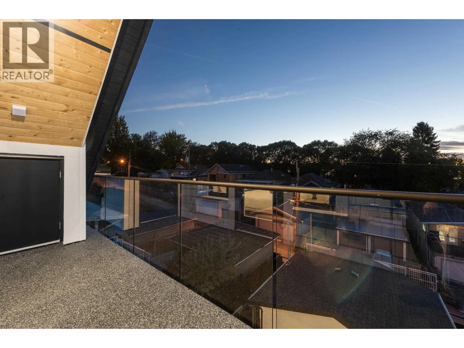 This brand new BACK half duplex is thoughtfully crafted by an experienced builder who carefully selected premium materials throughout, from custom closets to built-in cabinetry. The main floor boasts 10 ft ceilings, a spacious open layout, Fisher & Paykel appliances, quartz countertops, a custom bar/pantry, and a built-in entertainment centre. Enjoy both an elevated deck and ground floor patio, perfect for indoor-outdoor living. Modern comforts include a heat pump, forced air, air conditioning, alarm/security system with monitors, electric fireplace, and in-ceiling speakers. The home offers a stunning top-floor balcony view, single-car garage with roller-style doors, and a covered entryway. Conveniently located near Victoria Drive shops, Mount Pleasant, Downtown Vancouver & bus to UBC (id:27476)