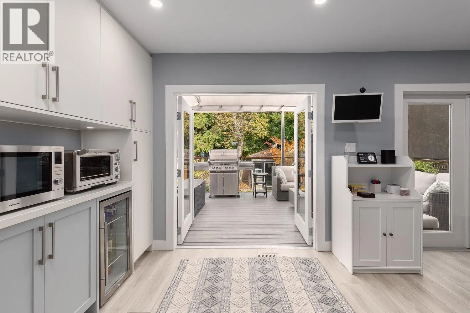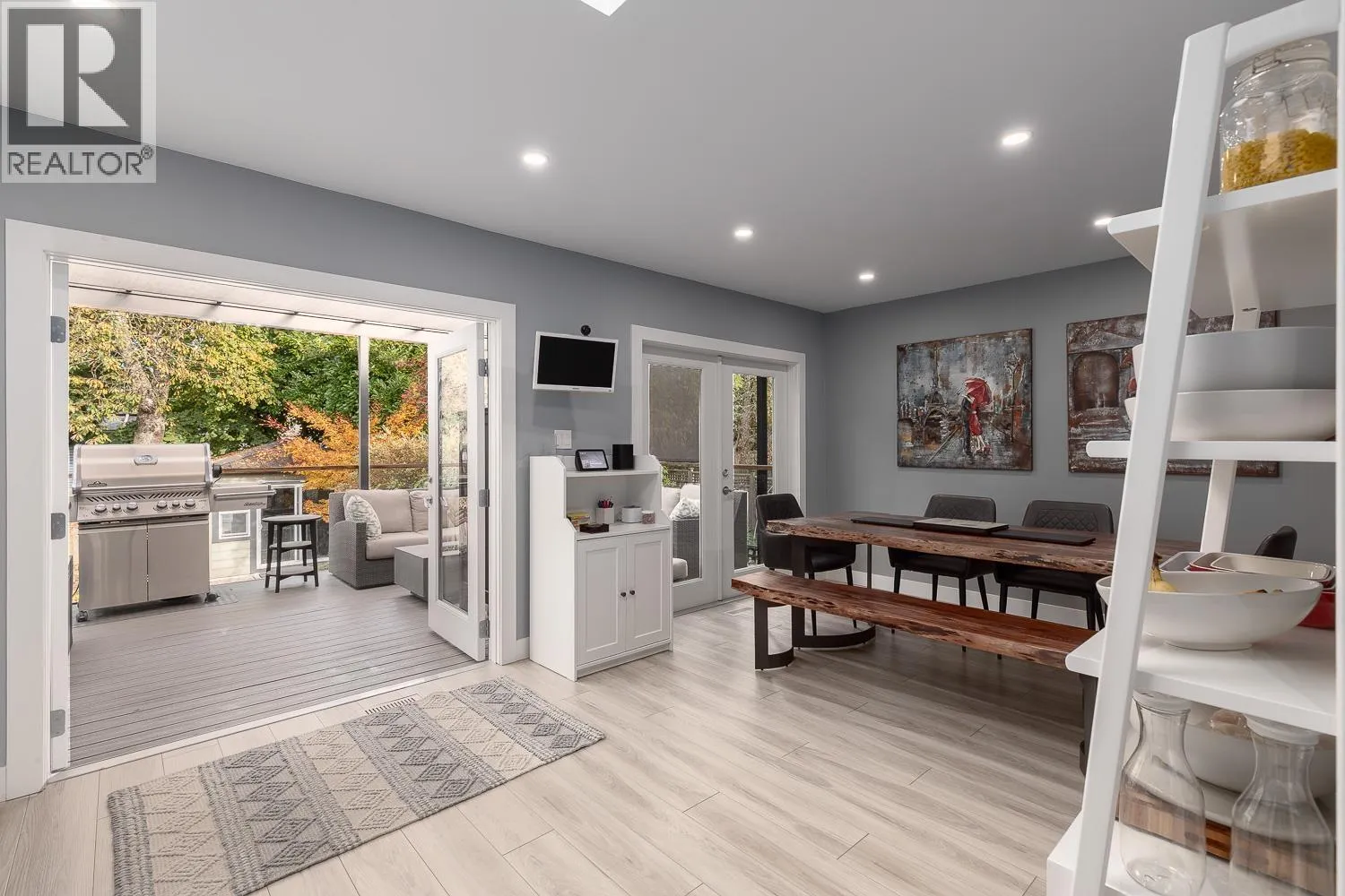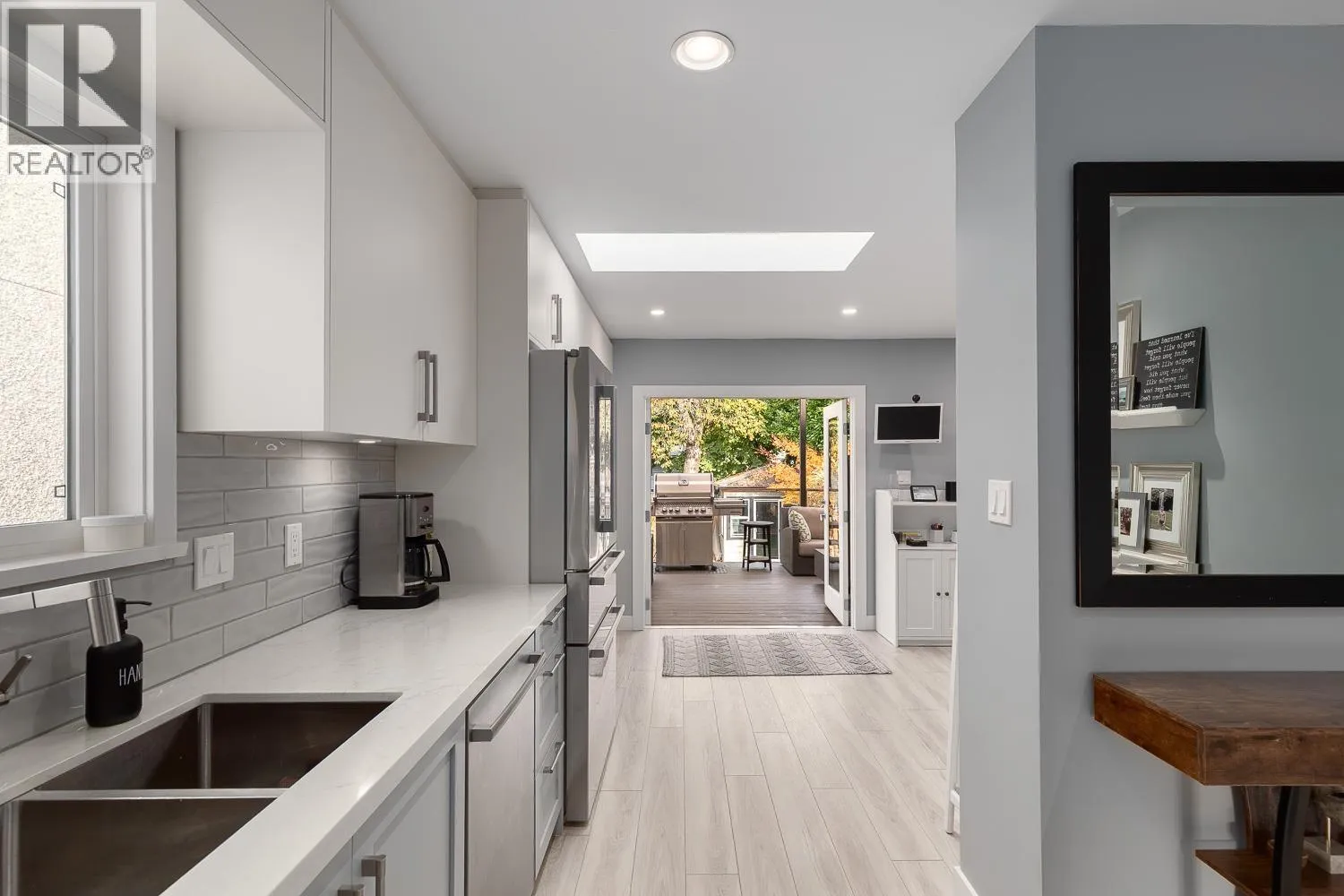 This beautifully renovated bungalow sits on one of East Vans most sought-after streets on an extra-deep 132 sqft lot. Reimagined by Kerr Design and Construction in 2021, the upper level offers a Sunny, South-facing living room with a gas fireplace, primary bedroom, walk-in closet, and a stunning Chef's kitchen with double French doors that lead out to a covered, heated back deck with gas hookups. The lower level has two spacious bedrooms, a full bath, a family room, and a generous storage/ mudroom. This home is completely updated with AC throughout, a newer (2018) metal roof, newer windows, and more! There's also a fully finished, detached studio/ gym out back and a beautifully landscaped yard. (id:27476)