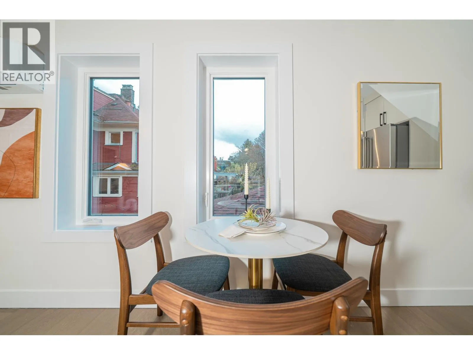 Tucked away at the back of a boutique 3 unit character retention project on sought after 1922 William Street, this brand new 2 level standalone coach home is a rare find. Thoughtfully designed with 3 bedrooms, 2 bathrooms & a heated attached garage offering future flexibility. Features include engineered Oak flooring, radiant in-floor heating throughout and air conditioning for year-round comfort. The stylish kitchen is outfitted with Wolf/KitchenAid appliances, including a gas range, while the main floor opens to a spacious private patio . Upstairs the primary retreat boasts a spa-like ensuite. A unique opportunity in the heart of Commercial Drive, steps to vibrant cafés, parks, and shops.Open House Sun 2Pm to 4 PM (id:27476)