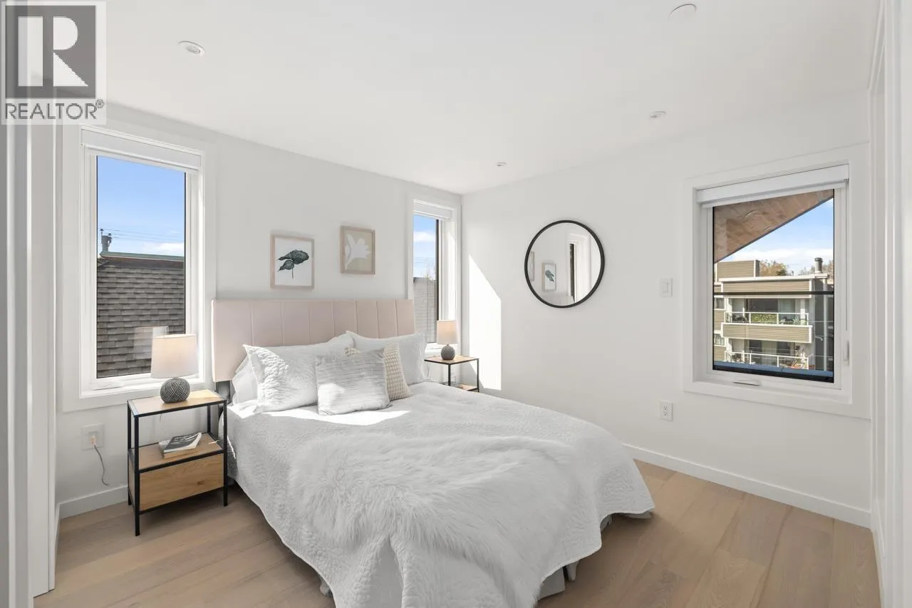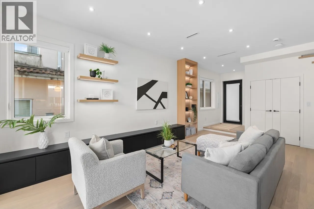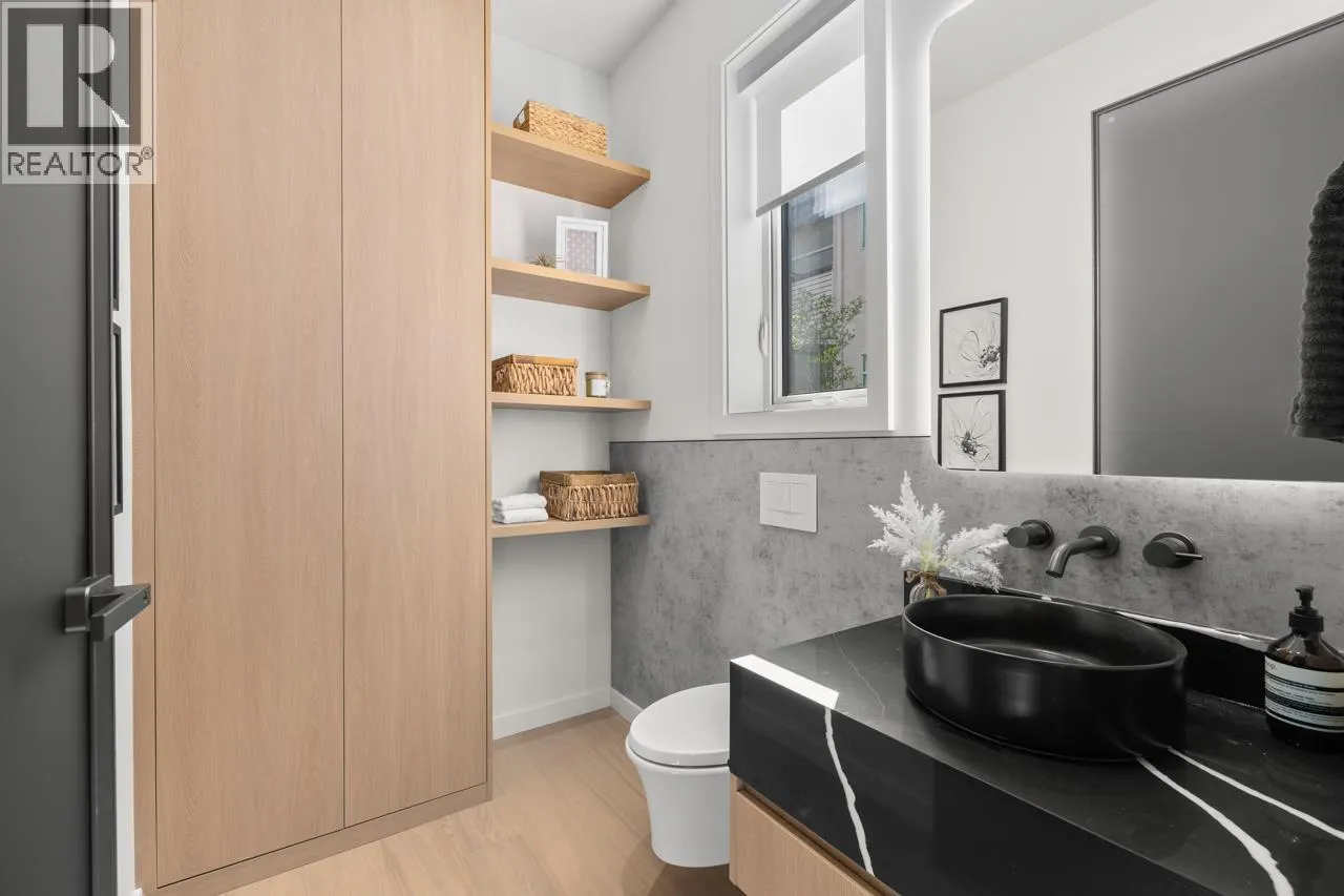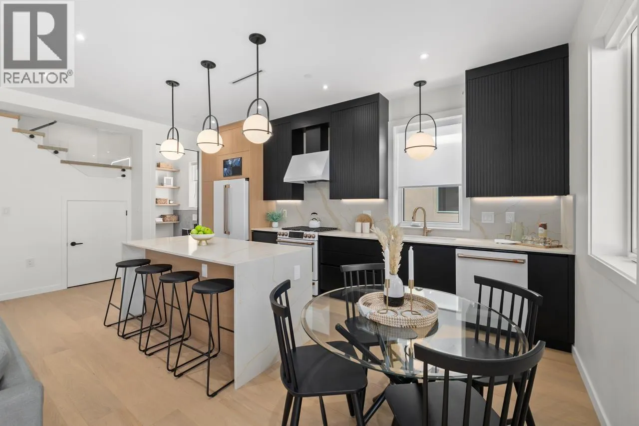 Discover refined living in this stunning 1/2 duplex by Mahnger Homes in the heart of Douglas Park! Elegant design meets luxury with warm tones, oversized windows, and brushed White Oak floors throughout. The large gourmet kitchen boasts sleek flat-panel cabinetry, quartz counters/backsplash, and premium matte white appliances. Upstairs, find the spacious primary bedroom with walk-in closet and balcony. The versatile third level offers a bedroom, guest room, or expansive family room opening to a covered deck-perfect for entertaining. Stay comfortable year-round with a heat pump for heating and cooling. Covered parking and 3 storage lockers add convenience. Steps from parks, cafes, top schools, and transit-this is urban living at its finest! Open House Jan10th/11th Sat/Sun 2-4pm (id:27476)