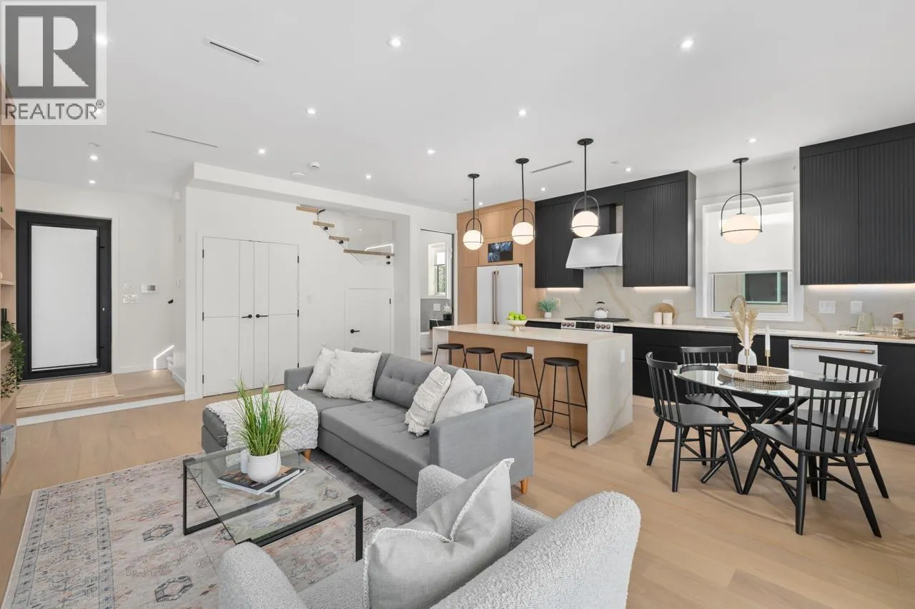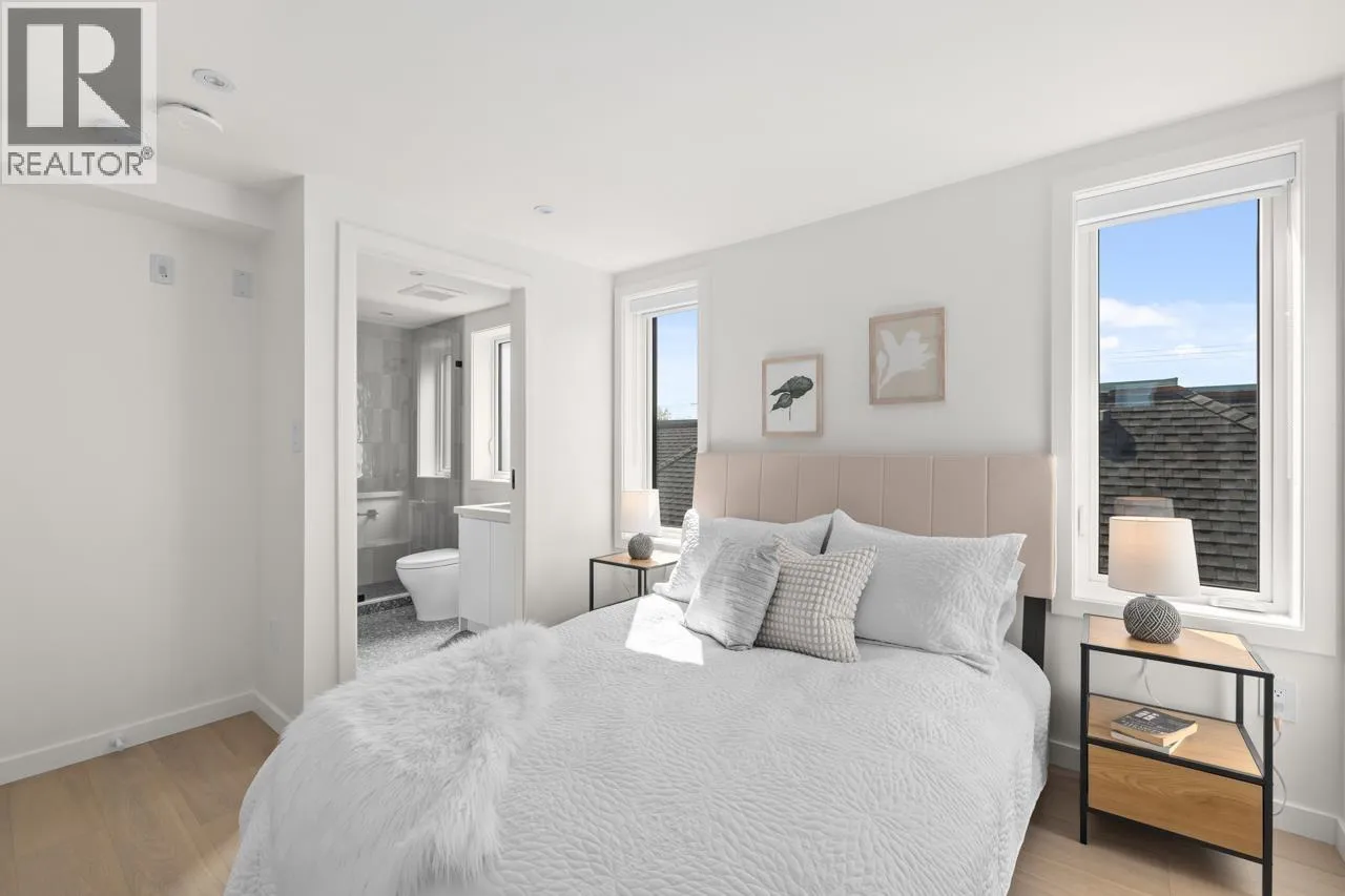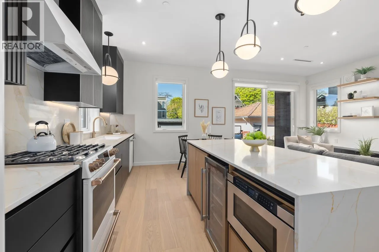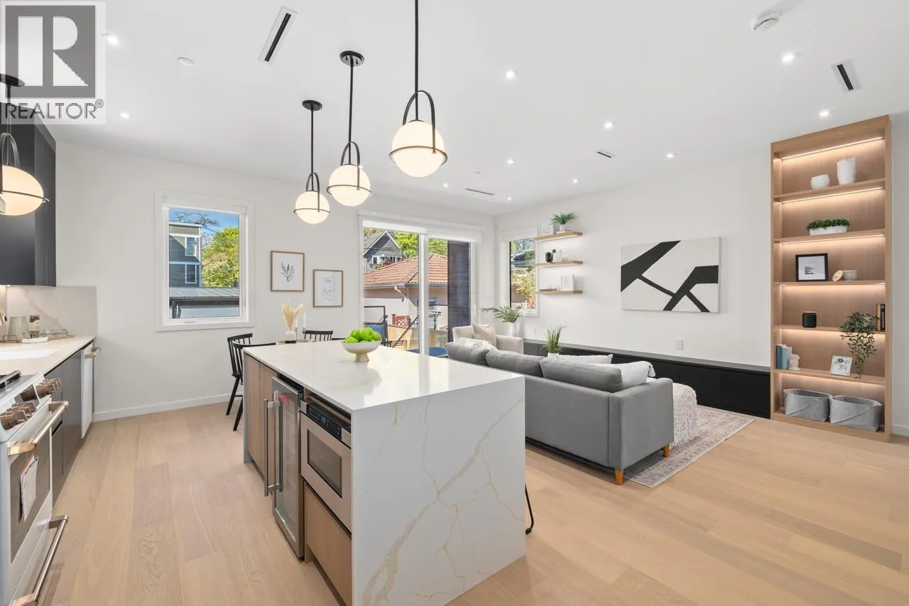 Discover refined living in this stunning 1/2 duplex by Mahnger Homes in the heart of Douglas Park! Elegant design meets luxury with warm tones, oversized windows, and brushed White Oak floors throughout. The large gourmet kitchen boasts sleek flat-panel cabinetry, quartz counters/backsplash, and premium matte white appliances. Upstairs, find the spacious primary bedroom with walk-in closet and balcony. The versatile third level offers a bedroom, guest room, or expansive family room opening to a covered deck-perfect for entertaining. Stay comfortable year-round with a heat pump for heating and cooling. Covered parking and 3 storage lockers add convenience. Steps from parks, cafes, top schools, and transit-this is urban living at its finest! Open House Jan10th/11th Sat/Sun 2-4pm (id:27476)