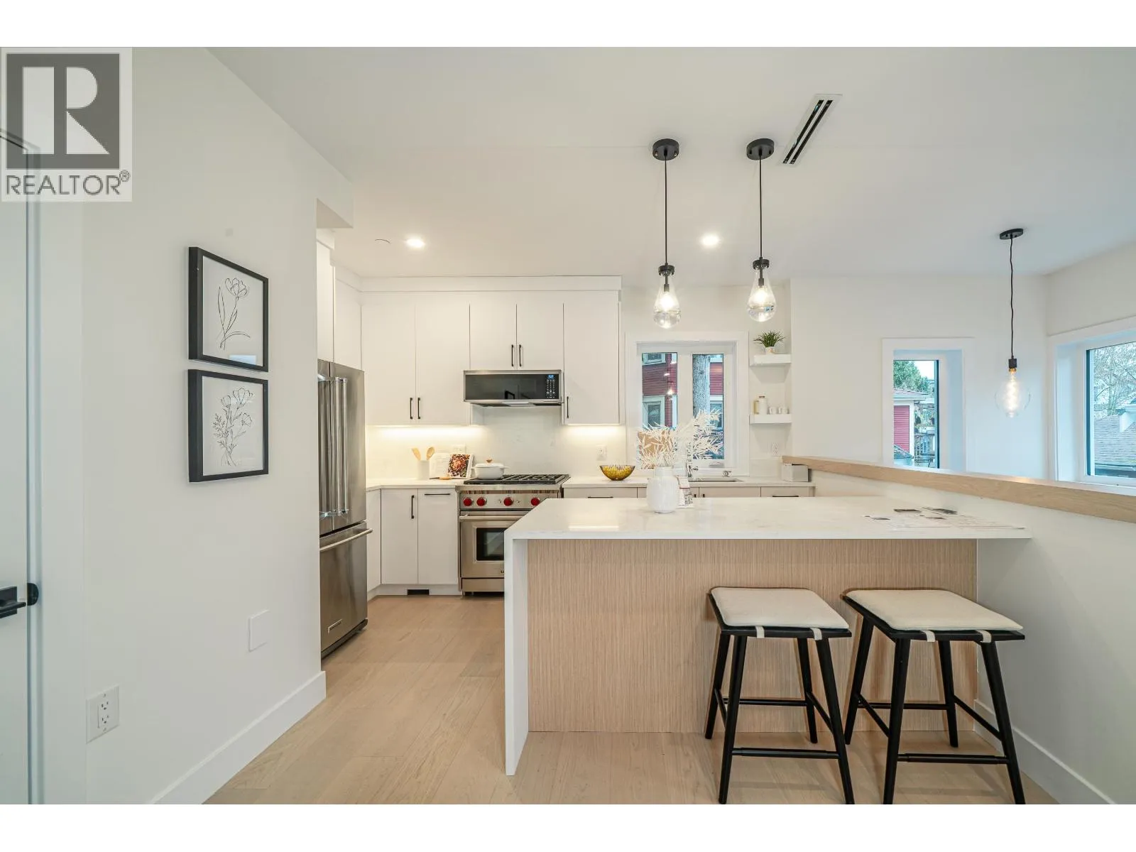 This spacious brand new back half duplex Ready to move in, a team recognized for quality & attention to detail. Designed with your family in mind, this modern home has a great floorplan & inspire interiors. The main offers a professional grade kitchen with skinny shaker cabinets Wolf/ KitchenAid appliance package feat 30" stand up fridge/ freezer & 4 burner Wolf gas range.Thoughtfully designed with 4 bedrooms 3 bedrooms up has 2 bedrooms 1 bathrooms inc primary ensuite with seamless shower. Down has the 2 bedroom. full bath & laundry - perfect for teens/ guests/ home office. Out back is a deck for your bbq and fenced yard. 10' ceilings, radiant in-floor heat, hardwood throughout, A/C, garage & crawl space. This beauty is move-in ready and sure too impress. Come see! Open House Sun 2Pm to 4 PM (id:27476)