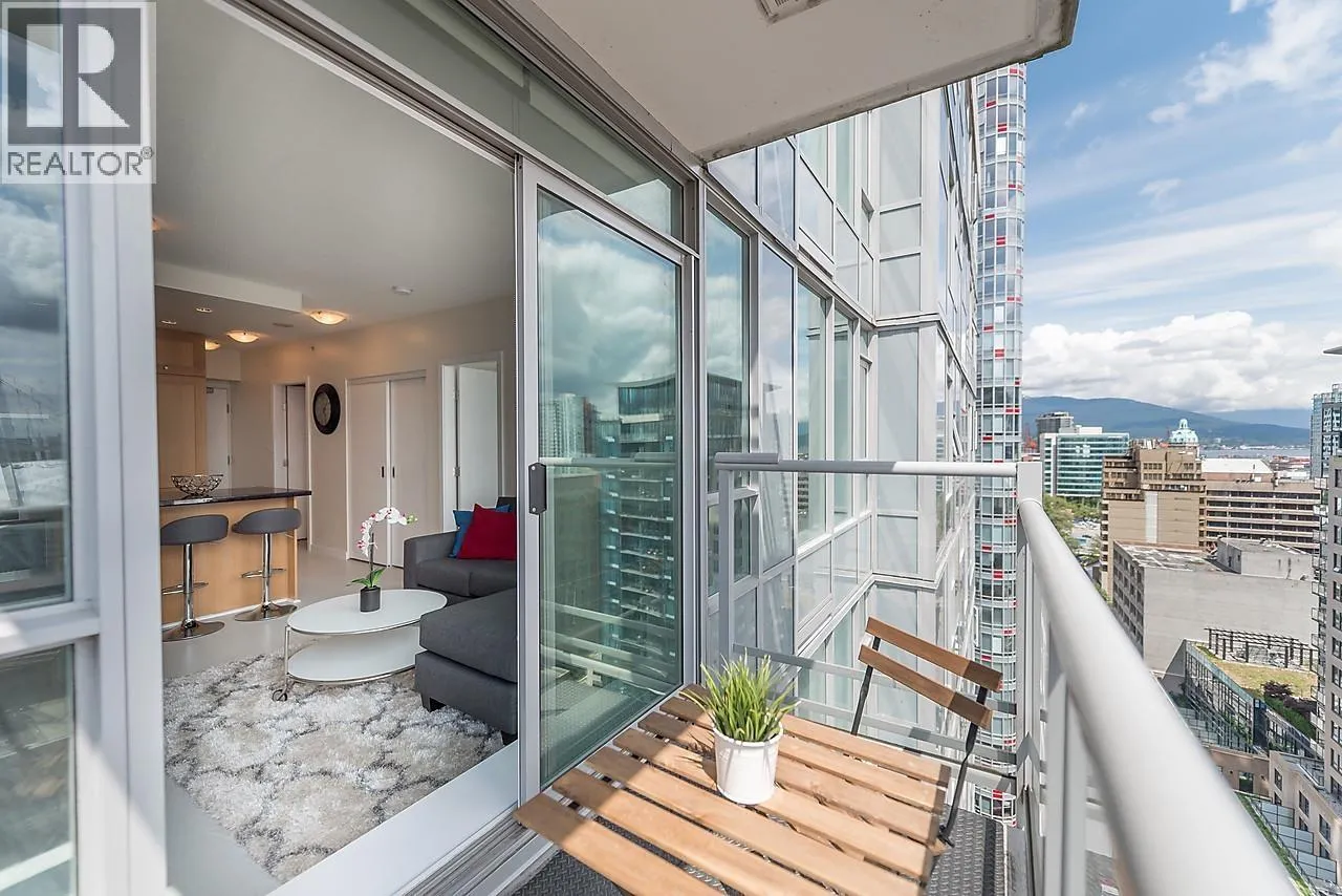 Welcome to Raffles on Robson! Bright 1-bedroom/1 bathroom, in a beautifully maintained landmark 2008 concrete tower at Robson & Cambie. The well laid out suite features a great "no wasted space" layout and a south facing balcony with peekaboo views of False Creek. The quality interior finishes feature laminate flooring, shaker-style cabinetry, stone counters, Miele and Liebherr appliances, newer washer and dryer and lots more. Concierge + amenities: full-fitness centre, hot tub, media room, BBQ deck, bike storage, yoga/play areas. Walk Score 99 and SkyTrain minutes away. Steps to BC Place, Rogers Arena, the Seawall, Robson Street and the iconic Vancouver Public Library. Restaurants, cafés, and shops, some of the very best Vancouver has to offer, all right outside your front door. (id:27476)