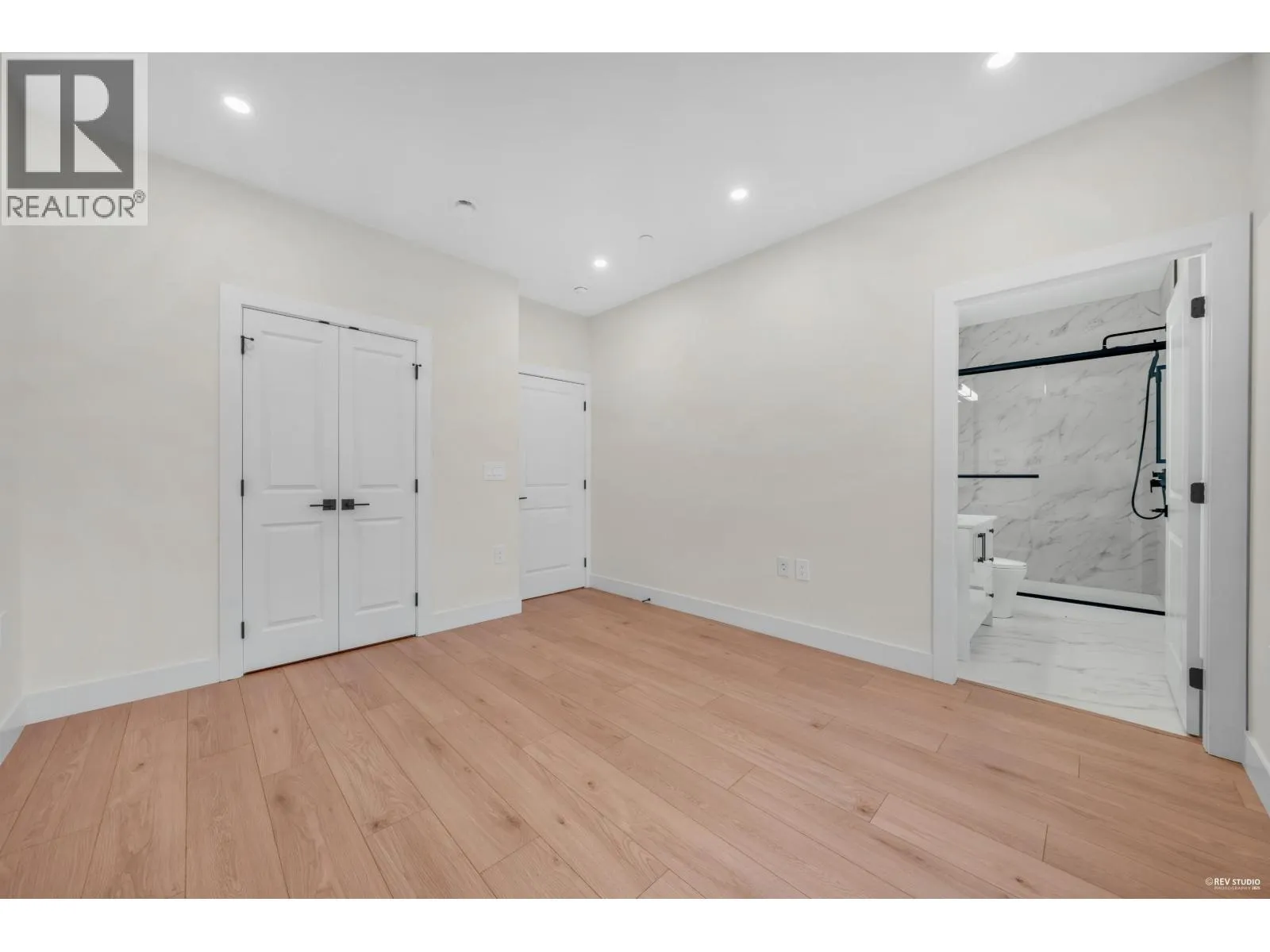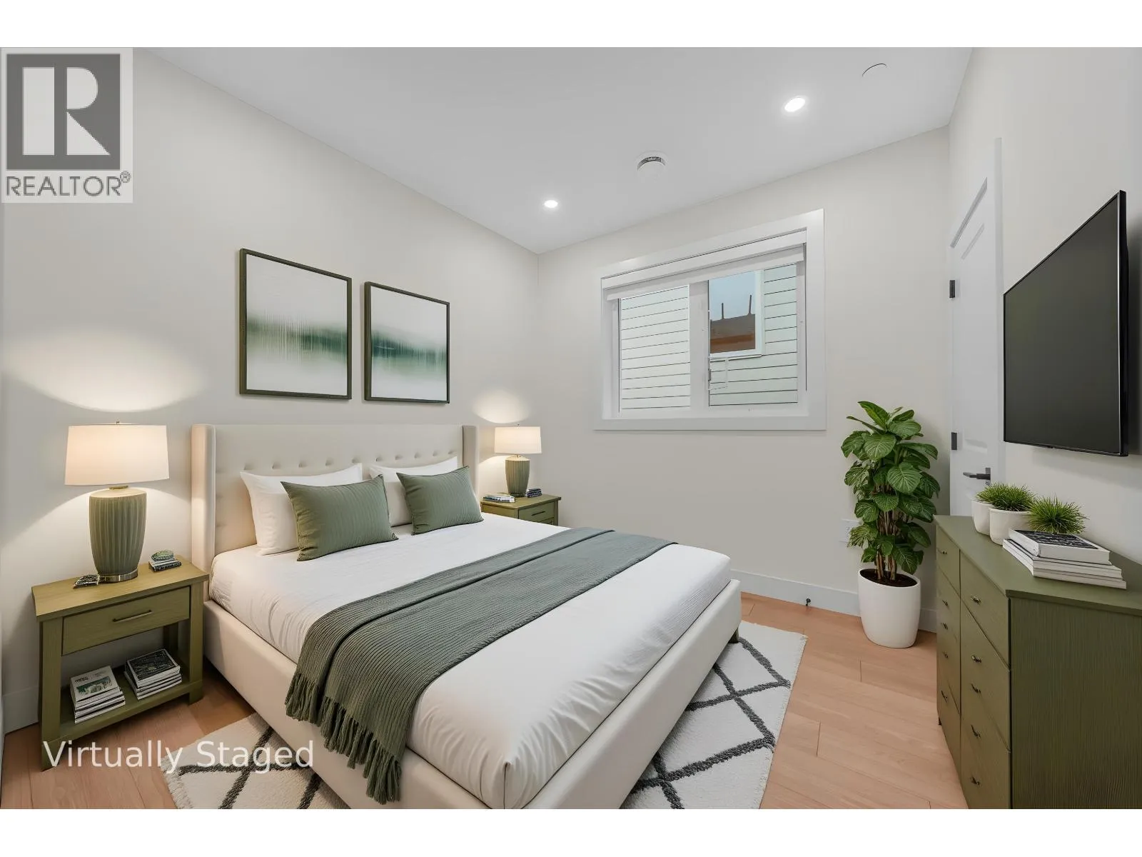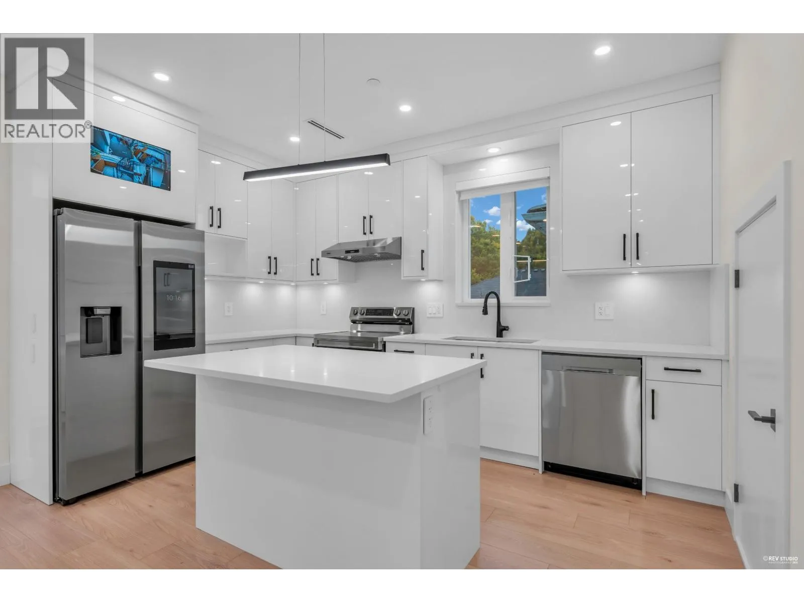 NO STRATA FEE! Modern back-unit home on the quiet side of this brand-new triplex in Joyce-Collingwood. This 2-storey home features 3 spacious bedrooms and 3 full baths, with views on the upper level and lots of natural light throughout. Enjoy a stylish living room with custom TV cabinet, sleek kitchen with S/S appliances and large island, plus A/C, HRV, heat pump, security system, EV-ready parking, and a private fenced backyard. Includes ensuite laundry, ample storage, and 2/5/10 new home warranty. Convenient location near schools, parks, and SkyTrain stations. Built by a reputable builder. Easy to show. Open House Sat. Feb. 7th 1-3pm. (id:27476)