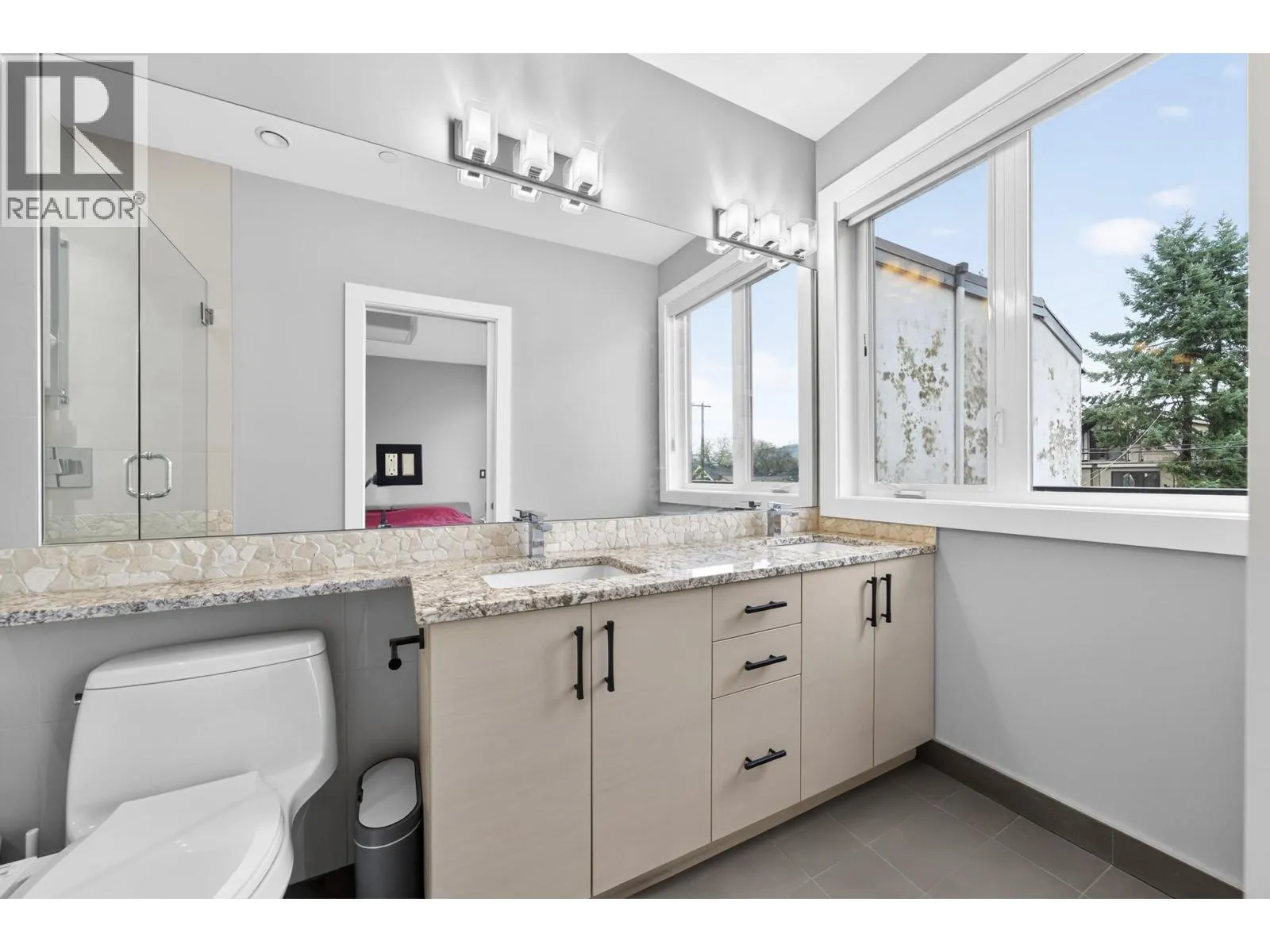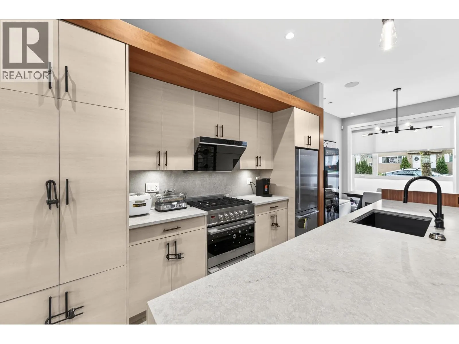Modern luxury meets thoughtful design in this beautifully crafted, energy-efficient home with south-facing exposure. Featuring soaring ceilings, custom maple & cherry wood millwork, Italian tile accents & a striking 50" linear electric fireplace, the bright open main floor is both elegant & inviting. Gourmet granite kitchen with high-end appliances, custom cabinetry & oversized island. 3 spacious bedrooms & 2 baths upstairs. Enhanced comfort with radiant in-floor heating, A/C, HRV, water filtration system & built-in stair lighting. Legal 1 bedroom suite with high quality finishes. Enjoy seamless indoor-outdoor living with multiple balconies and a private, low-maintenance outdoor space with BBQ area. Close to shopping, parks, and top schools. (id:27476)