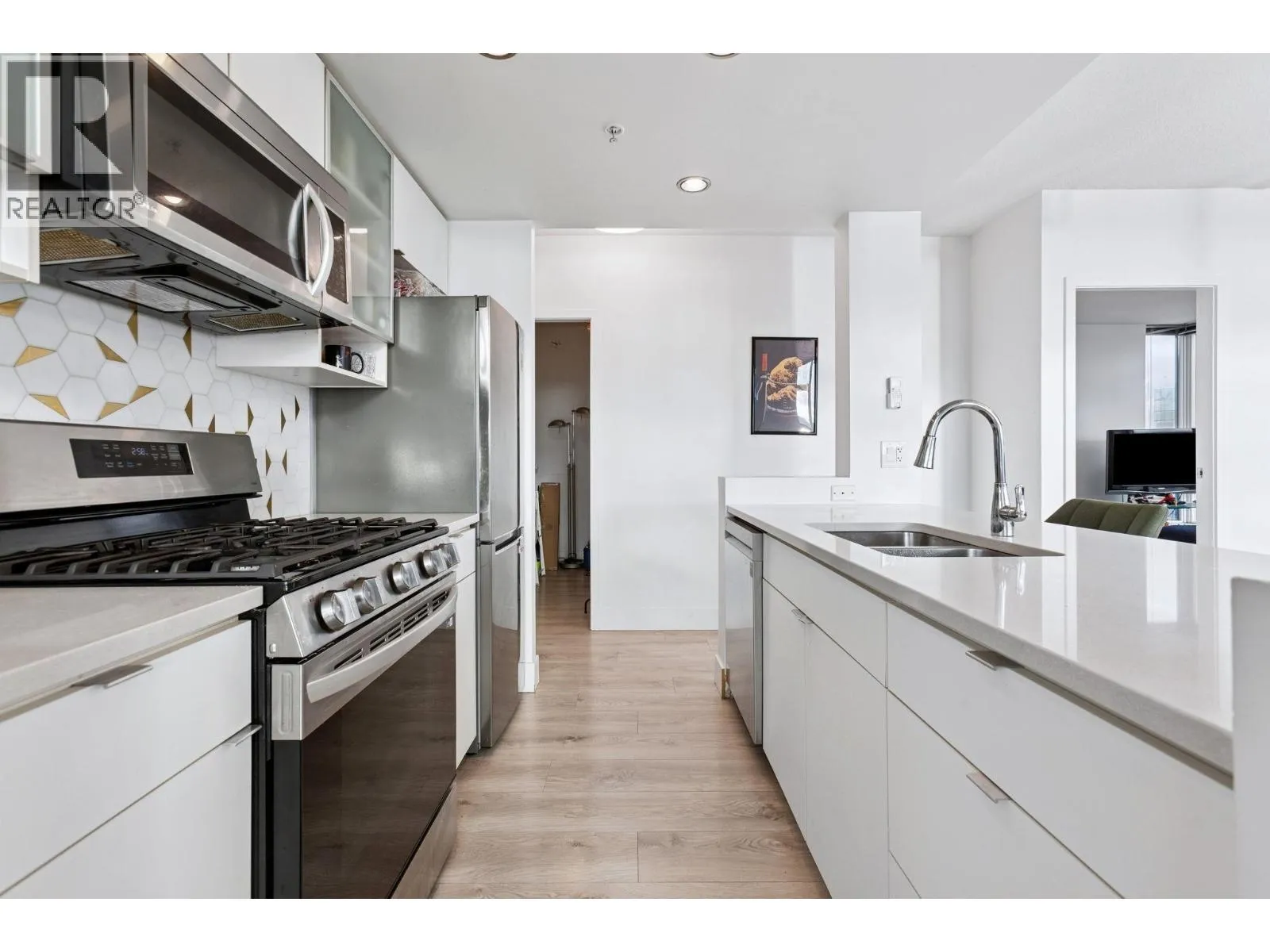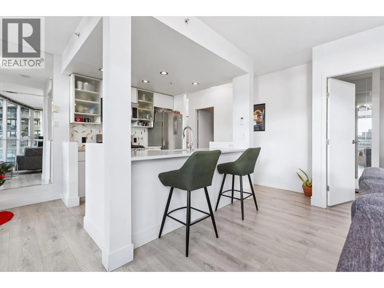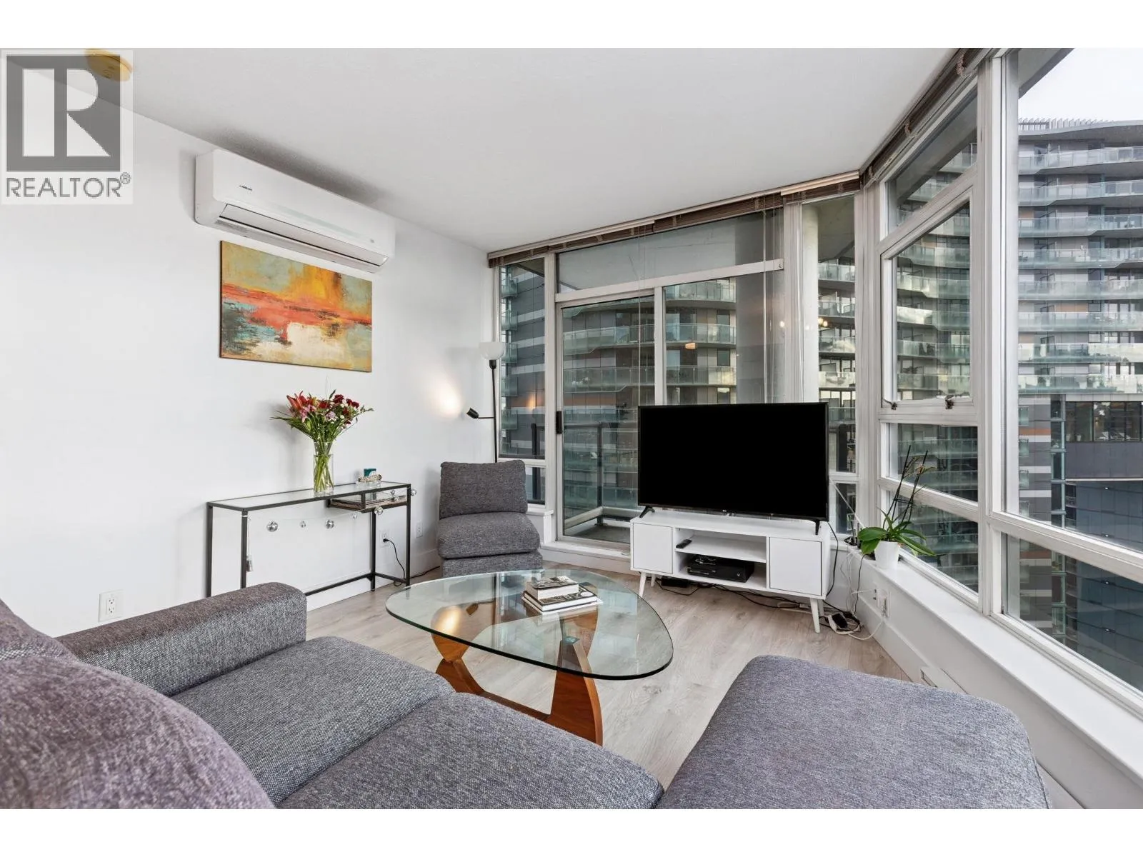 WELCOME TO THE MAX- Perched on the 26th level, this 2 bed + den corner suite has been thoughtfully updated, and welcomes you with streams of natural light + expansive views of False Creek from every room. This efficient floor plan has no wasted space: separated bedrooms for ultimate privacy, open concept kitchen/dining + breakfast bar, living and dining rooms w/floor to ceiling windows. Home features AC in living room, open concept kitchen with stainless steel appliances. Complete with 1 Parking & 1 Locker. Residents of the Max get exclusive access to Club Max: concierge, gym, indoor pool, sauna, hot tub, party room + more. 1 PARKING/ 1 LOCKER/ 3 ELEVATORS. Nestled next to the MARINASIDE SEAWALL, Small Victory, Urban Fare, 500+ restaurants. OPEN: Sat Feb 7, 11am-1pm. (id:27476)