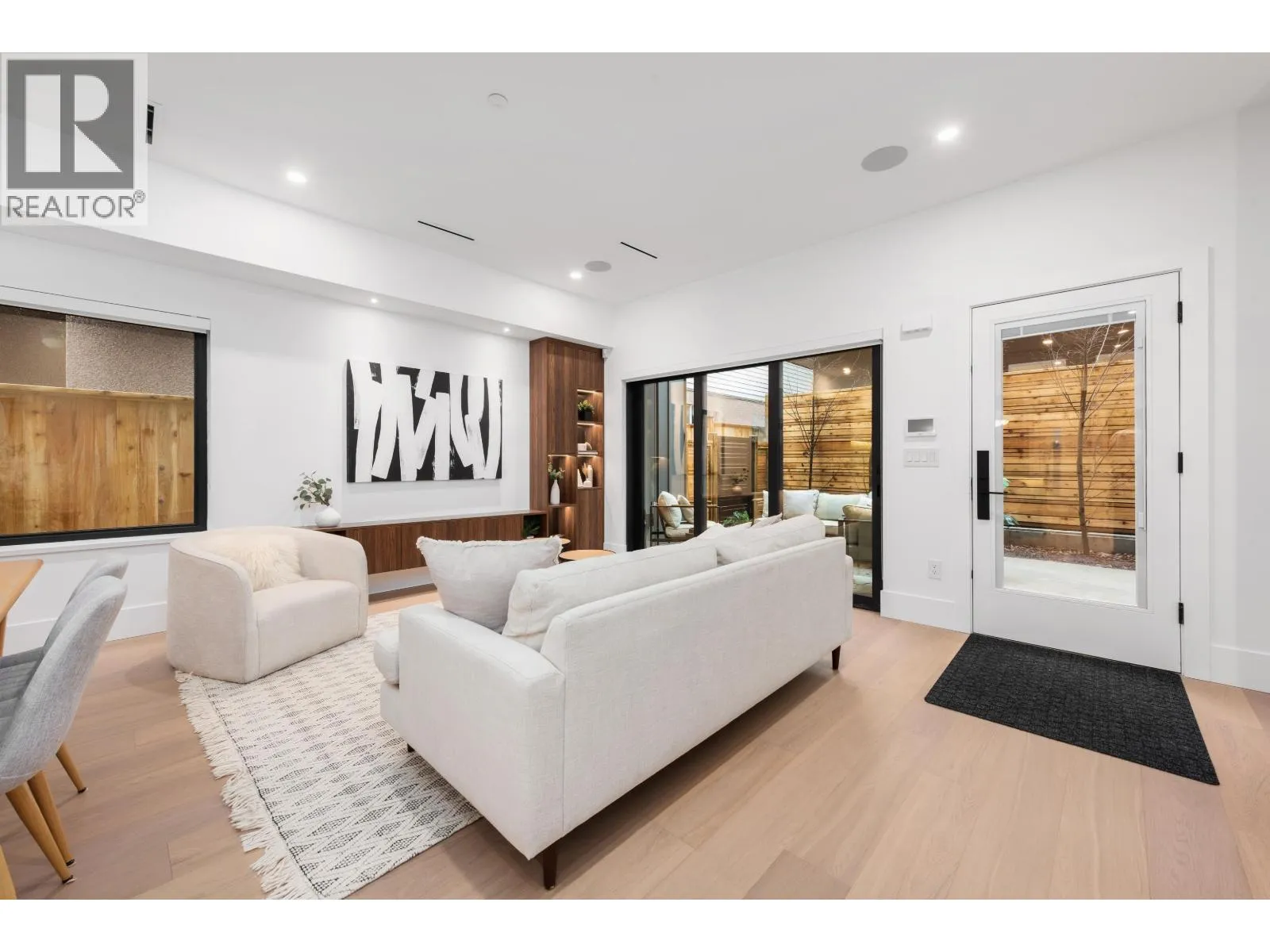 This modern Vandwell Developments side-by-side duplex in coveted Cambie Village offers 4 bedrooms and 4 baths across 1,724 sF on 2 well-planned levels. A rare main floor bedroom with walk-in shower and direct access to parking is ideal for guests, in-laws or a home office. Sunlit indoor-outdoor glass panel walls blur the line between inside and out, opening to a private patio perfect for morning coffee or evening entertaining. The open-concept kitchen, dining and living areas are anchored by extensive custom millwork, refined finishes and generous storage, creating a warm yet sophisticated backdrop for everyday living. Upstairs, a serene principal retreat awaits with an oversized north-facing deck, walk-in closet and spa-inspired ensuite featuring a floating tub and walk-in shower. Interior seamless glass railings keep sightlines open and amplify natural light, while a heated crawl space provides incredible bonus storage. Simon Fraser Elementary and Eric Hamber Secondary, with top private schools nearby. (id:27476)