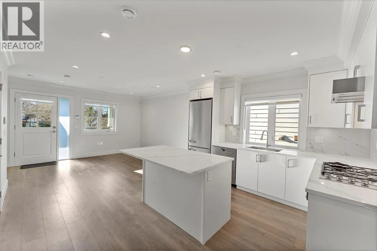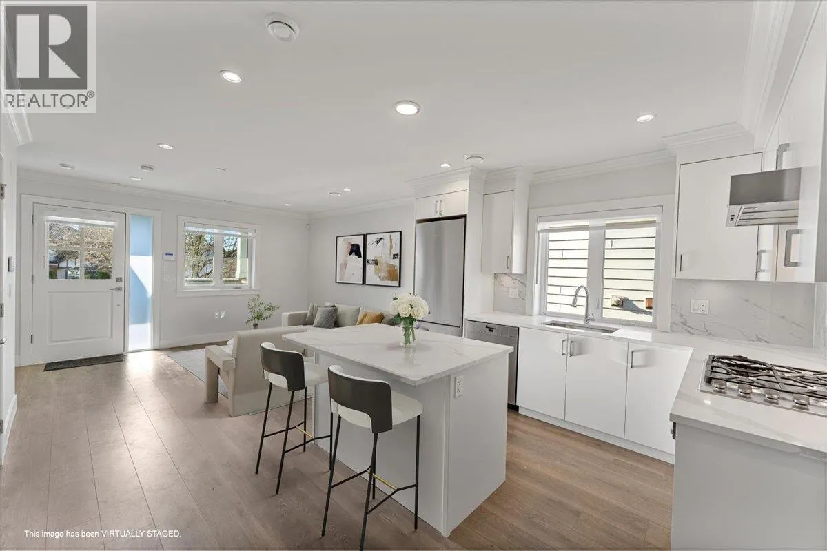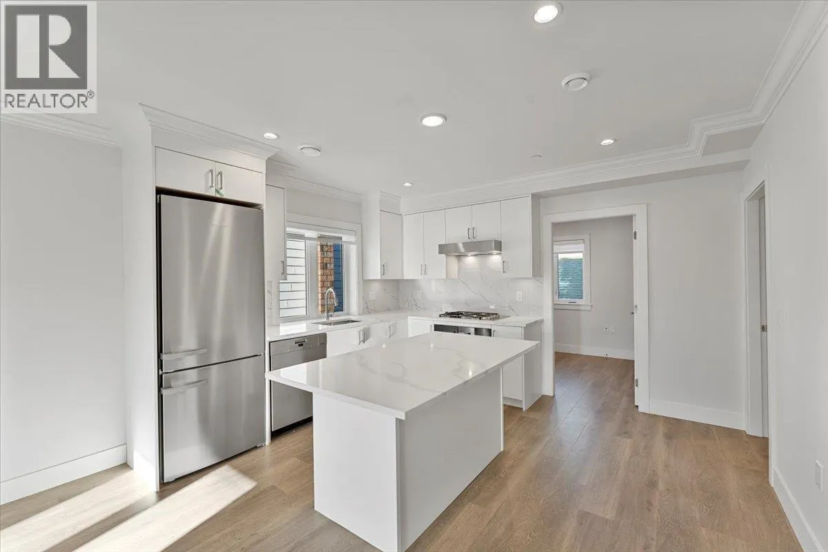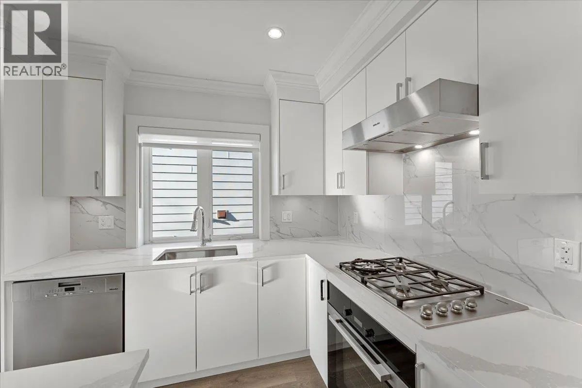 This beautiful brand new 3 bedroom, 2 bathroom unit is one of the four. Located in the amazing Kitsilano neighbourhood, tucked away in a quiet area but not too far away from all the amazing shops, eateries and of course, Kitsilano Beach! If you want to be settled in a quiet area but still be close enough to all the buzz, this is the perfect location to be in. Lovely private primary bedroom as it is located on the upper floor with its own walk-in closet, ensuite and balcony space. Other 2 bedrooms are located on the main floor with the kitchen and livingroom. The Kitchen is fully open concept with stunning white cabinets, quartz countertops, stainless steel appliances and gas cook top. (id:27476)