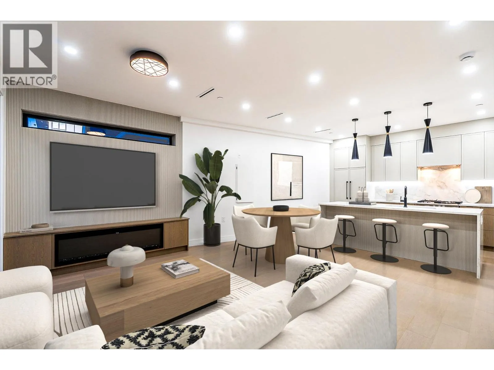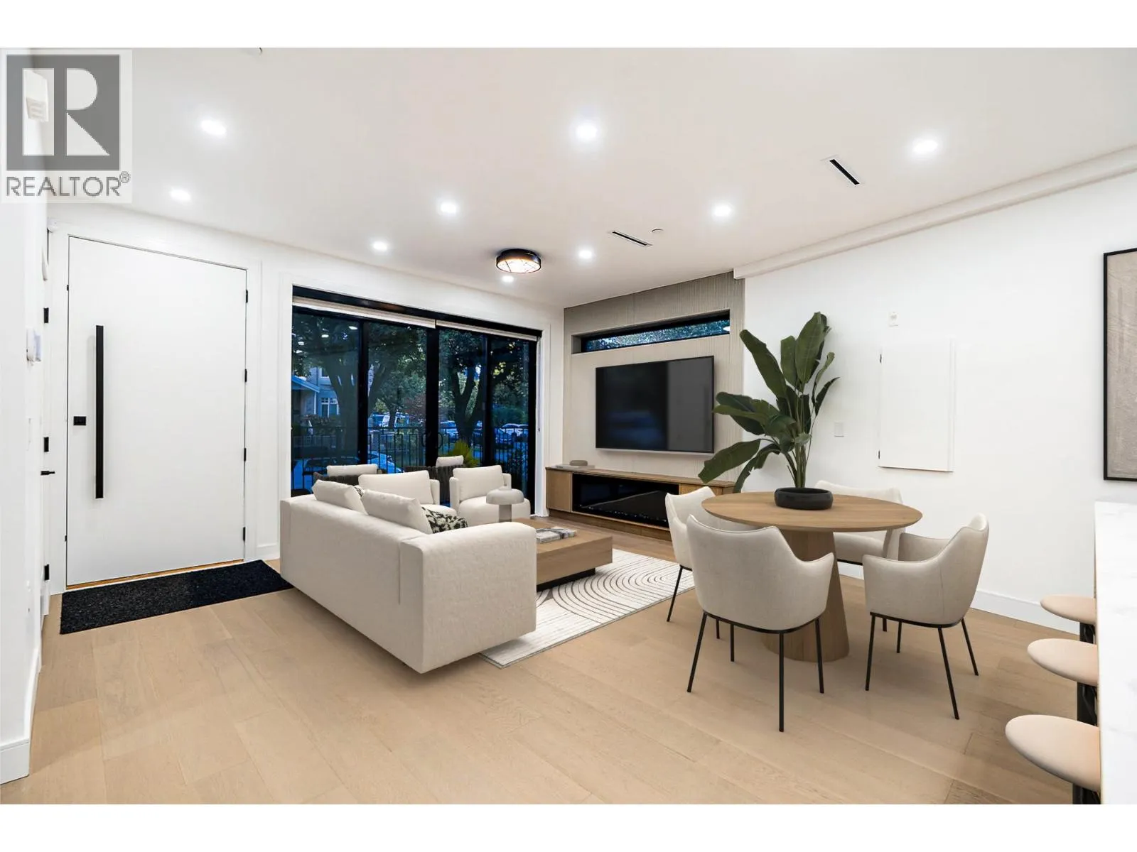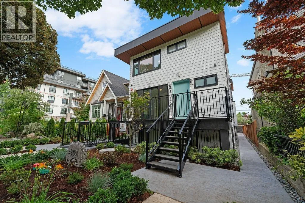 3-Level Home with 400sqft Rooftop Deck! Stunning 3 beds, 3 baths residence on iconic E. 8th Ave, just steps from Commercial Dr. Thoughtfully designed by Architrix with interiors by ETHEREAL DOMUS, this spacious home boasts engineered oak floors, custom fluted millwork, built-in closets, and a cozy fireplace. The gourmet kitchen impresses with Fisher & Paykel appliances, quartz counters, stone accents, and a waterfall island. Enjoy seamless indoor-outdoor living with oversized black sliding doors opening to a tiled balcony,and professional landscaping. Includes A/C with heat pump, EV-ready storage shed, walk-in pantry/den, and loads of natural light. Relax or entertain on the massive rooftop deck. Steps to SkyTrain, buses, Trout Lake, shops & dining. Includes 1 parking, bike room & storage (id:27476)
