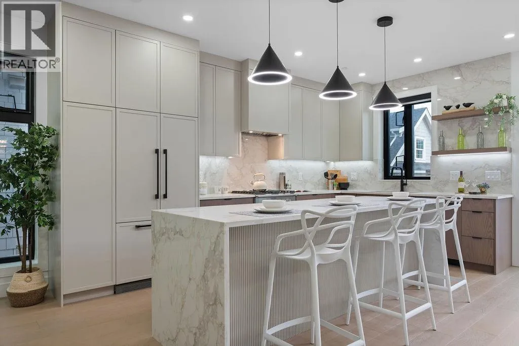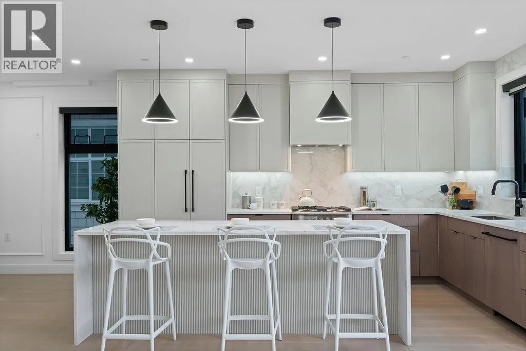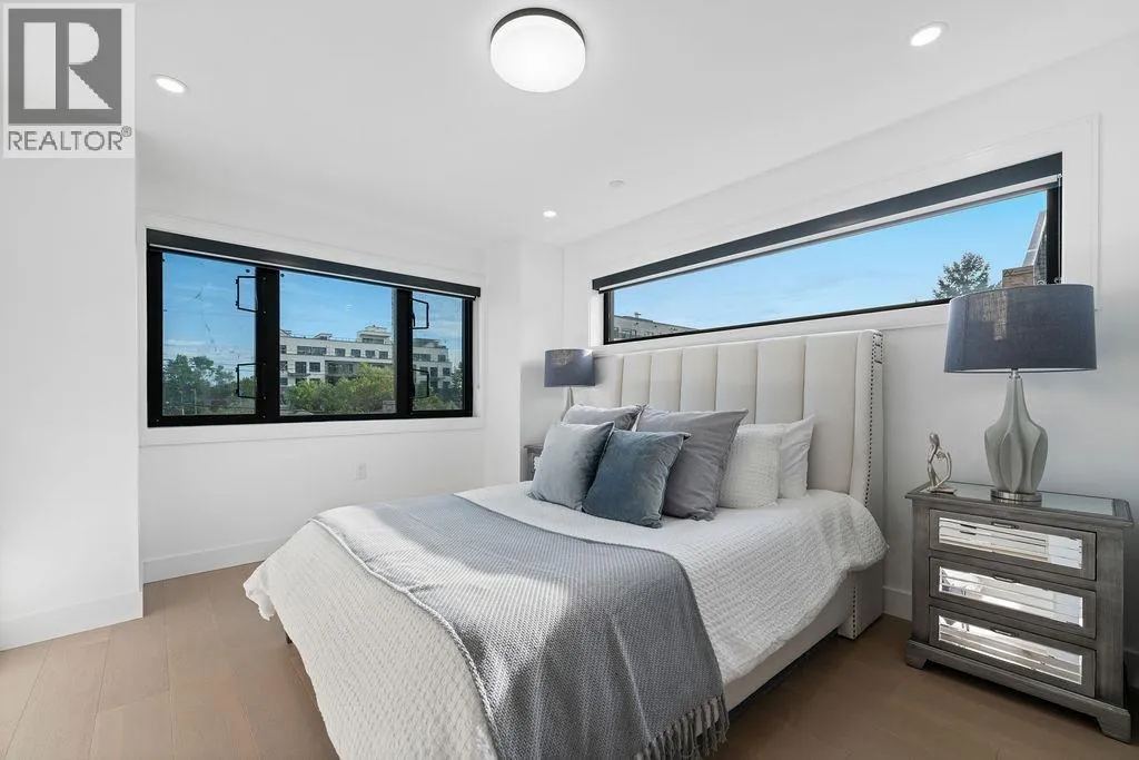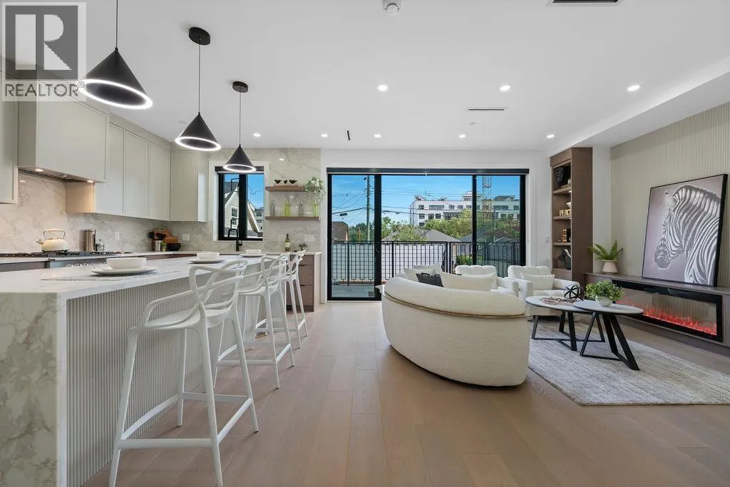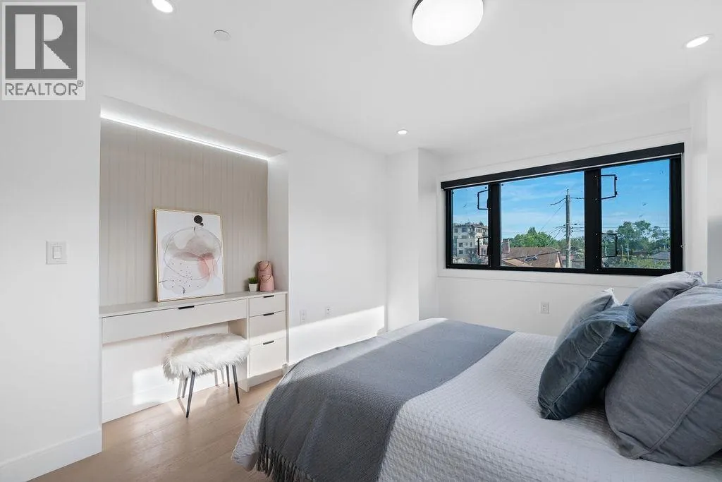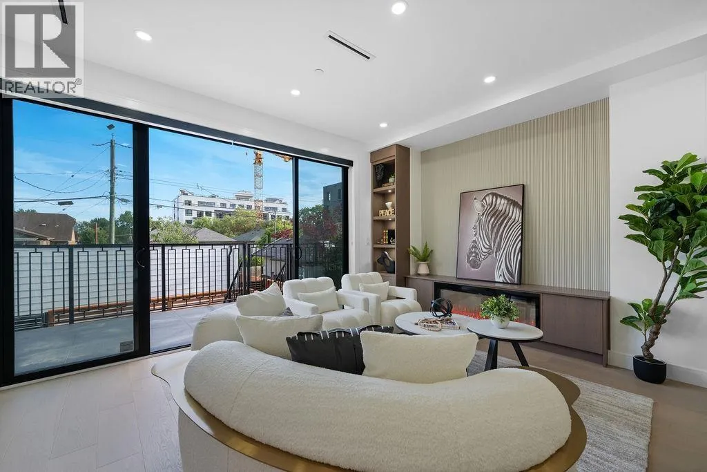 RARE 2-LEVEL BACK UNIT ! Stunning 3 beds, 3 baths south-facing home on iconic E. 8th Ave, steps from Commercial Dr. Designed by Architrix with interiors by ETHEREAL DOMUS, this spacious unit features engineered oak floors, custom fluted millwork, built-in closets, and a cozy fireplace. Gourmet kitchen with Fisher & Paykel appliances, quartz countertops, stone accents, waterfall island. Enjoy large black sliding doors, EV-ready storage shed, A/C heat pump, oversized tiled balcony, Paver stone patio, pro landscaping, and walk-in pantry/den. Near SkyTrain, bus routes, Trout Lake & shops. Loads of Natural Light.Includes 1 parking, bike room, storage (id:27476)
