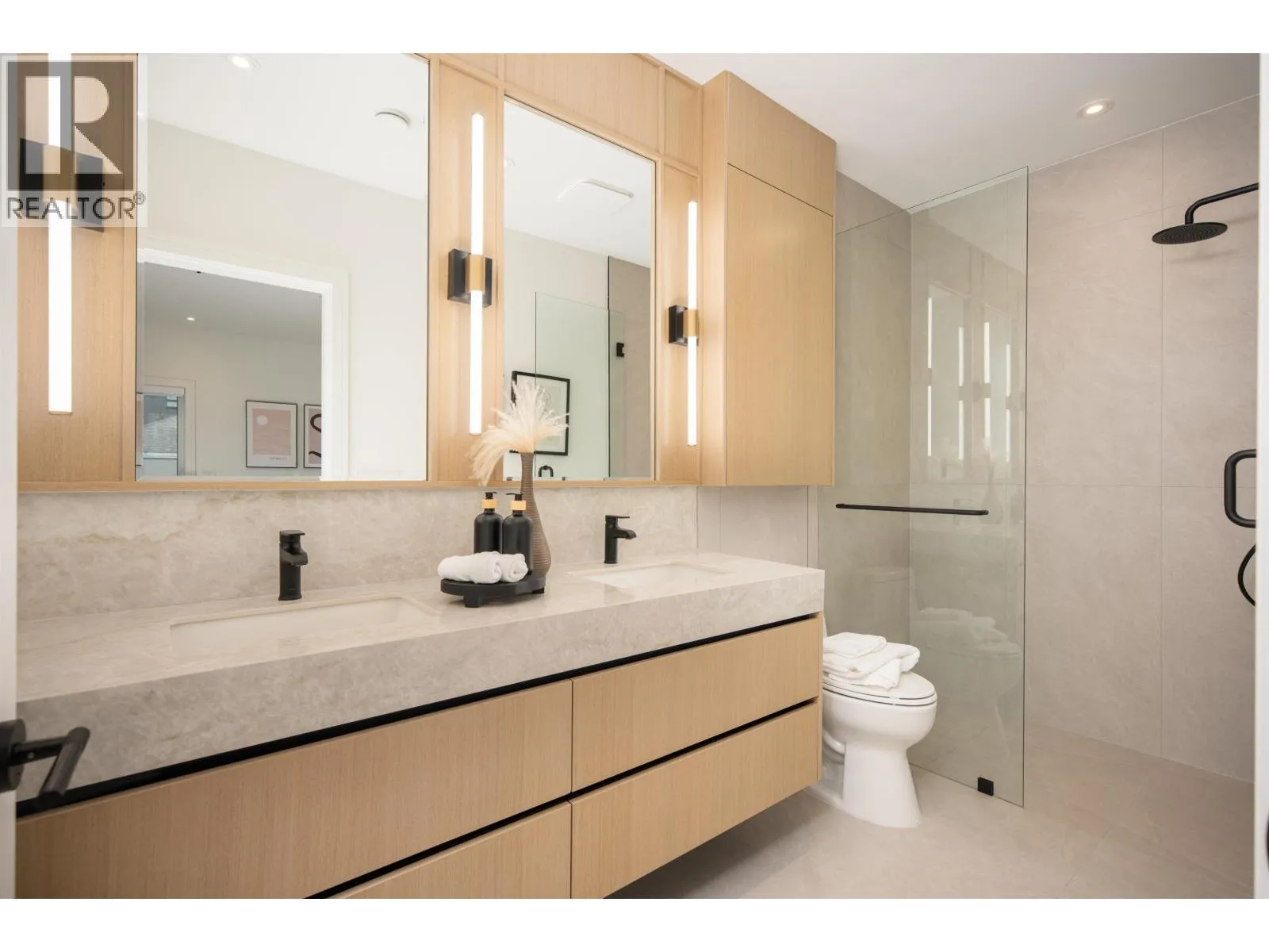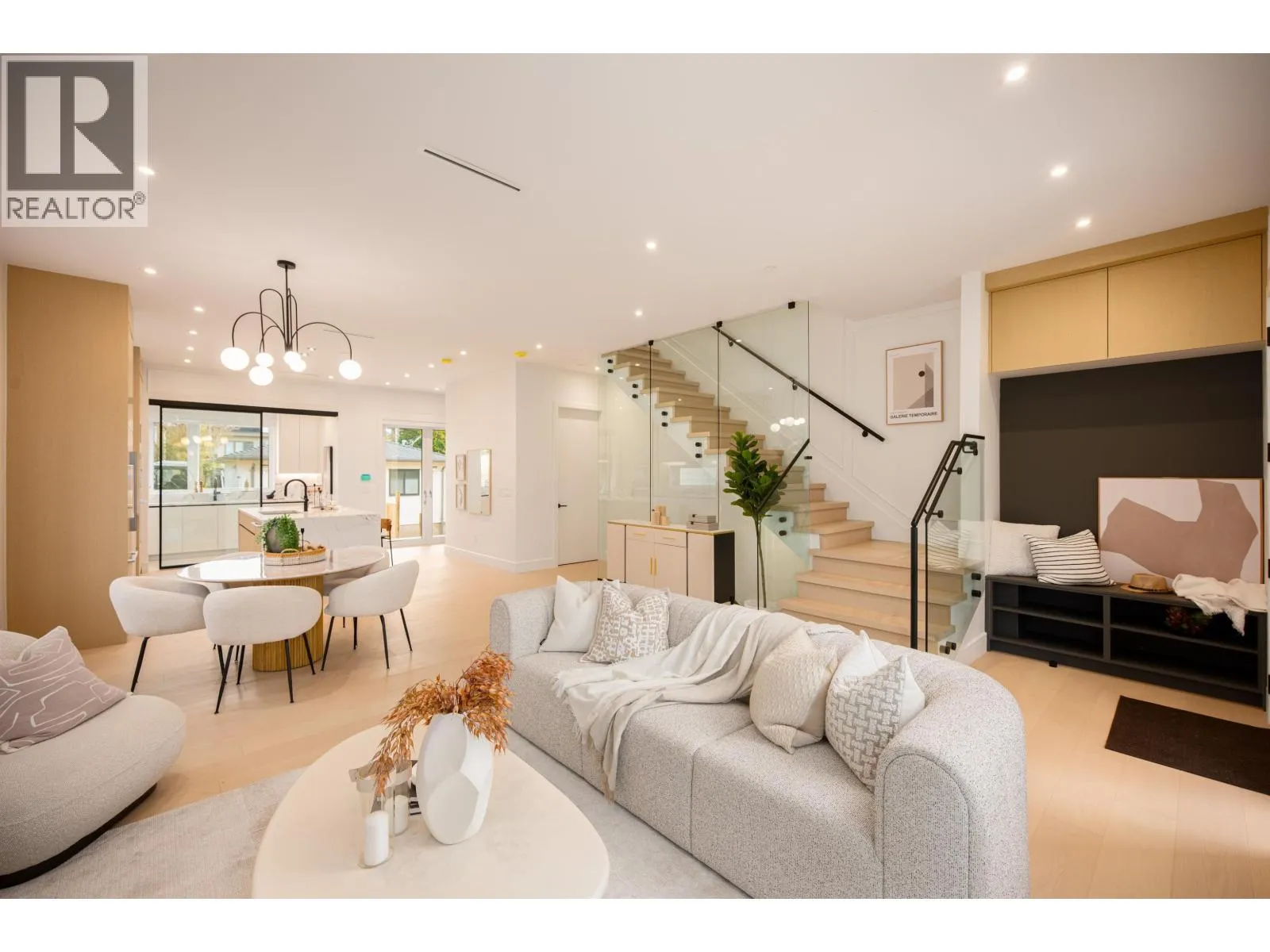 BRAND NEW EXQUISITE SIDE-BY-SIDE DUPLEX by acclaimed builder VANTAC, where exceptional craftsmanship meets refined family living. This stunning home showcases soaring ceilings, elegant transitional accents, and open-concept layout designed for modern lifestyles. The open kitchen impresses with a striking waterfall island, German-engineered Miele integrated appliances, and a fully equipped wok kitchen, perfect for hosting & entertaining. Triple-glazed windows deliver superior comfort and tranquility. The luxurious primary suite features a custom matte black glass closet, spa-inspired ensuite with double floating vanity. Upper level offers 3 beds 2 baths, plus a LEGAL basement suite providing flexibility as a mortgage helper, guest suite, or entertainment space. Single garage with EV charging. (id:27476)