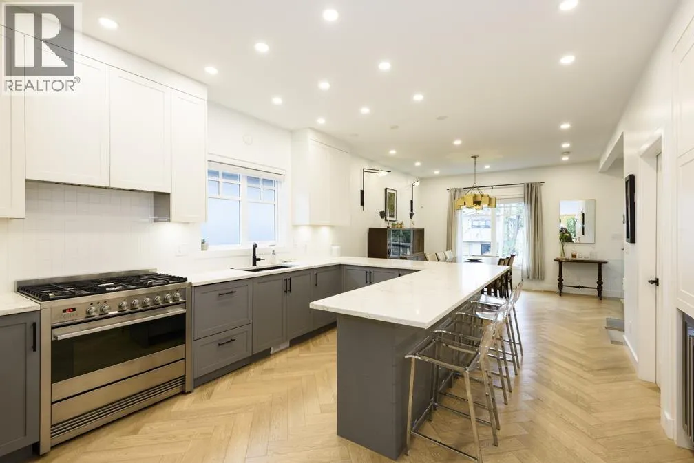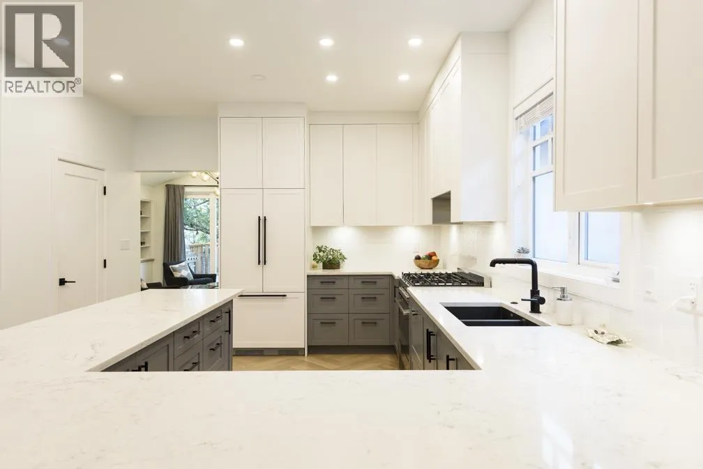 Rarely does a house surprise, such as this. Tucked discreetly west of Main, this home is truly a treat. Completely renovated in 2018, this family home was beautifully transformed keeping "eco-friendly" in mind. The main floor is gorgeous with help from Gillian Segal Designs, it offers a huge entertainer´s kitchen. A formal dining space joins the kitchen with a huge wrap-around peninsula with seating for ten. The back of the home offers a quiet get away with a lovely & large living room that connects to the outdoors. The floor is complete with a full bath, excellent laundry & storage. Upper floor offers 3 bedrooms & a stunning family bath. Peek a boo mountain views from living room, back deck, & upstairs bedroom. Lower level had been converted to allow for family space & separate suite. (id:27476)