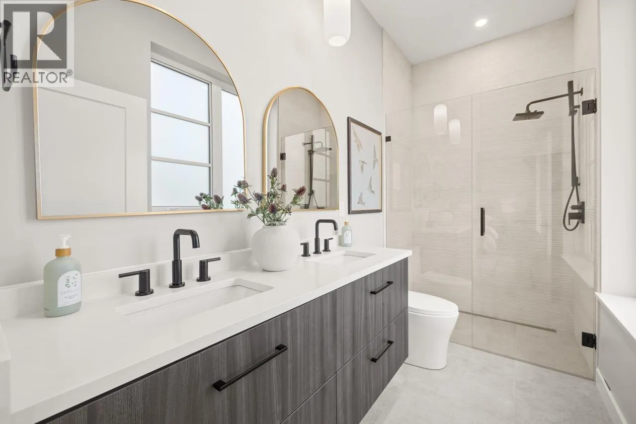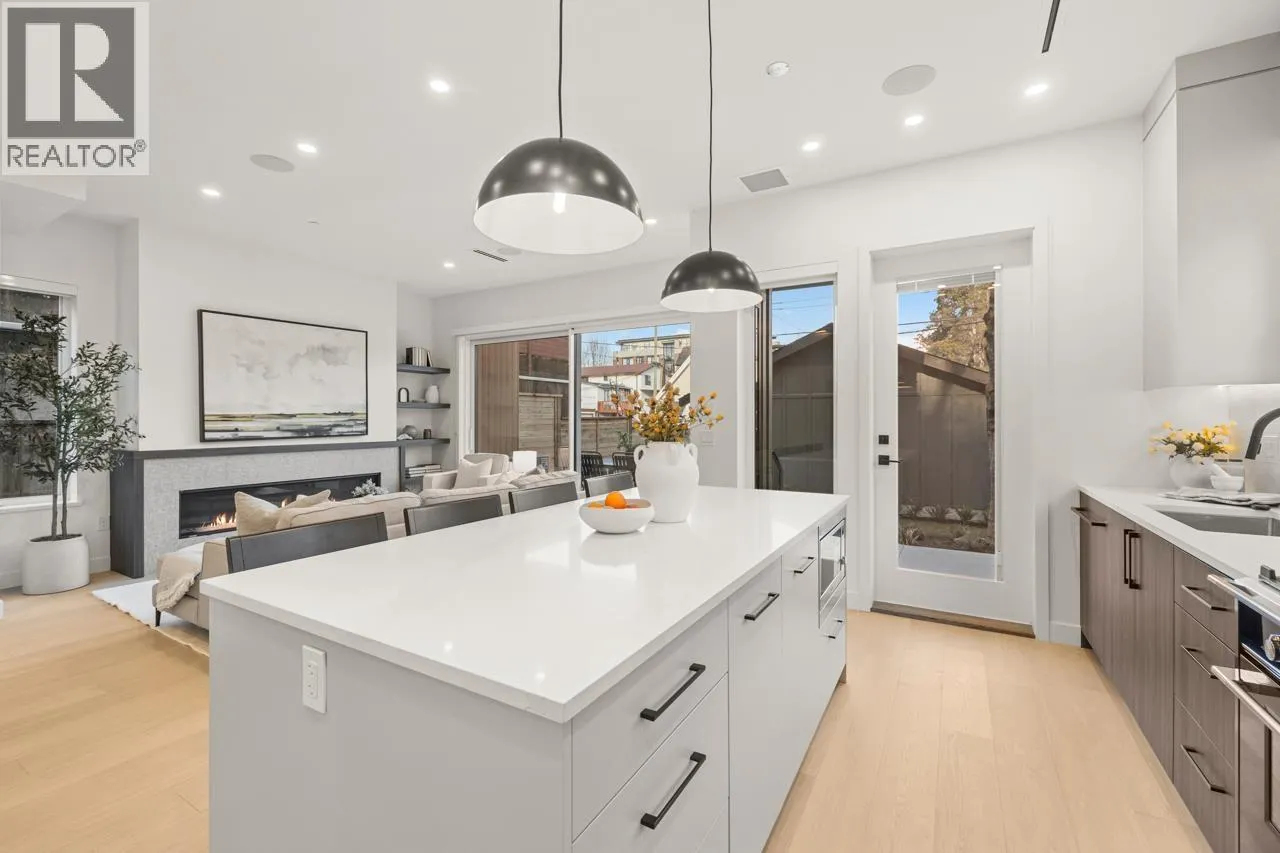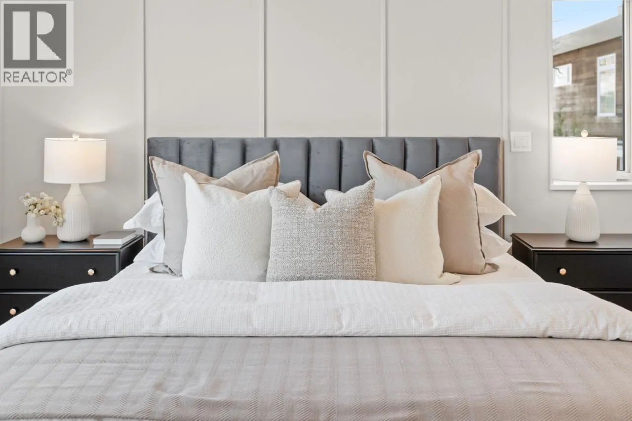 Asanti Homes presents this rare two-level 1,743 square ft half-duplex with 4 bedrooms + a 606 square ft fully finished accessible attic. Enter through the grand foyer into a spacious living & dining room featuring an oversized gas fireplace and direct access to a large private patio. The gourmet kitchen offers a large island perfect for entertaining and premium Fisher & Paykel appliances. Upstairs, four generous bedrooms accommodate large families or work-from-home needs. The primary bedroom includes a walk-in closet and private ensuite. Bonus: versatile 606 square ft finished attic ideal for storage, playroom, office, or whatever your imagination desires. Expansive 33 x 146 ft lot with big back yards, detached garage with EV charging capability, in a great neighbourhood. Open House Sat/Sun 2-4pm (id:27476)