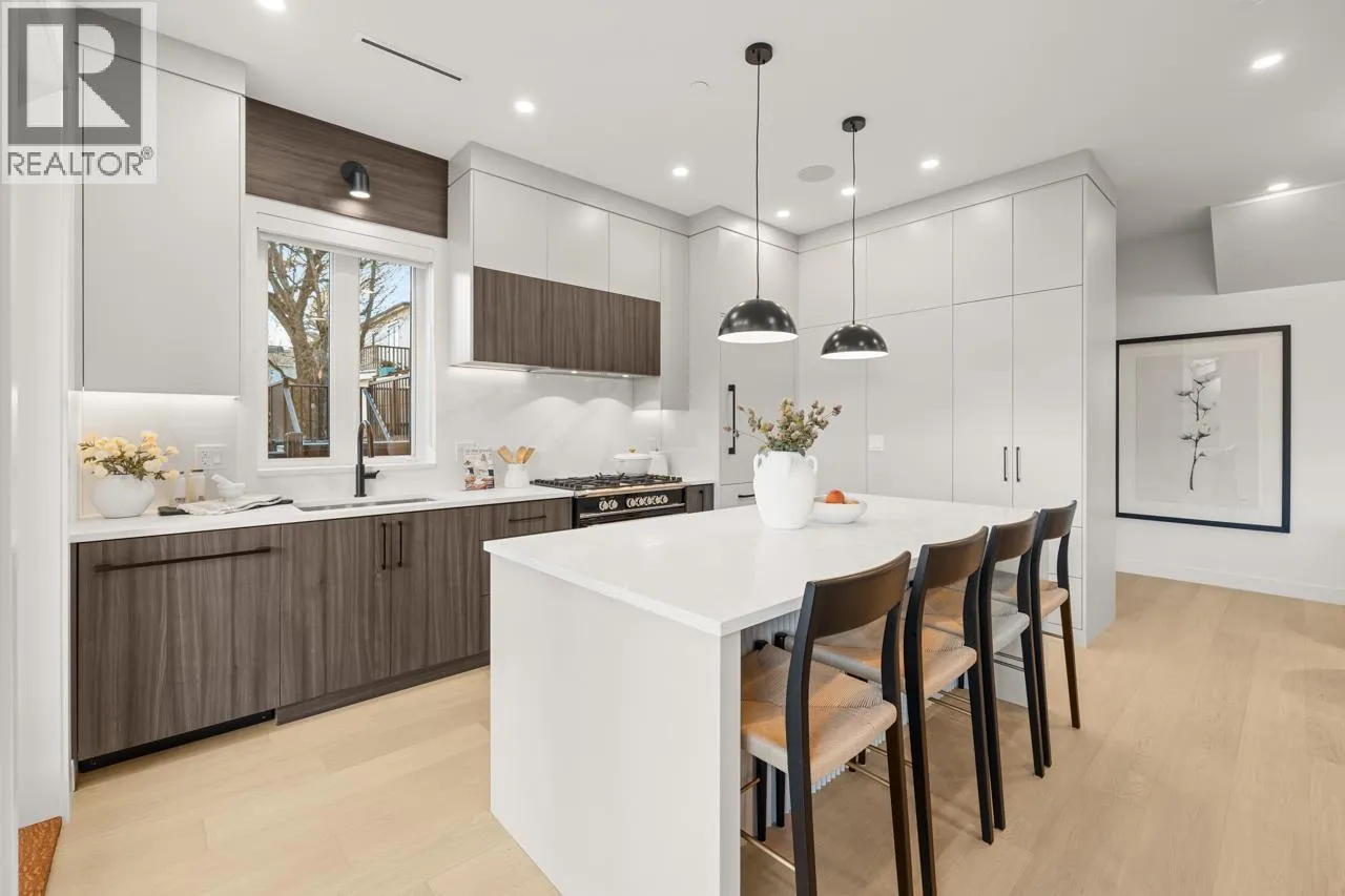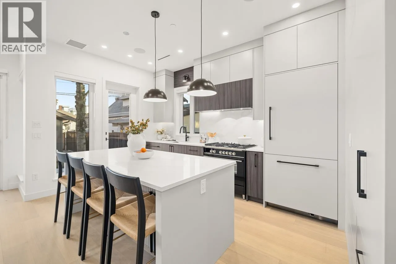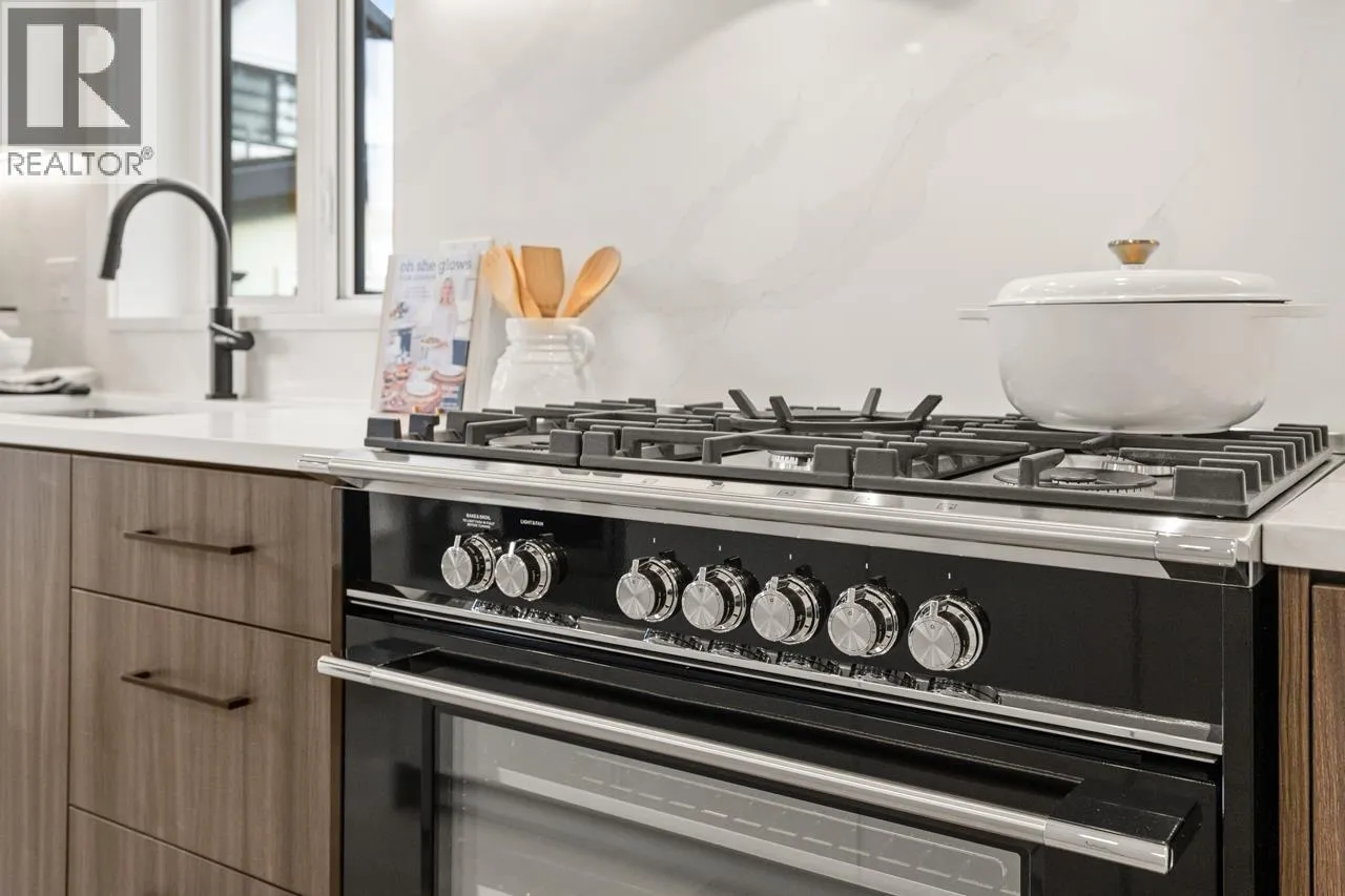 Asanti Homes presents this rare two-level 1,743 square ft half-duplex with 4 bedrooms + a 606 square ft fully finished accessible attic. Enter through the grand foyer into a spacious living & dining room featuring an oversized gas fireplace and direct access to a large private patio. The gourmet kitchen offers a large island perfect for entertaining and premium Fisher & Paykel appliances. Upstairs, four generous bedrooms accommodate large families or work-from-home needs. The primary bedroom includes a walk-in closet and private ensuite. Bonus: versatile 606 square ft finished attic ideal for storage, playroom, office, or whatever your imagination desires. Expansive 33 x 146 ft lot with big back yards, detached garage with EV charging capability, in a great neighbourhood. Open House Sat/Sun 2-4pm (id:27476)