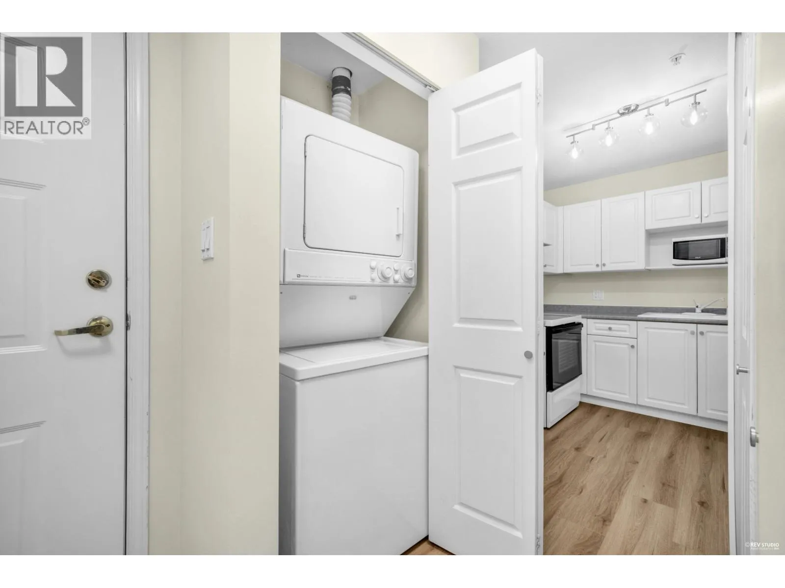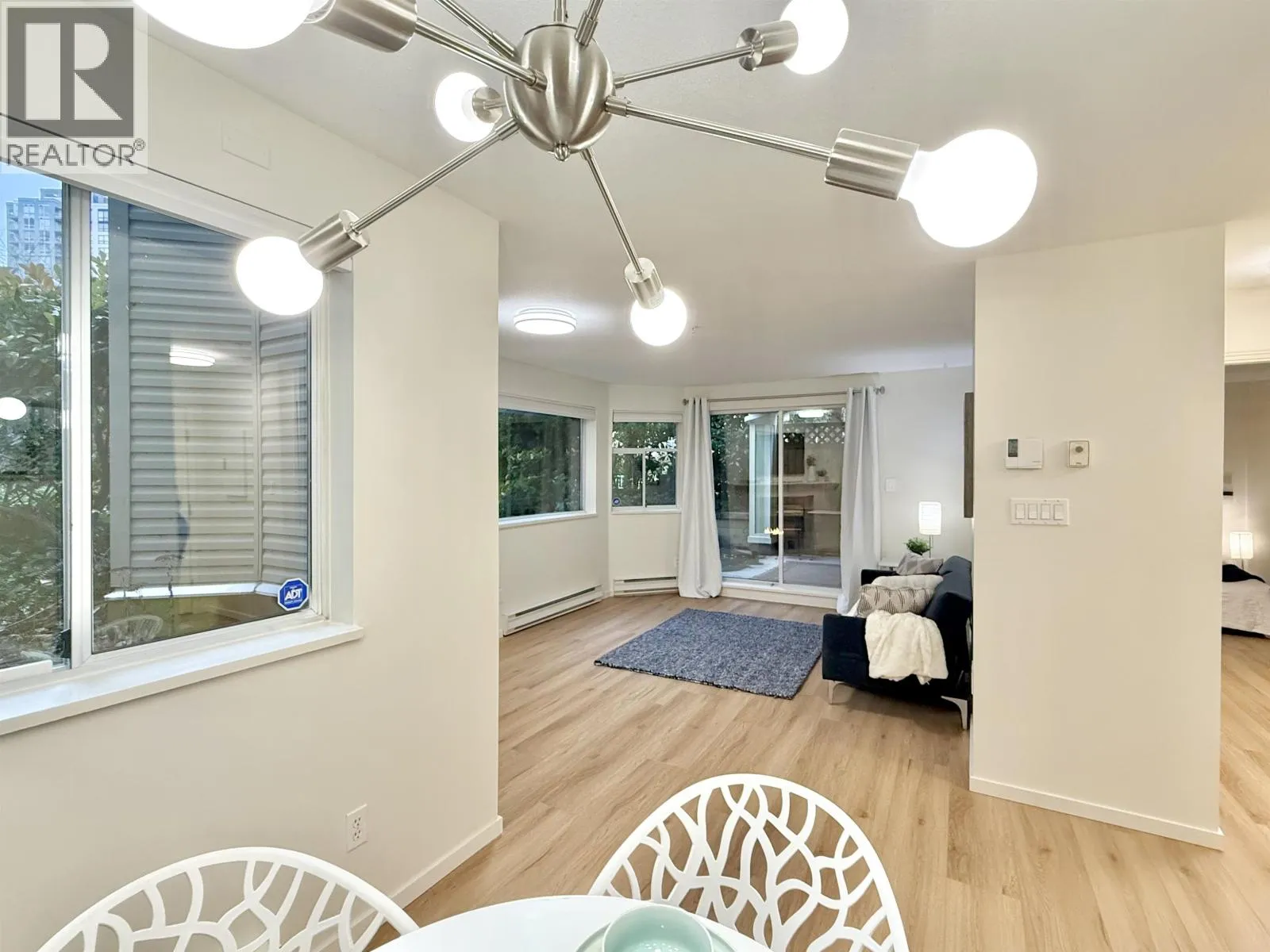 Welcome to Raintree Gardens, where urban convenience meets serene courtyard living. This nearly 700 sqft garden-level 1 bed home offers an ideal blend of comfort and connection in the heart of Renfrew-Collingwood. Recently updated with wide plank LVP floors, paint, and new lighting, this bright, south facing contemporary suite is truly move-in ready. Enjoy a spacious private patio that backs onto the locked gated courtyard of the building. This home feels worlds away from the city, yet remains moments to SkyTrain, Joyce, Crystal Mall, shops, restaurants & cafés. With gym and sauna just steps away and your storage directly across the hall, everyday convenience is unmatched. Perfect for first-time buyers or downsizers seeking value, lifestyle, and location. This is your opportunity to live the Vancouver lifestyle you love. Book your private showing to see this beautiful home today. (id:27476)