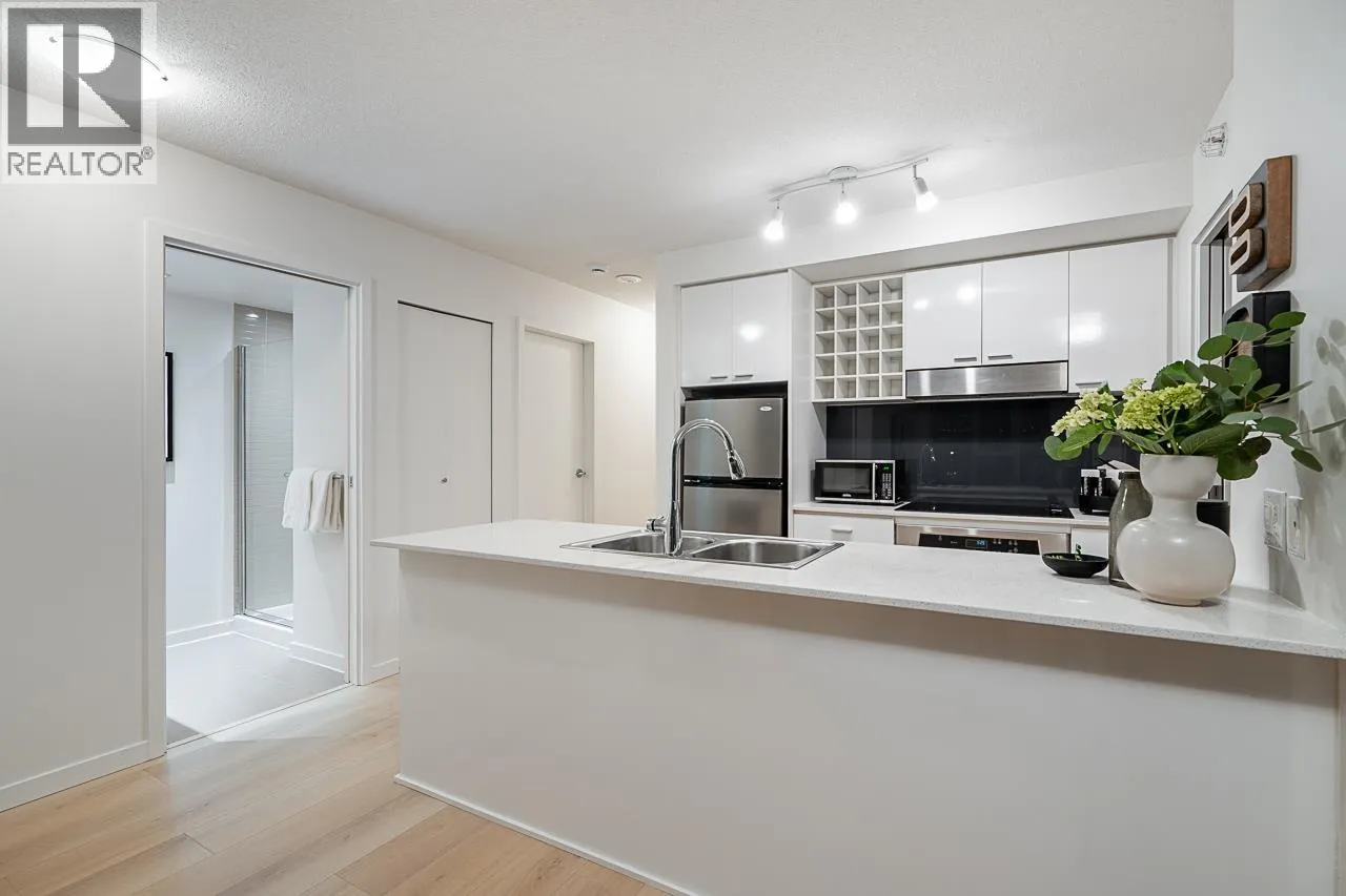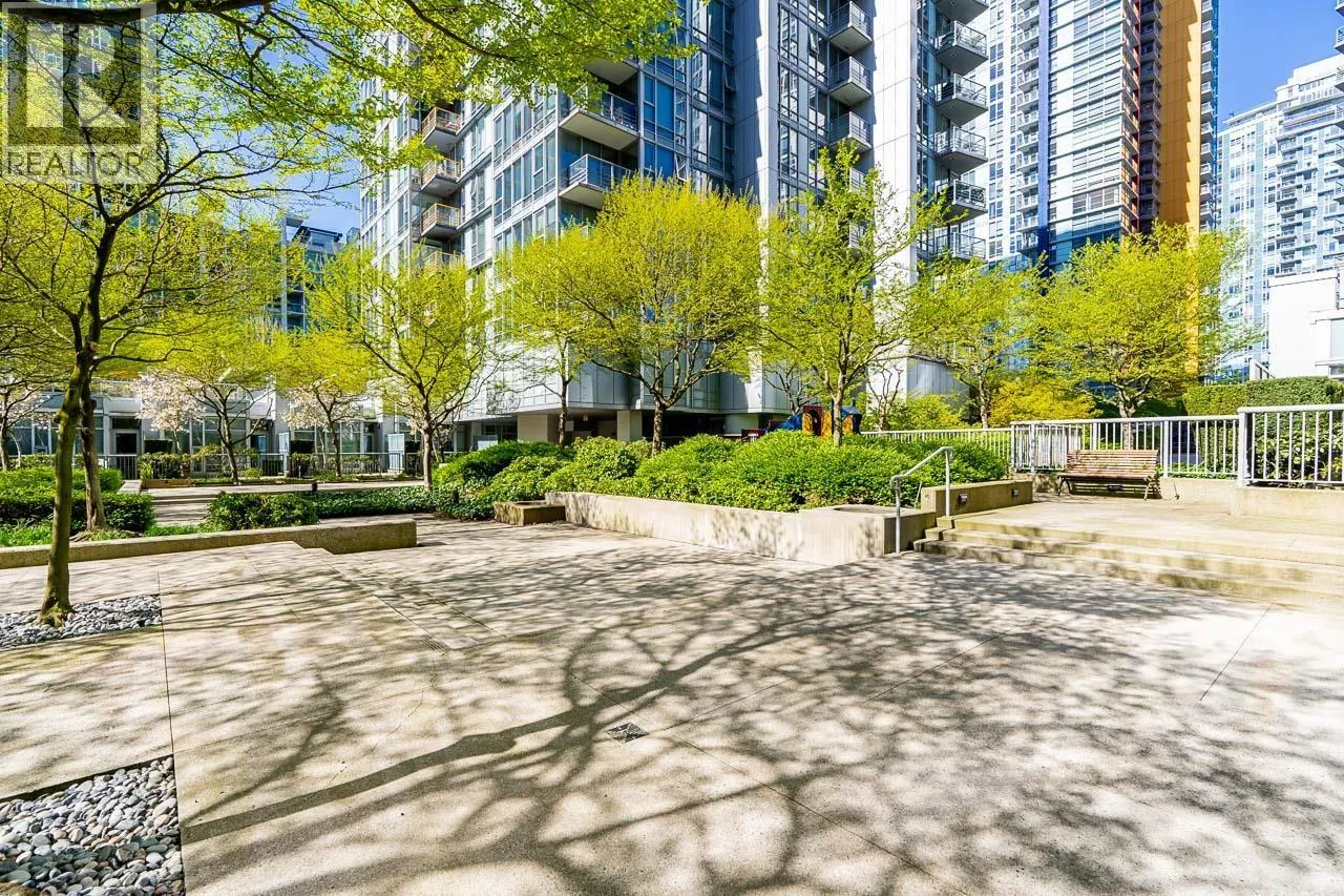 Welcome to this stunning SW-facing 2 bed/2 bath & den home at Spectrum 1, refreshed with wide-plank flooring and beautiful paint tone- it is a gorgeous unit. This 893 sqft residence features floor-to-ceiling windows with expansive city views from all main living areas. The well-designed layout separates the primary bedroom with ensuite from the second bedroom for added privacy. An open-concept kitchen, living, and dining area is ideal for entertaining. Highlights include a generous in-suite storage/flex space and solarium perfect for a home office, a BBQ-friendly patio, &1 parking stall. Enjoy resort-style amenities including an indoor pool, fitness centre, party room, outdoor terrace, bike room, and 24-hour concierge. Steps to dining, transit, Costco, the seawall and entertainment. (id:27476)