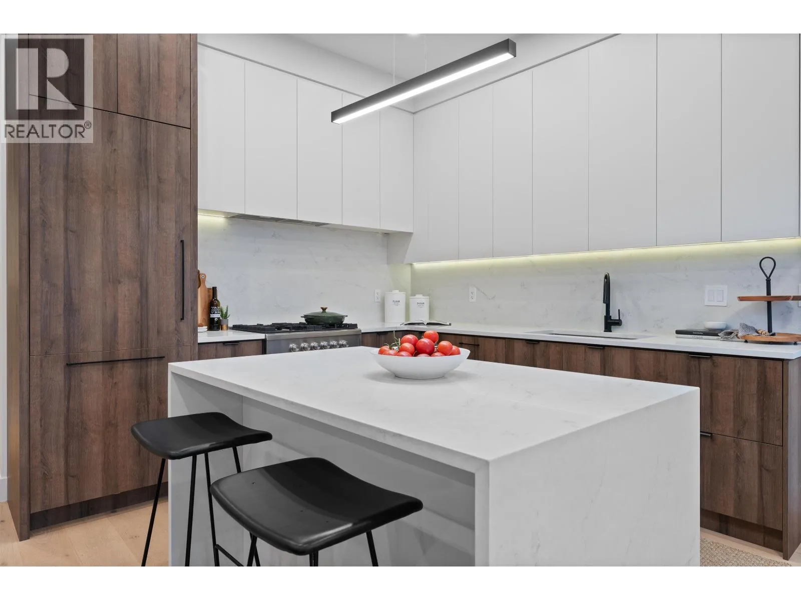 GST INCLUDED in this truly must see, nearly new 4-bedroom, 4-bathroom duplex in the heart of Mt. Pleasant! This rear home offers North Shore views and a private, cedar-fenced, beautifully landscaped backyard with a custom-built sauna, pergola and BBQ area -ideal for entertaining. The main floor features 10' ceilings, a gourmet kitchen with quartz countertops, a large island, and Fisher & Paykel appliances. Enjoy custom woodgrain millwork, an electric fireplace, spa-inspired bathrooms with Riobel fixtures, A/C, radiant in-floor heat with Google NEST, HW on demand, security system and large crawl space for storage. EV-ready garage, and more. Book your showing today! OPEN HOUSE, SAT FEB 14TH, 1PM-3PM. (id:27476)