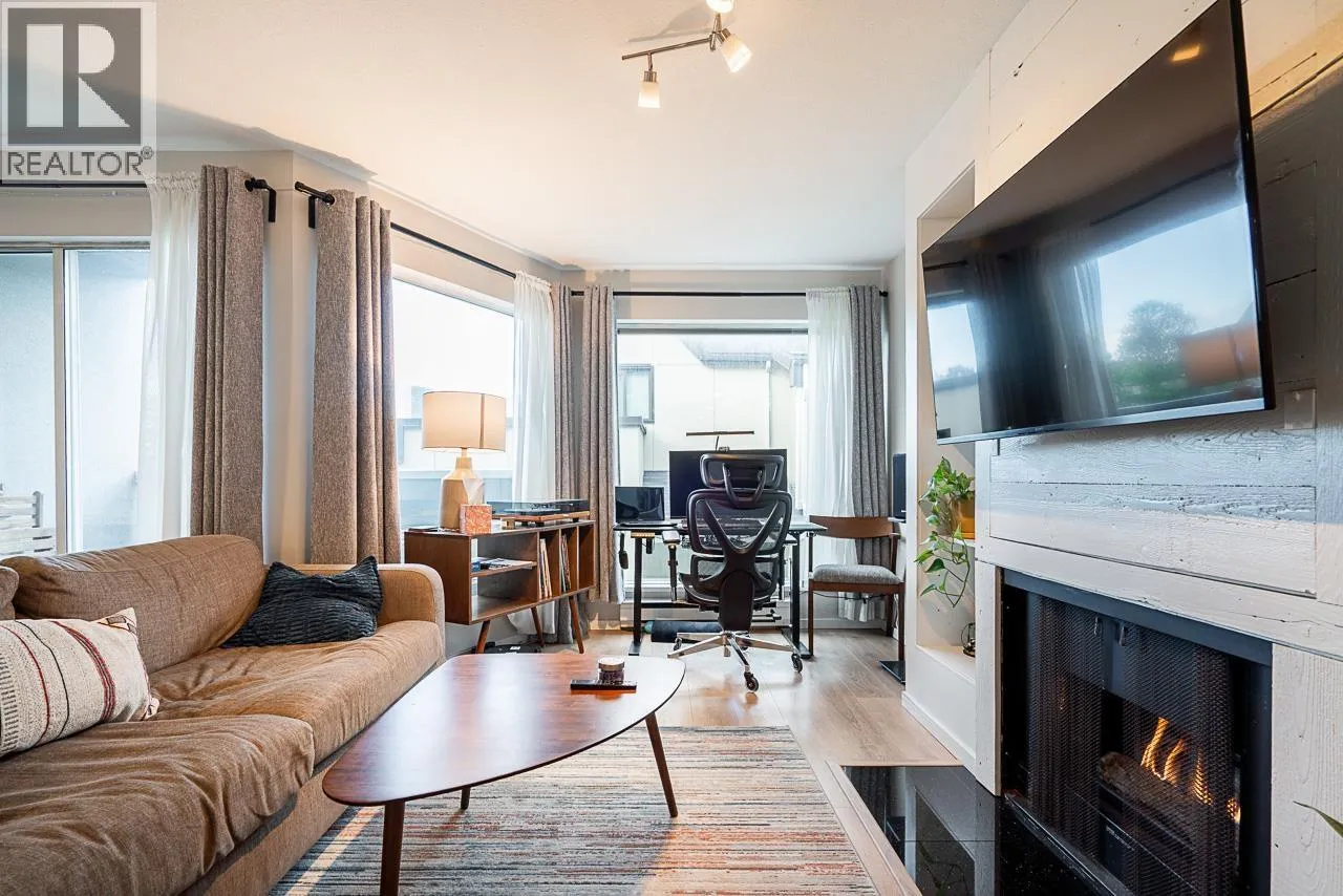 Located on a quiet cul-de-sac in sought-after Fairview Slopes, this fully renovated home in boutique 11-unit Seawinds offers style and comfort. Renovated in 2021 with a custom kitchen, stainless appliances, spa-inspired bath with heated floors, engineered flooring, shiplap walls, gas fireplace, and in-suite laundry. Spacious bedroom with floor-to-ceiling wardrobes + flex/walk-in closet. Enjoy a private south-facing patio and north-facing balcony with stunning city and mountain views. Steps to Seawall, Granville Island, shops, parks, and more. Includes 1 secured parking no locker. (id:27476)