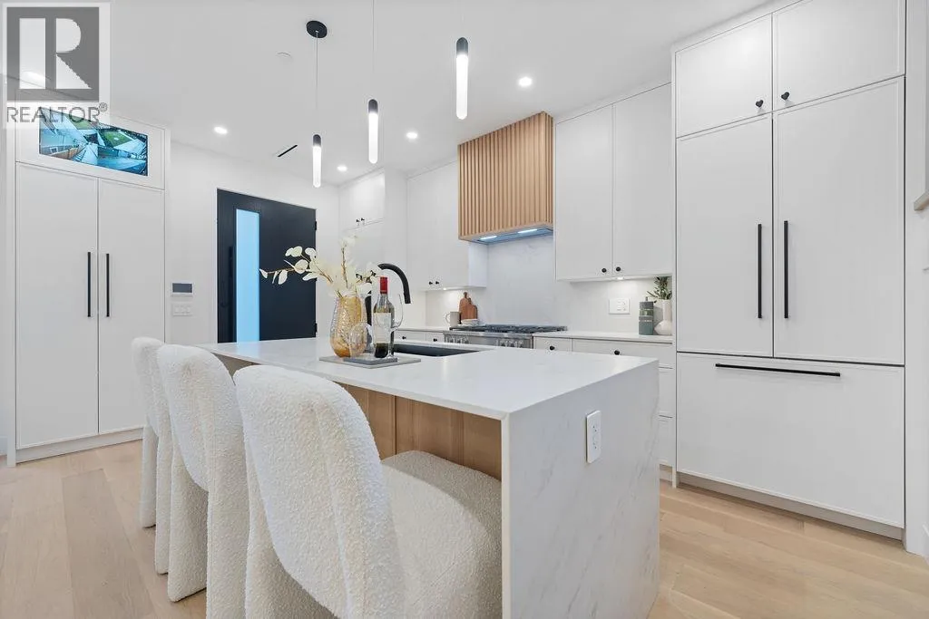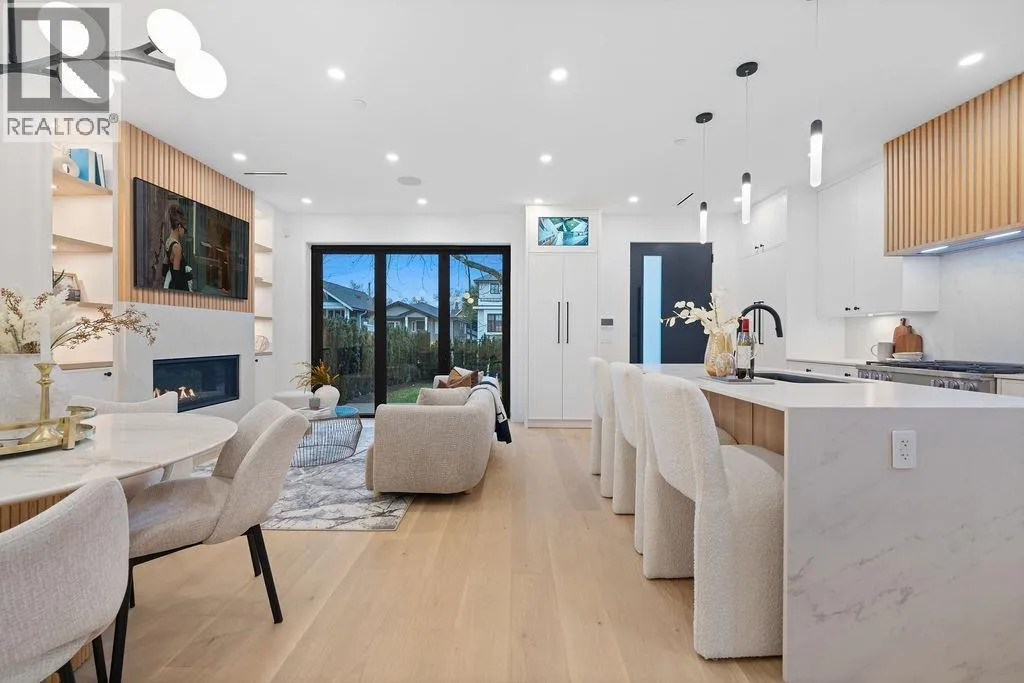 Built by renowned Westside builder Mann Bros Construction, this brand-new front 1/2 duplex in the heart of Kitsilano is a masterpiece of design and craftsmanship, with no detail spared. This 3 bed, 4 bath home blends timeless style with modern comfort. The main floor boasts an expansive, open-concept layout with a sleek Miele kitchen, Dekton counters, custom cabinetry, and a 7-ft island. High ceilings, triple-glazed windows, radiant in-floor heat, and eclipse doors create seamless indoor-outdoor living. Features include A/C, built-in speakers, EV-ready garage, and smart home features. Spa-inspired bathrooms feature Riobel and Kohler fixtures, frameless glass showers, and smart toilets. Enjoy mountain views in one of Vancouver´s most walkable and family-friendly neighbourhoods. OPEN HOUSE: Sat Feb 14 @2-4 (id:27476)