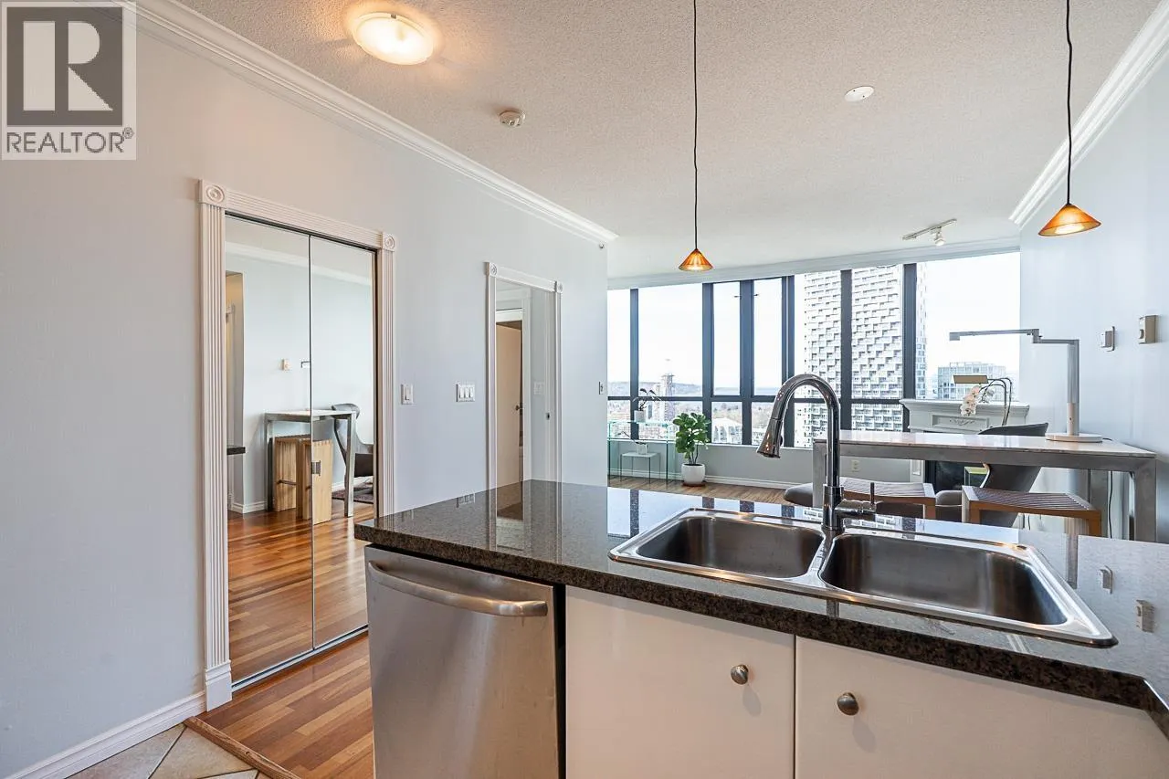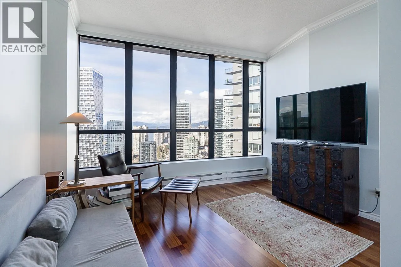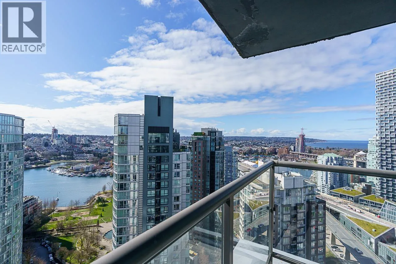 This one-of-a-kind Unit 3202 offers stunning sunset views from its SW corner perch overlooking False Creek & English Bay. This 2 bed, 2 bath + den + office sub-penthouse boasts large windows in every room, breathtaking views throughout. Kitchen features granite counters and S/S appliances. 9´ ceilings, hardwood floors and gas fireplace. Only 2 units on level 32 added privacy! Amenities include concierge, party room, indoor/outdoor pool, Jacuzzi, sauna, gym, guest suite, an elegant lobby with passenger drop-off & and an outdoor courtyard with beach volleyball court. Pets & rentals allowed. Prime location-steps to SkyTrain, dining in Yaletown, grocery shopping & the seawall. George Wainborn Park is one block away Bonus:* 2 parking 1 storage locker. (id:27476)