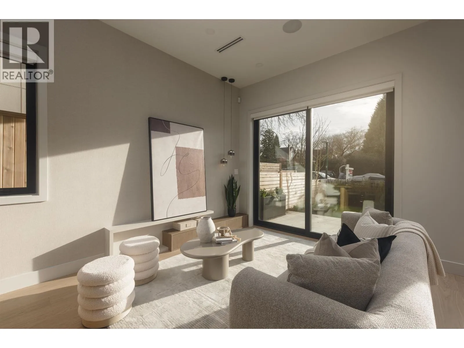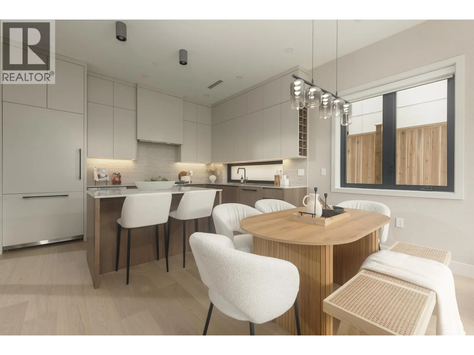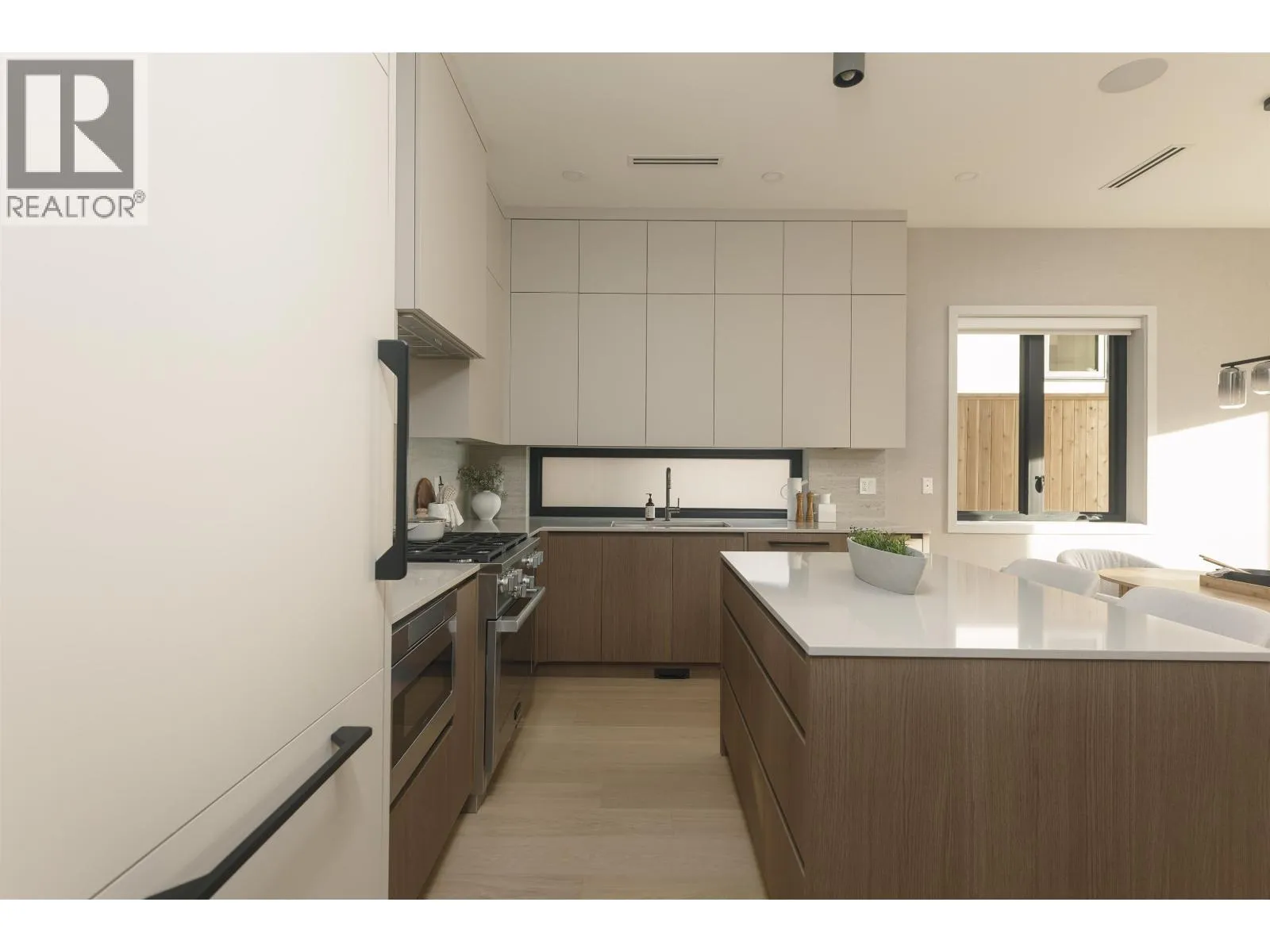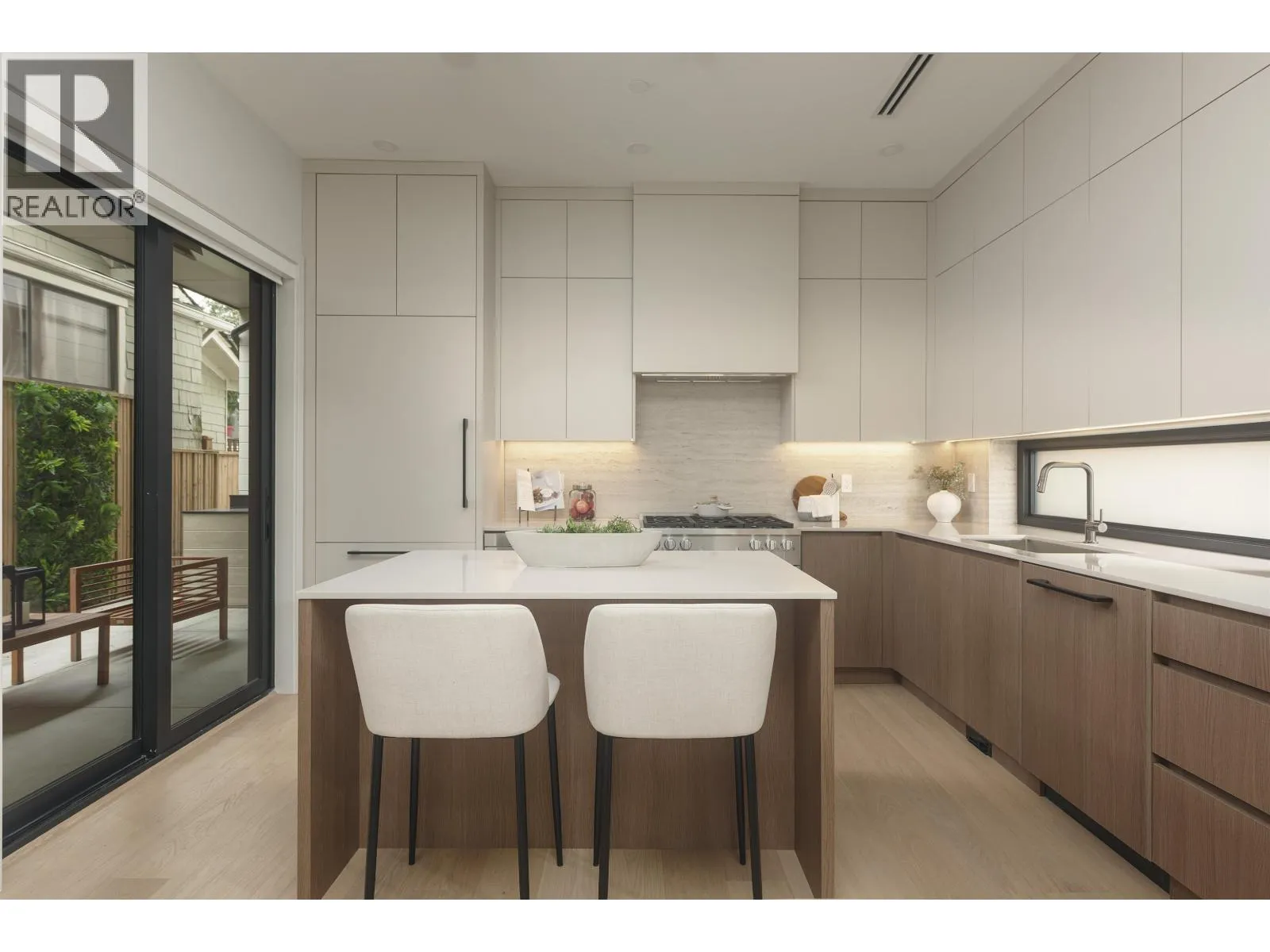 Proudly crafted by Medallion Homes and designed by VictorEric- Georgie Award winning, this south-facing Kitsilano front-unit duplex delivers refined coastal luxury just steps from Kits Beach, parks, cafés, and top Westside schools. Featuring 3 beds and 3.5 baths, it offers thoughtful design and premium finishes throughout. The gourmet kitchen includes Miele and Fulgor Milano appliances, custom cabinetry, and a sleek layout perfect for daily living and entertaining. Enjoy multiple walk-out patios, including a private chic Westcoast cedar patio with built-in BBQ, heaters, and a custom green wall. The top-floor bedroom is a serene retreat with a private deck and spa-inspired ensuite. Full crawlspace storage and a detached garage with epoxy flooring complete this exceptional home. (id:27476)