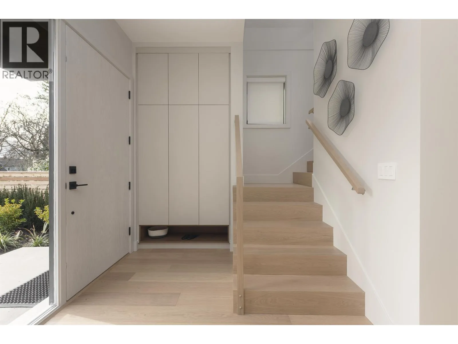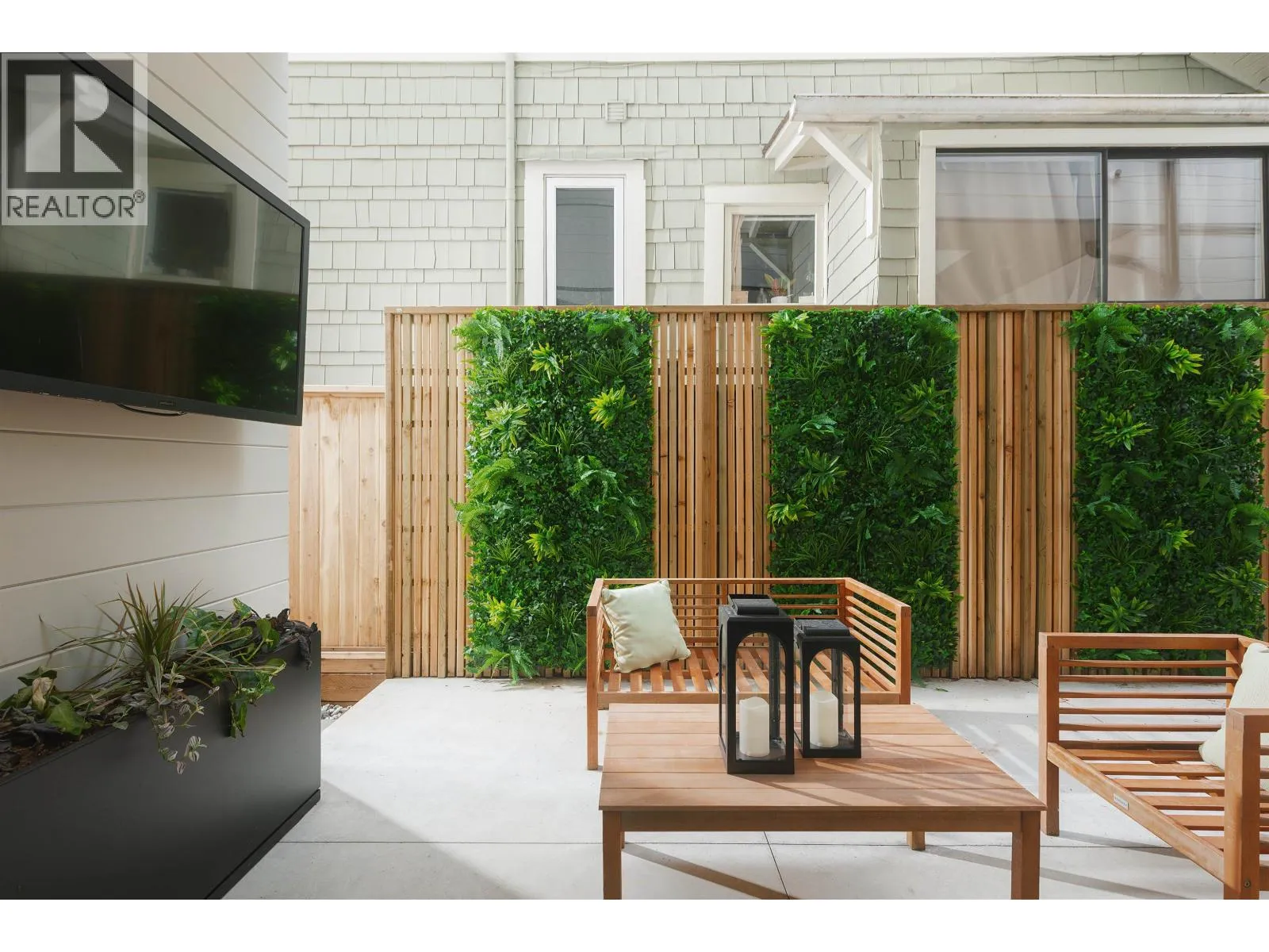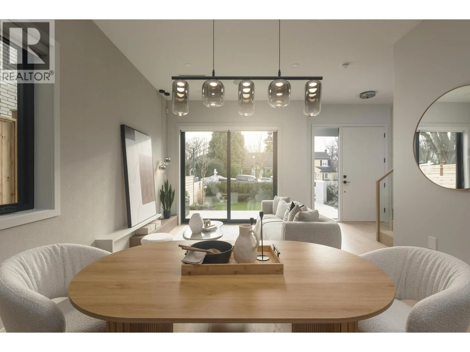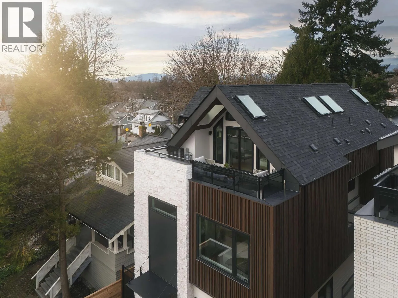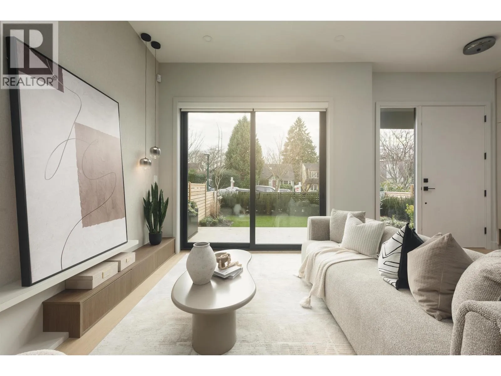 Proudly crafted by Medallion Homes and designed by VictorEric- Georgie Award winning, this south-facing Kitsilano front-unit duplex delivers refined coastal luxury just steps from Kits Beach, parks, cafés, and top Westside schools. Featuring 3 beds and 3.5 baths, it offers thoughtful design and premium finishes throughout. The gourmet kitchen includes Miele and Fulgor Milano appliances, custom cabinetry, and a sleek layout perfect for daily living and entertaining. Enjoy multiple walk-out patios, including a private chic Westcoast cedar patio with built-in BBQ, heaters, and a custom green wall. The top-floor bedroom is a serene retreat with a private deck and spa-inspired ensuite. Full crawlspace storage and a detached garage with epoxy flooring complete this exceptional home. (id:27476)