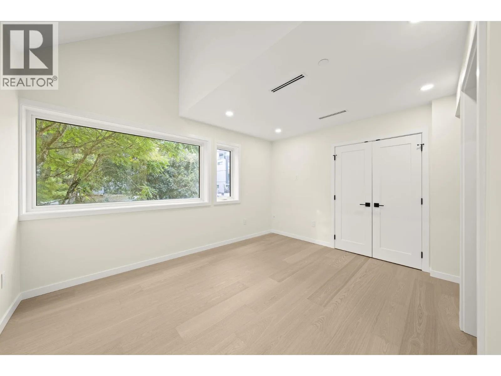 Welcome to Trout Lake Living. This south-facing, 3 bed + 3.5 bath brand-new duplex spans 1,773 sq/ft and sits quietly in a cul-de-sac just steps to the park. Thoughtfully designed with precision and purpose, featuring a FORNO appliance package, quartz countertops, TOTO fixtures, and sleek tile flooring throughout. Radiant in-floor heating and air conditioning ensure year-round comfort. The main level offers two generous bedrooms-each with a private ensuite and room for a king bed-while the top floor is a dedicated primary suite with a walk-in ensuite and private balcony. Complete with a single detached garage plus an additional parking pad. Minutes to Trout Lake Park, Commercial Drive, SkyTrain, Lord Beaconsfield Elementary, Gladstone Secondary, and Hwy 1. Book your private showing today. (id:27476)