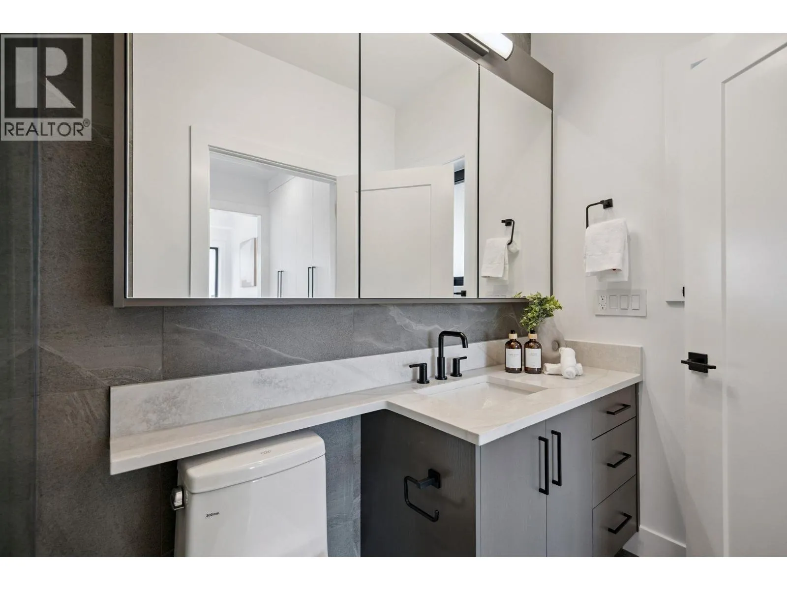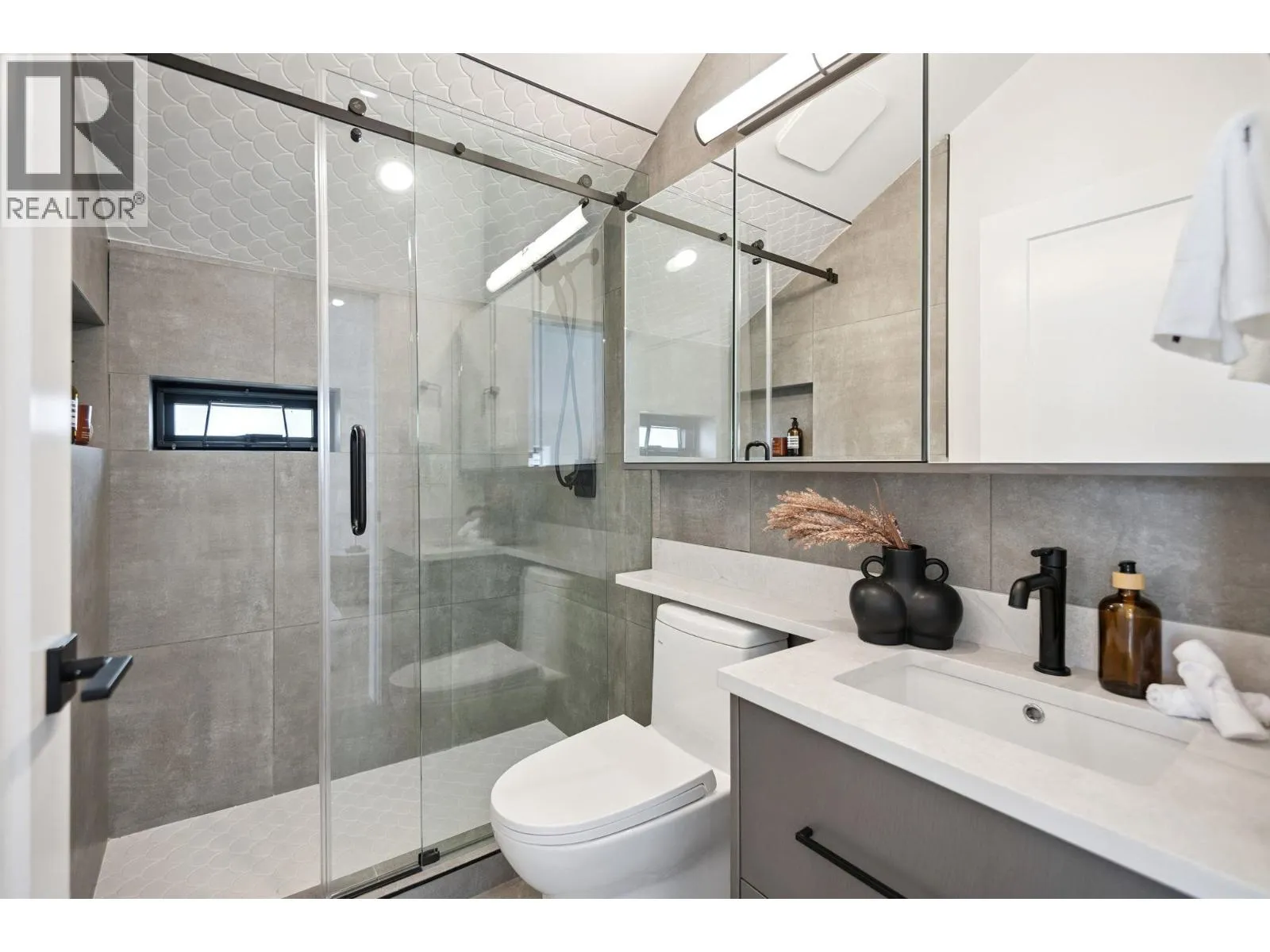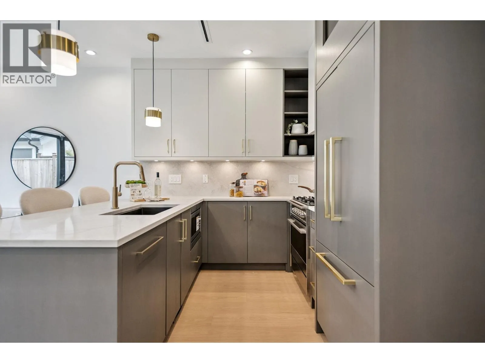 Stunning brand-new back unit duplex in Mount Pleasant! This stylish 3 bedroom, 3.5 bath home offers 1,468 square ft of thoughtfully designed living space across three levels. Step inside to a bright open-concept floor plan featuring hardwood floors, elegant finishes, and a stylish kitchen with gas range, quartz countertops and custom cabinetry, and accordion patio doors for seamless indoor-outdoor living.. Upstairs, two bedrooms with its own ensuites perfect for growing families. The top-floor boast a private retreat with a full ensuite and balcony with mountain views. Located on a quiet tree-lined street, steps to Charles Dickens Annex, Clark Park, Trout Lake, Commercial Drive, and transit. Enjoy the comfort and functionality of modern living in a sought-after neighbourhood! (id:27476)