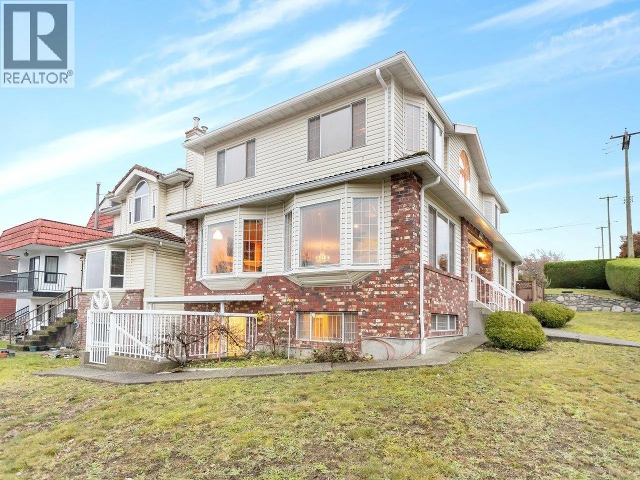 Discover exceptional living in East Vancouver´s Renfrew neighbourhood, just minutes to transit and highway access, and directly across from a beautiful park. This well-kept home showcases fantastic views of Burnaby and the North Shore mountains, featuring 4 bedrooms and 4 bathrooms, including a bright 1-bedroom basement suite with 8-foot ceilings. Enjoy radiant hot-water heating with a new boiler and hot-water tank, spacious bedrooms, a family room off the kitchen, a large outdoor patio, a double garage, concrete tile roof, new gutters, and a beautifully maintained yard. Property has significant redevelopment potential: Proposed density per Rupert Renfrew Community Plan Mixed Use Residential (up to 6 storeys). (id:27476)