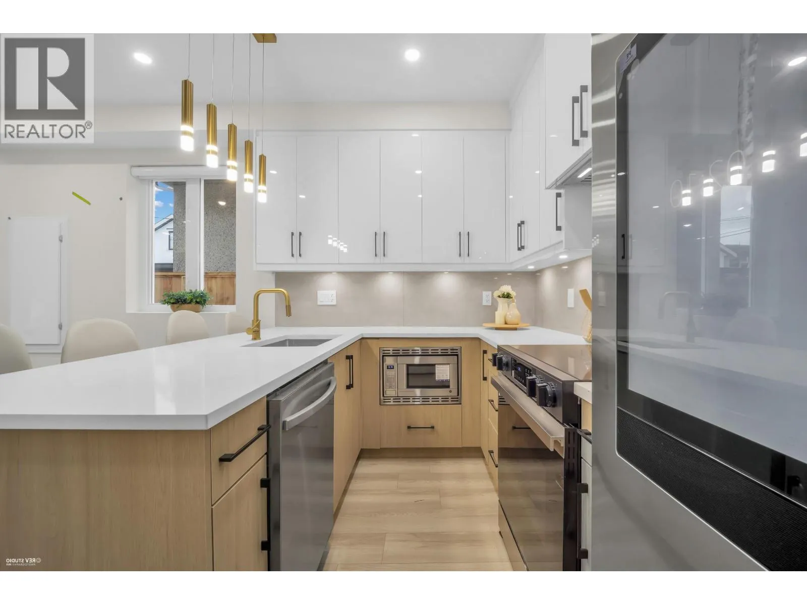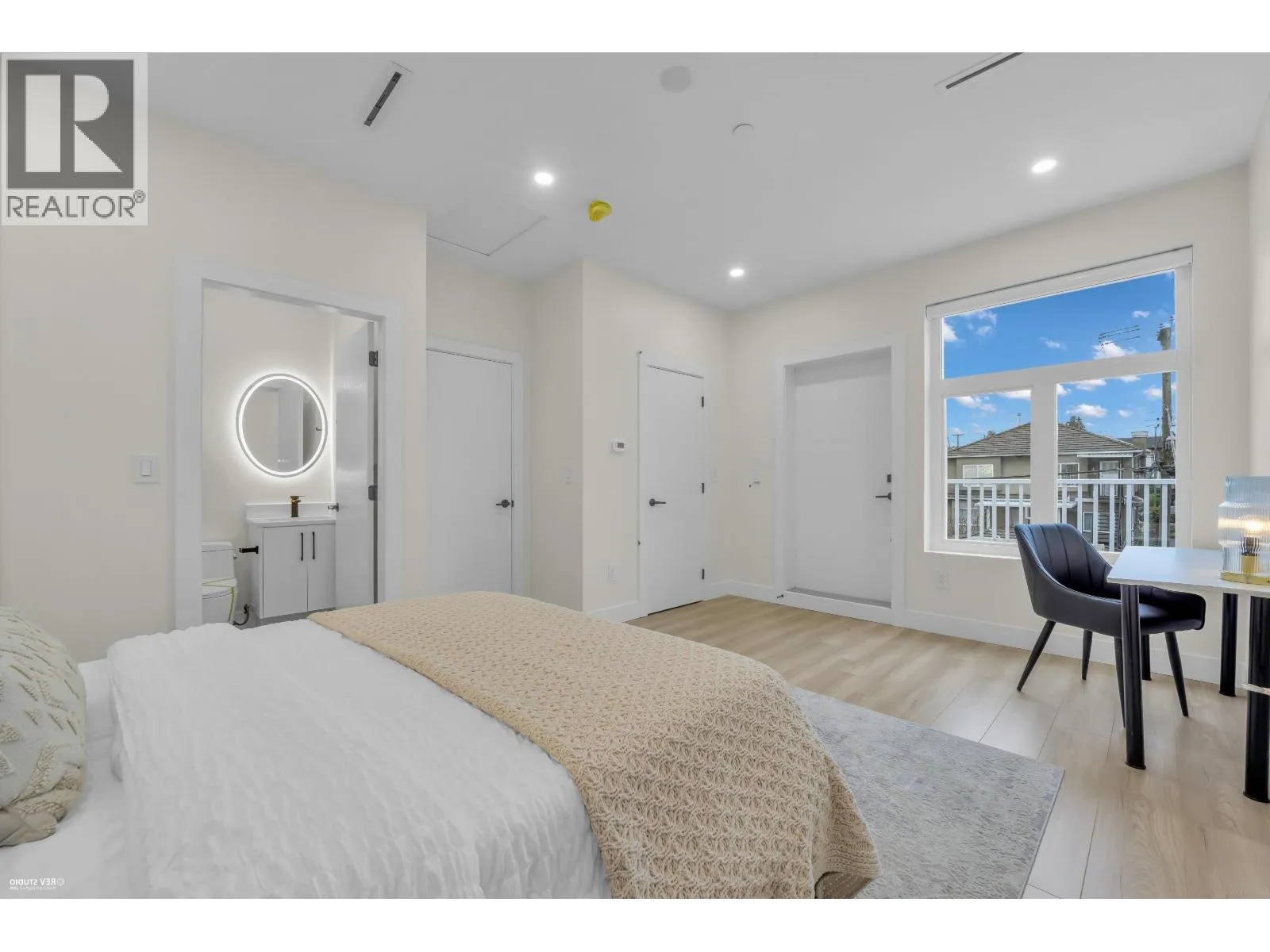 Brand new fourplex on a quiet street in South Vancouver. This front-facing home offers a private, fully fenced yard and an open-concept living and dining area with a modern kitchen featuring stainless steel appliances, quartz countertops, and sleek acrylic cabinetry. Designed with 9´ ceilings, large windows for natural light, and ensuite bathrooms for all bedrooms. The oversized top-floor primary bedroom includes flexible space for a home office or nursery and opens to a private rooftop deck with views. Features include A/C, HRV system, radiant in-floor heating, zebra blinds, wide-plank laminate flooring, balcony, security system, and one open parking stall with EV charger. Steps to transit, parks, schools, shops, and restaurants, with quick access to Knight Street Bridge and Highways. (id:27476)