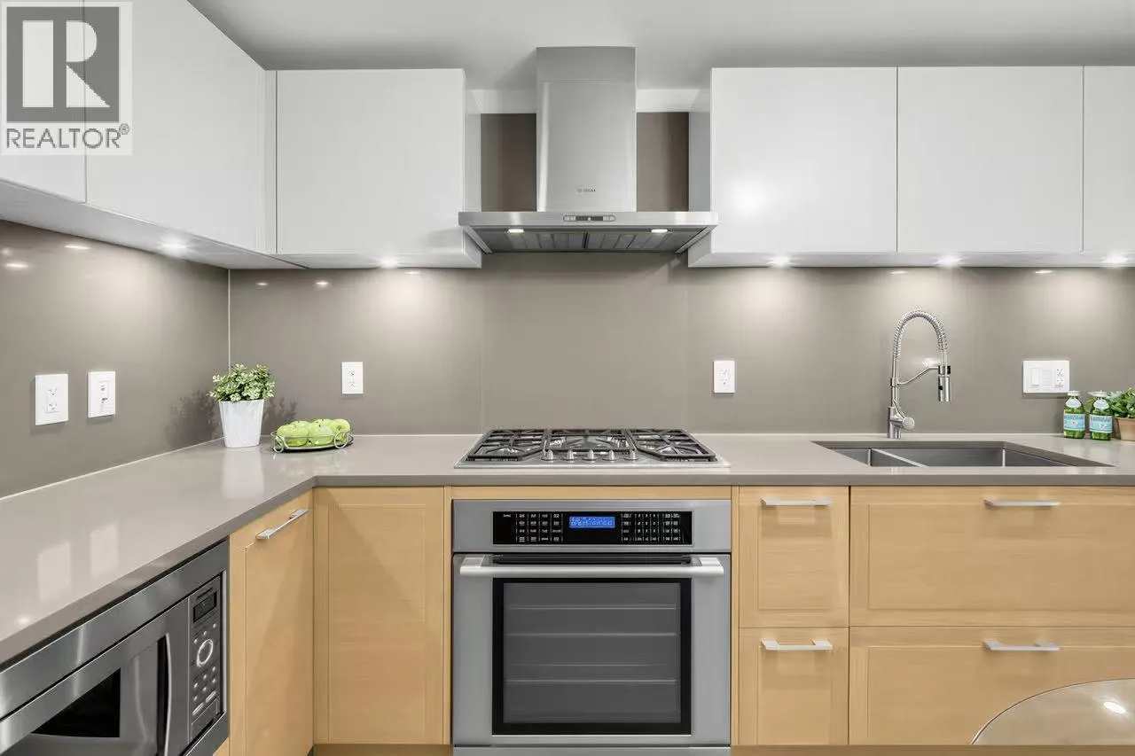 Welcome to Hudson House at the prestigious Shannon Wall Centre, timeless modern West Side luxury. This East-facing BRIGHT 1 Bed + Flex home offers a flawless layout with A/C, wide-plank hardwood flooring, and a gourmet kitchen featuring European cabinetry, quartz countertops, high-end appliances, and a 5-burner gas cooktop. Floor-to-ceiling East-facing windows fill the space with natural light and a white quartz beautiful garden swimming pool view. Enjoy resort-style amenities on 10 acres of park-like grounds, including an outdoor pool, gym and clubhouse room. 1 parking & 1 locker included. Prime location just minutes to top public & private schools, Kerrisdale Village, South Granville shops, parks, transit, and a short stroll to Choices Market. Open House, Feb 14, Sat, 2-4 p.m. (id:27476)