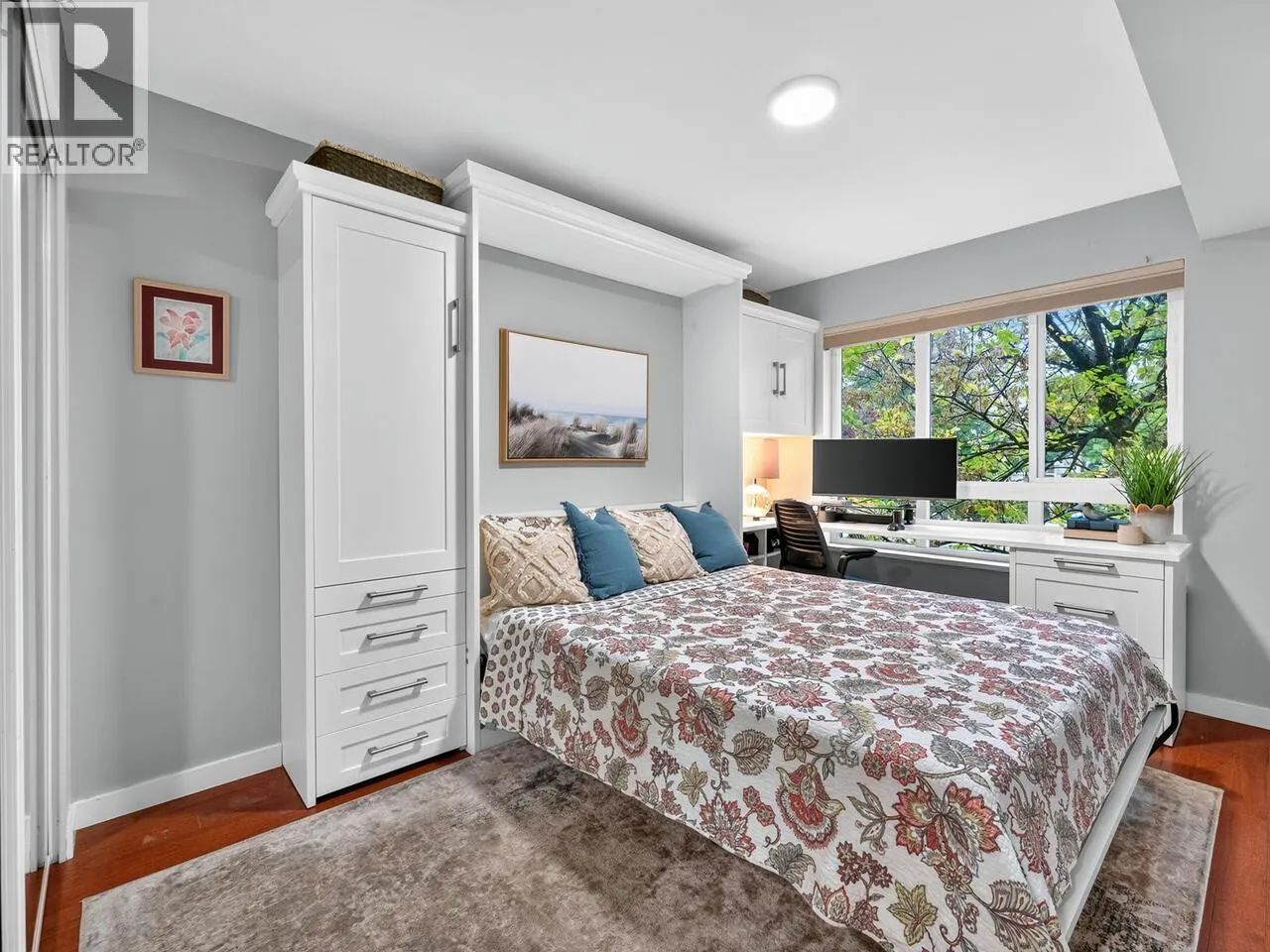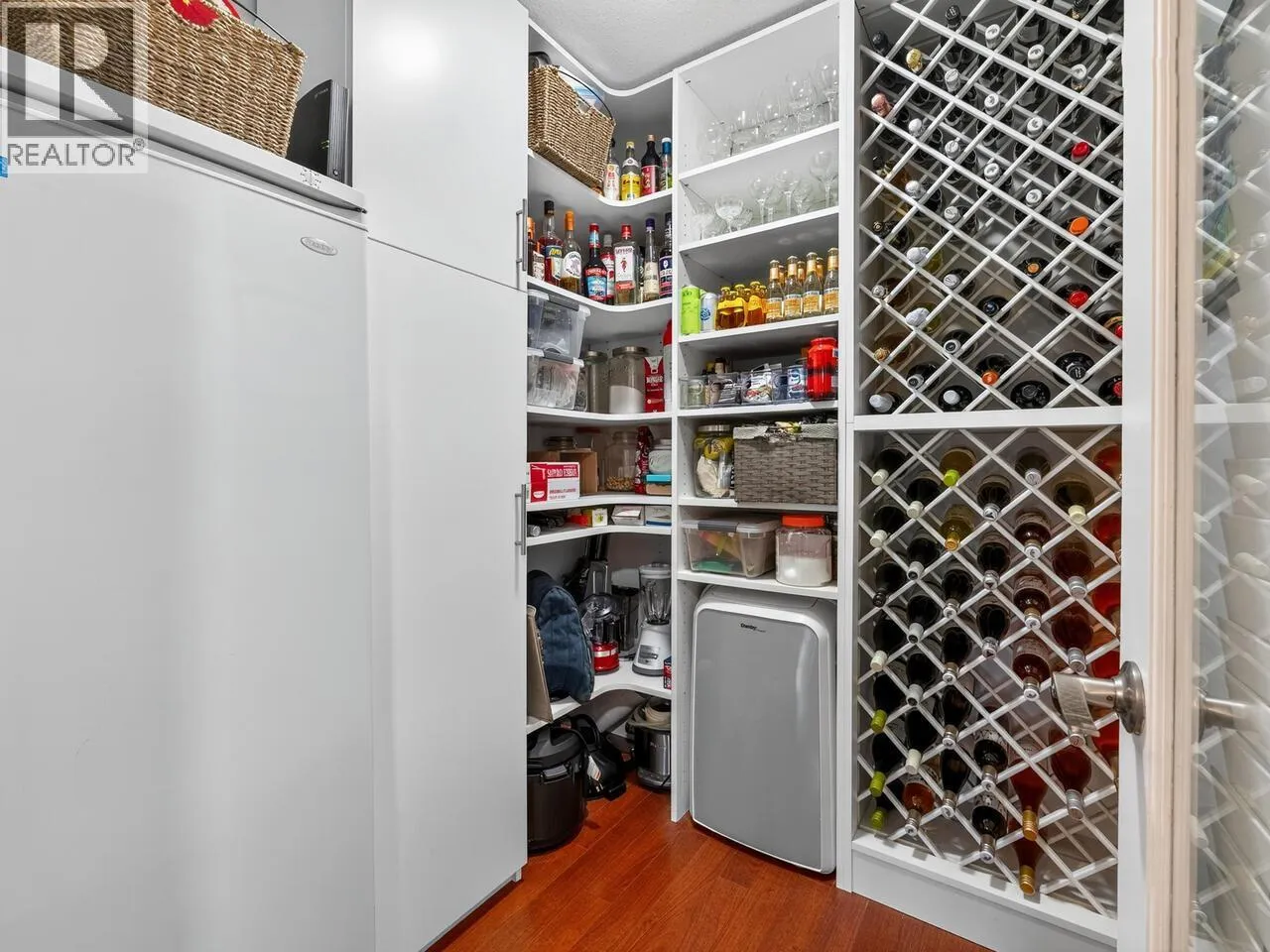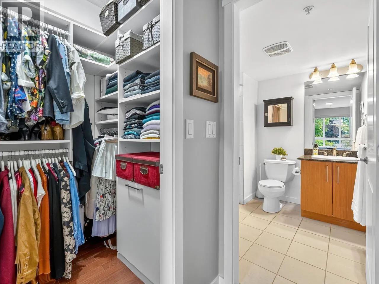Rarely available 2 bed, 2 bath home in the coveted & well maintained 'Kerrisdale Landing´ boutique building. With an ideal floorplan - separated bedrooms, large kitchen, open living and dining room and bonus pantry/flex room with custom storage - this home checks all the boxes. A cozy gas fireplace and lovely West facing balcony over the greenway completes this home that is steps to the best of Kerrisdale - community center, shopping, groceries and walking distance to catchment schools Maple Grove Elementary and Magee Secondary. Smart and functional upgrades throughout including pull-outs in the kitchen cupboards, custom storage solutions and Murphy bed/desk combo in secondary bedroom. Move in ready with fresh paint & updated lighting. To see it is to love it. Open House Feb 8, 1:30-3:00pm (id:27476)