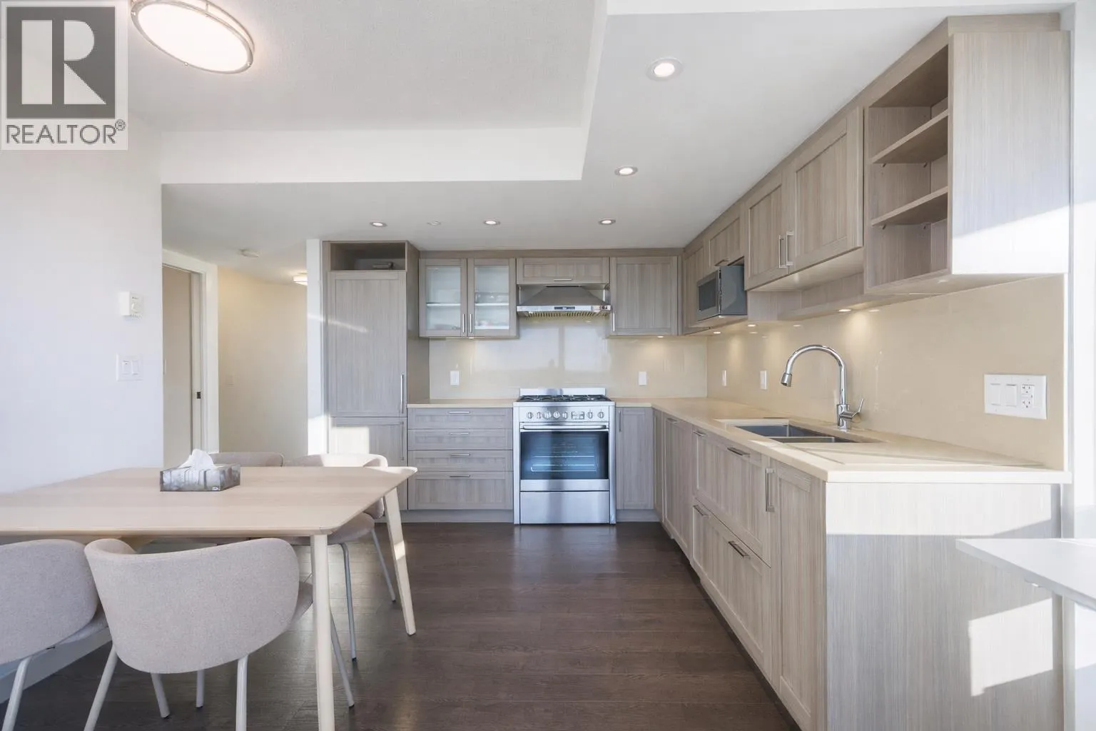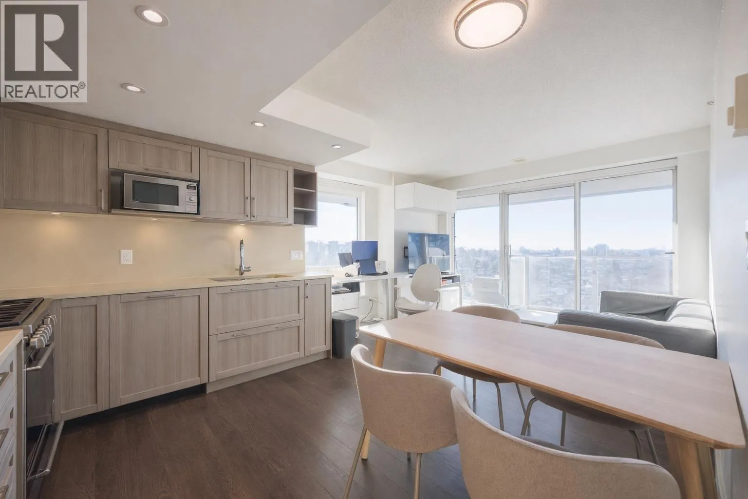 Welcome to Wall Centre Central Park. This 15th floor CORNER unit offers a highly functional layout with 2 bedrooms, 2 bathrooms plus a flex room, featuring WINDOWS ON BOTH SIDES that bring in abundant natural light throughout the day. The SOUTHWEST-FACING exposure provides open, UNOBSTRUCTED mountain views from the living room and both bedrooms, creating a bright and airy living environment. The open-concept living and dining area is finished with high-end appliances, quartz countertops, and shaker-style cabinetry. Amenities include a full-size fitness centre, lounge, garden plots, playground, courtyard, and visitor parking, all within walking distance to Central Park, SkyTrain, dining, and everyday conveniences. Book your private showing now! (id:27476)
