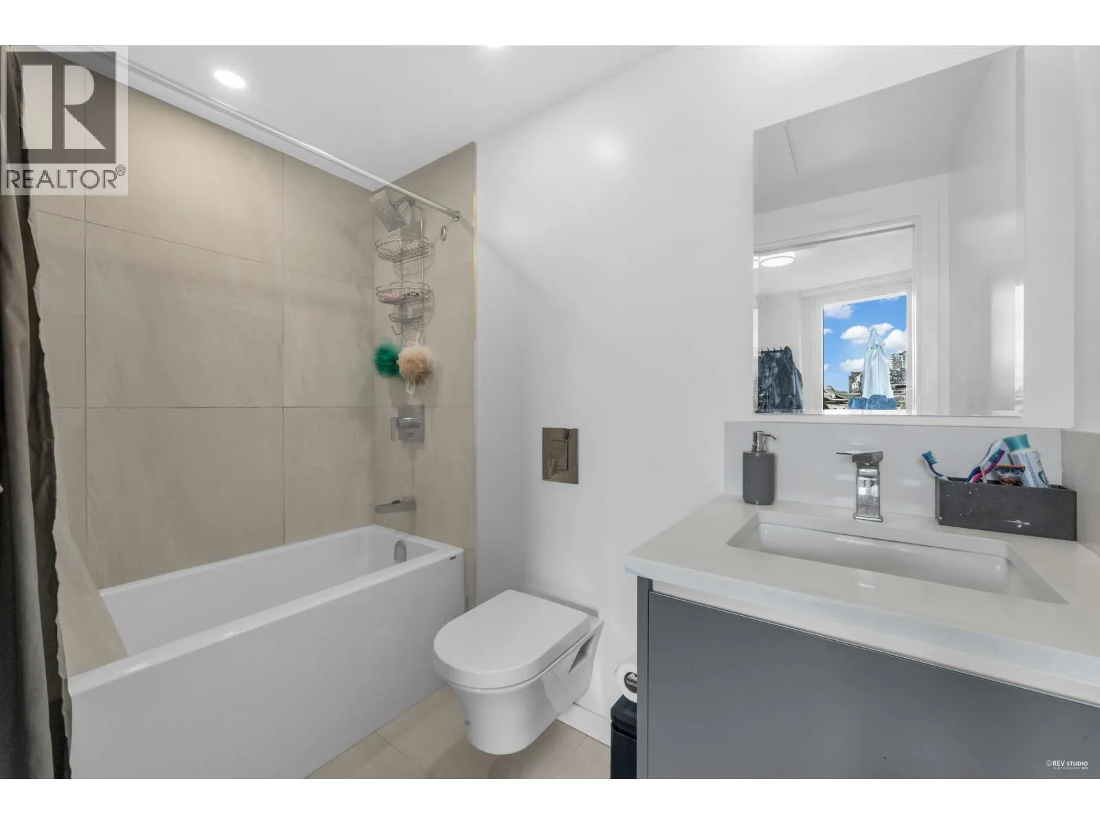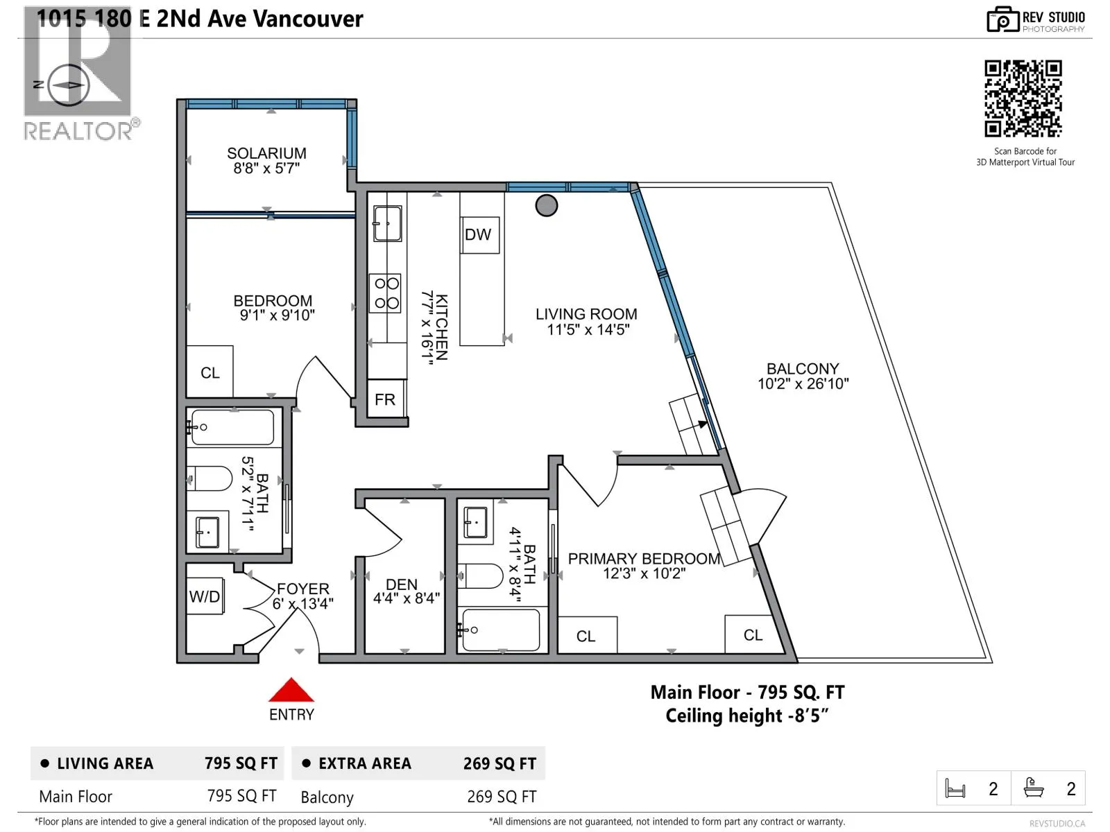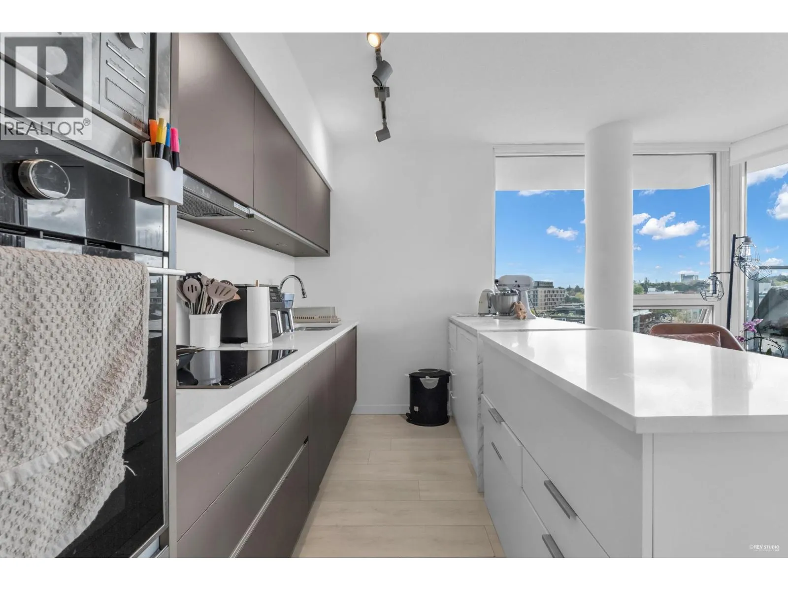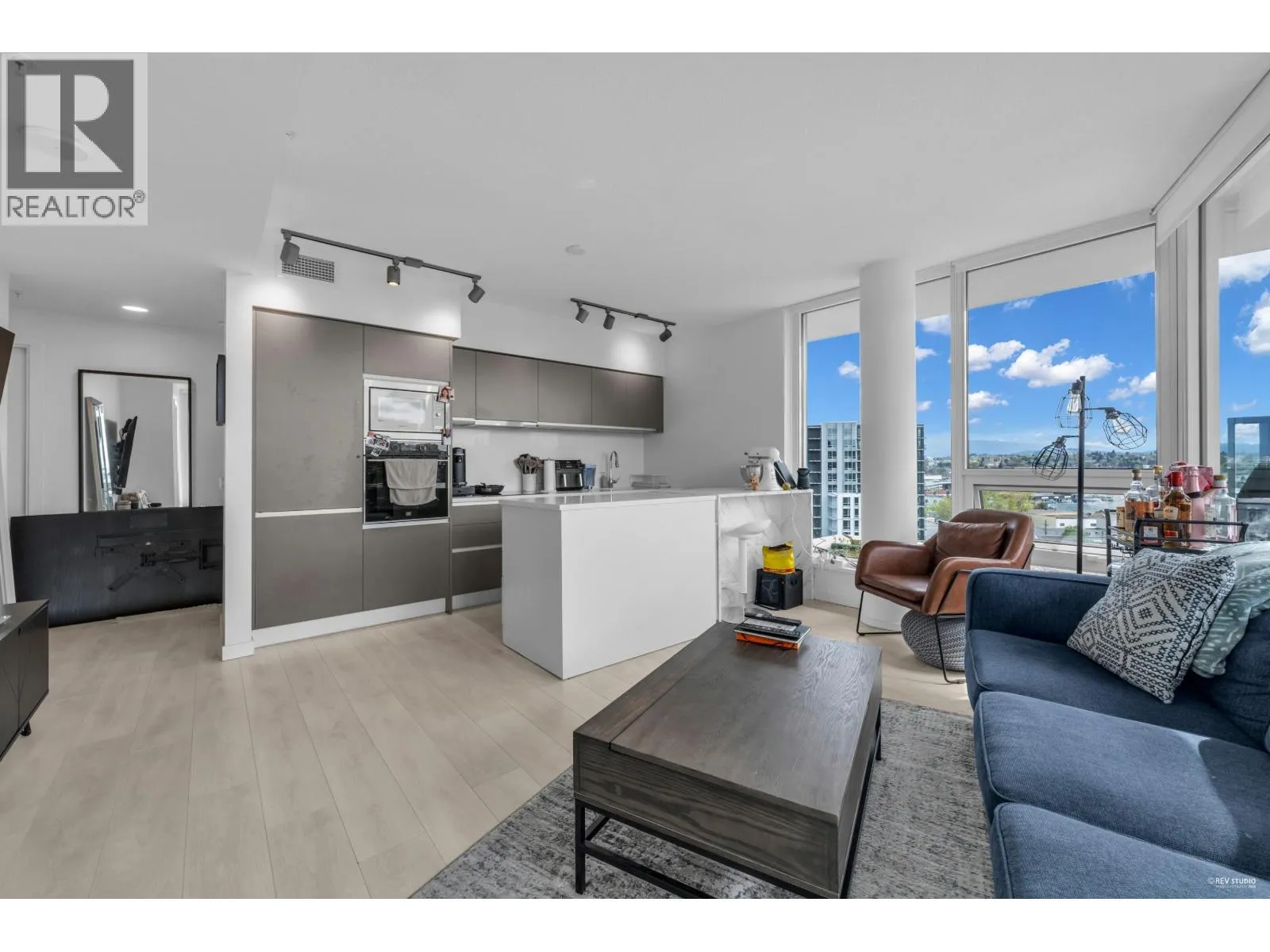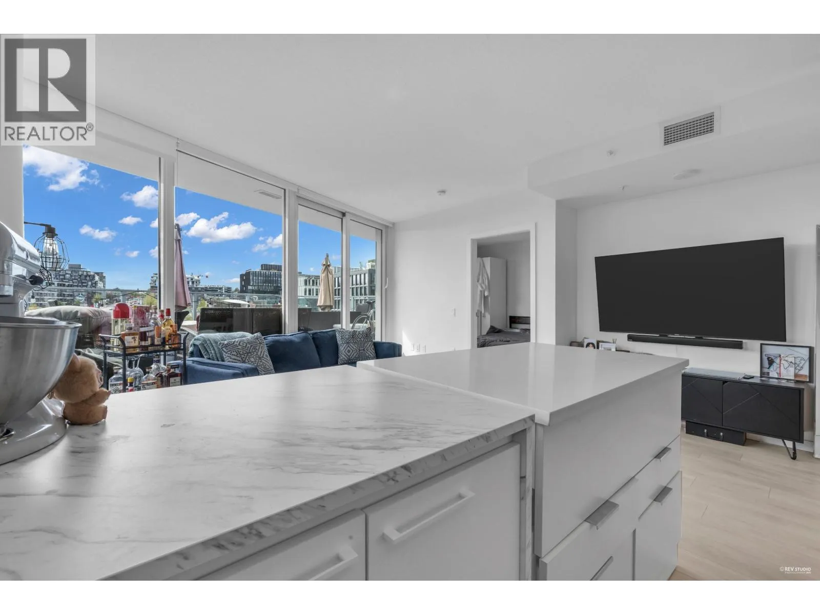 PRICED UNDER ASSESSMENT! Olympic Village area. INCLUDES 2 PARKING and a spacious 269sf patio-ideal for relaxing or entertaining. Best-priced 2 bed + den + sunlit solarium that extends from the bedroom. Not all homes have a solarium perfect as an office or pet space. Bright, efficient layout with modern kitchen, high-end appliances and air conditioning. Only 4 years old with 2-5-10 warranty remaining. Amenities include a gym, rooftop BBQ and garden plots, and social lounge for large gatherings. Prime location: walk to SkyTrain, downtown, future Broadway Line, and St. Paul's. Walk Score 99, Transit 89, Bike 96. Great for end user or investment. Plenty of visitors parking for your friends and family, and bike storage. (id:27476)