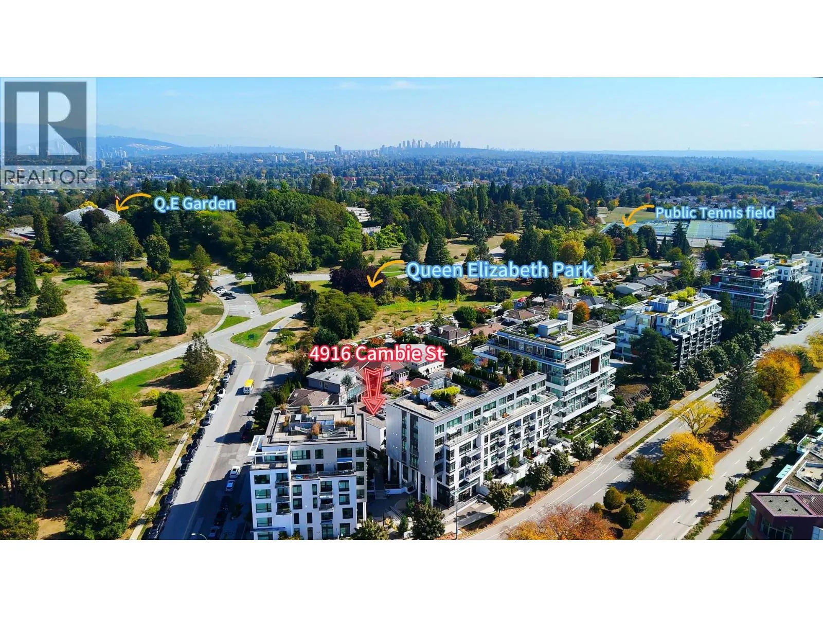 Welcome to this rarely available 2 bed / 3 bath CONCRETE townhouse, perfectly positioned in Vancouver's most central and park-side community. Tucked away on the quiet back row, this home offers the best of both convenience and tranquility - just across from Queen Elizabeth Park. Inside, soaring floor-to-ceiling windows invite natural light into every corner. Luxurious details include imported Italian cabinetry, stone countertops, premium "Miele" appliances, engineered hardwood throughout, and spa-inspired bathrooms. Stay comfortable year-round with built-in A/C. All this, steps to the Canada Line SkyTrain, Nat Bailey Stadium, Hillcrest Community Centre, Oakridge Mall, and within an excellent school catch. Don't miss this rare opportunity to live in this coveted home! (id:27476)