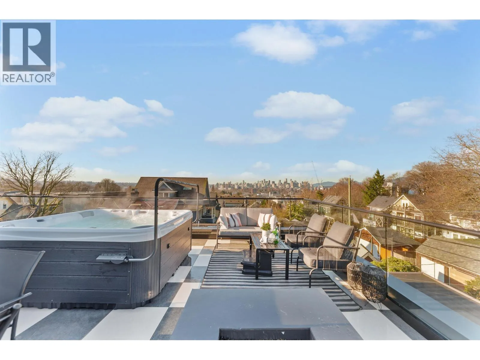 GRANDVIEW/WOODLANDS. Striking 1/2 duplex by AWARD-WINNING BRICKHOUSE BUILDING & CHRISTOPHE VAISSADE DESIGN, showcasing exceptional construction and craftsmanship. A show-stopping 512 SQ FT ROOFTOP DECK with HOT TUB, FIRE PIT, BUILT-IN BBQ, and PANORAMIC CITY & MOUNTAIN VIEWS-a rare offering. The main floor features a BRIGHT, OPEN-CONCEPT LAYOUT, expansive windows, and a CUSTOM KITCHEN WITH PREMIUM MILLWORK anchored by a LARGE ISLAND-RARE IN DUPLEX HOMES. Seamless INDOOR-OUTDOOR FLOW to a PRIVATE BACKYARD. The SPACIOUS PRIMARY BEDROOM includes CUSTOM ACCENT MILLWORK and a DOUBLE-VANITY ENSUITE, plus two additional generously sized bedrooms. Striking curb appeal with BOLD EXTERIOR COLOURS, STONEWORK & MODERN CLADDING. Walkable to schools, transit, and LIVELY COMMERCIAL DRIVE. (id:27476)