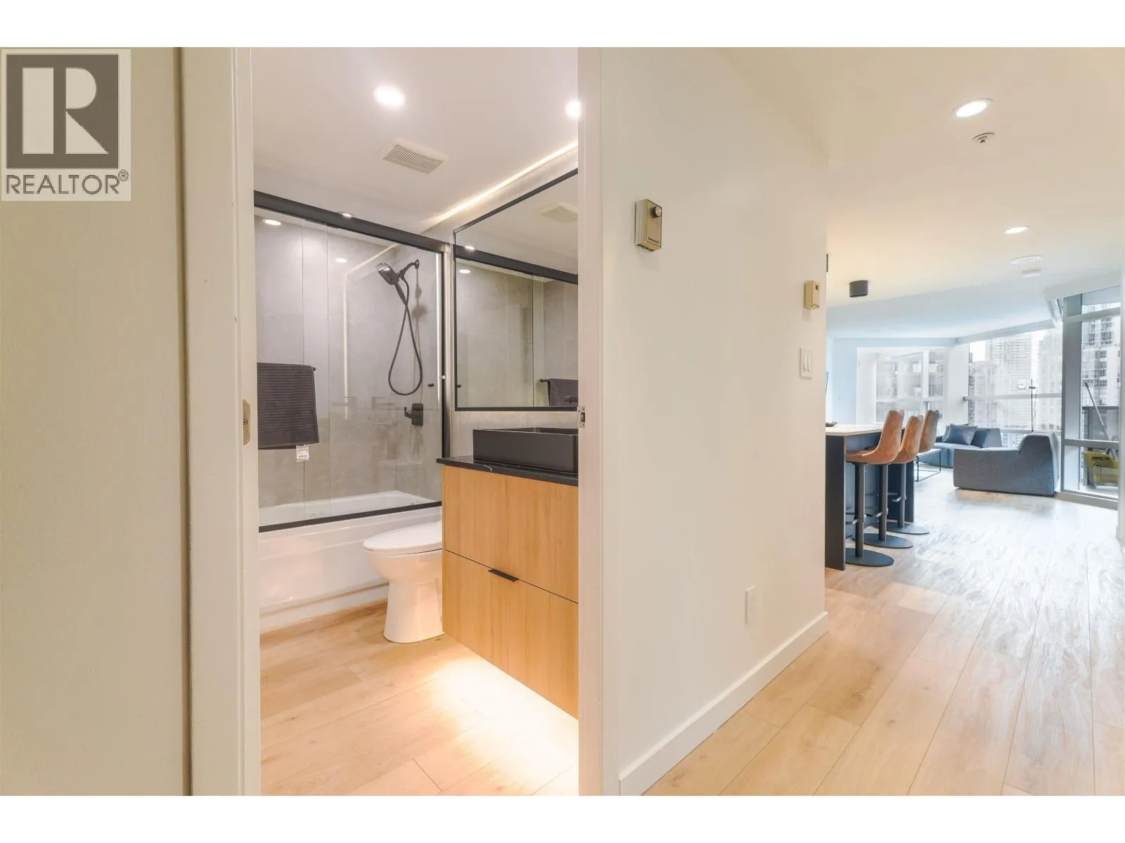 Immerse yourself in the vibrant lifestyle of Vancouver with this exquisitely furnished two-bedroom condo, offering 1149 square feet of luxurious living space. Perfectly designed for those who appreciate modern amenities and a prime location, this south-facing corner suite promises both comfort and style. The condo features a spacious king-size master bedroom, complemented by a second bedroom and two well-appointed bathrooms. The living area is enhanced by a flat screen TV, providing an ideal space for relaxation and entertainment. Air conditioning ensures a comfortable environment throughout the year, while in-suite laundry adds convenience to your daily routine. (id:27476)