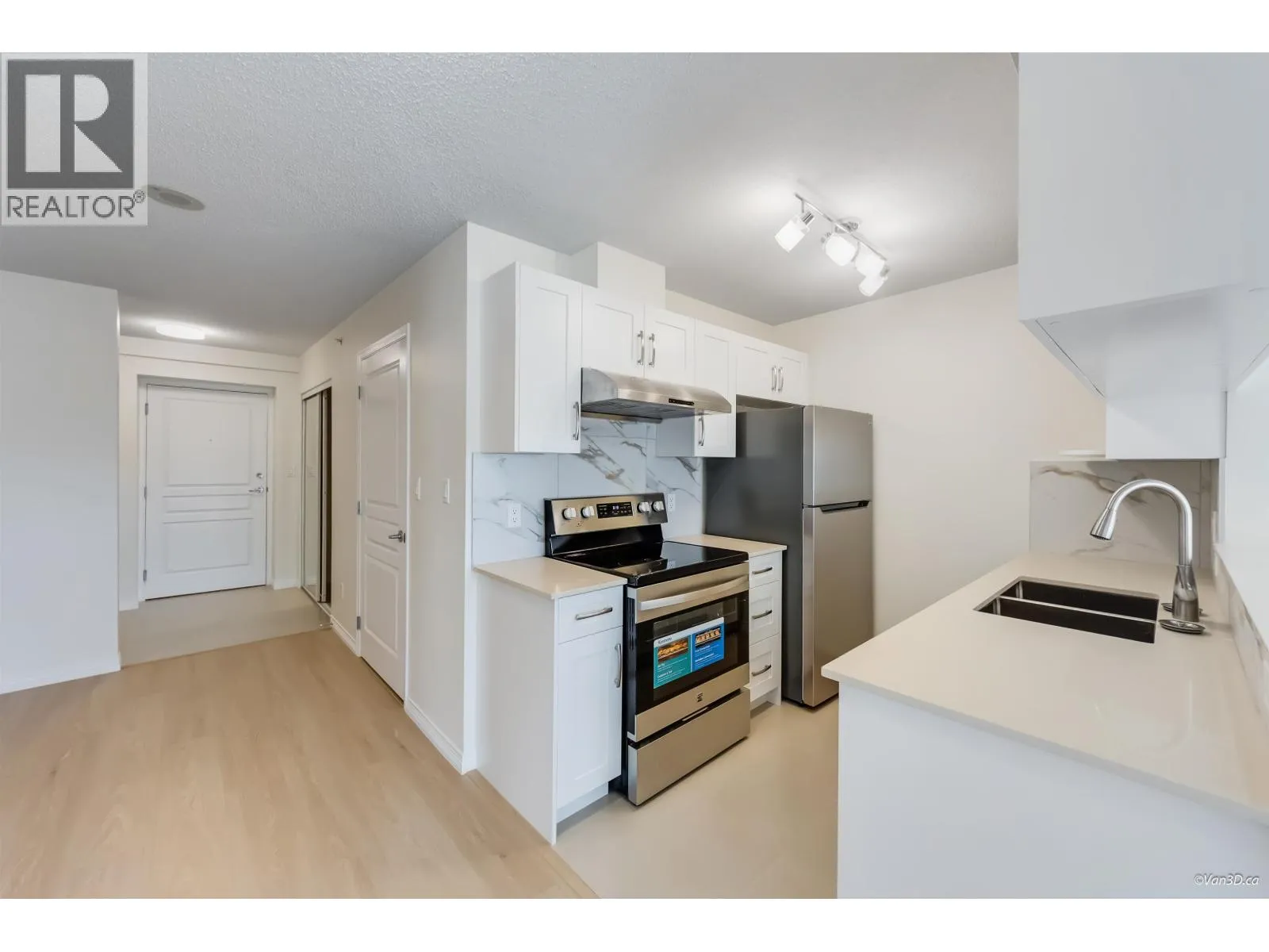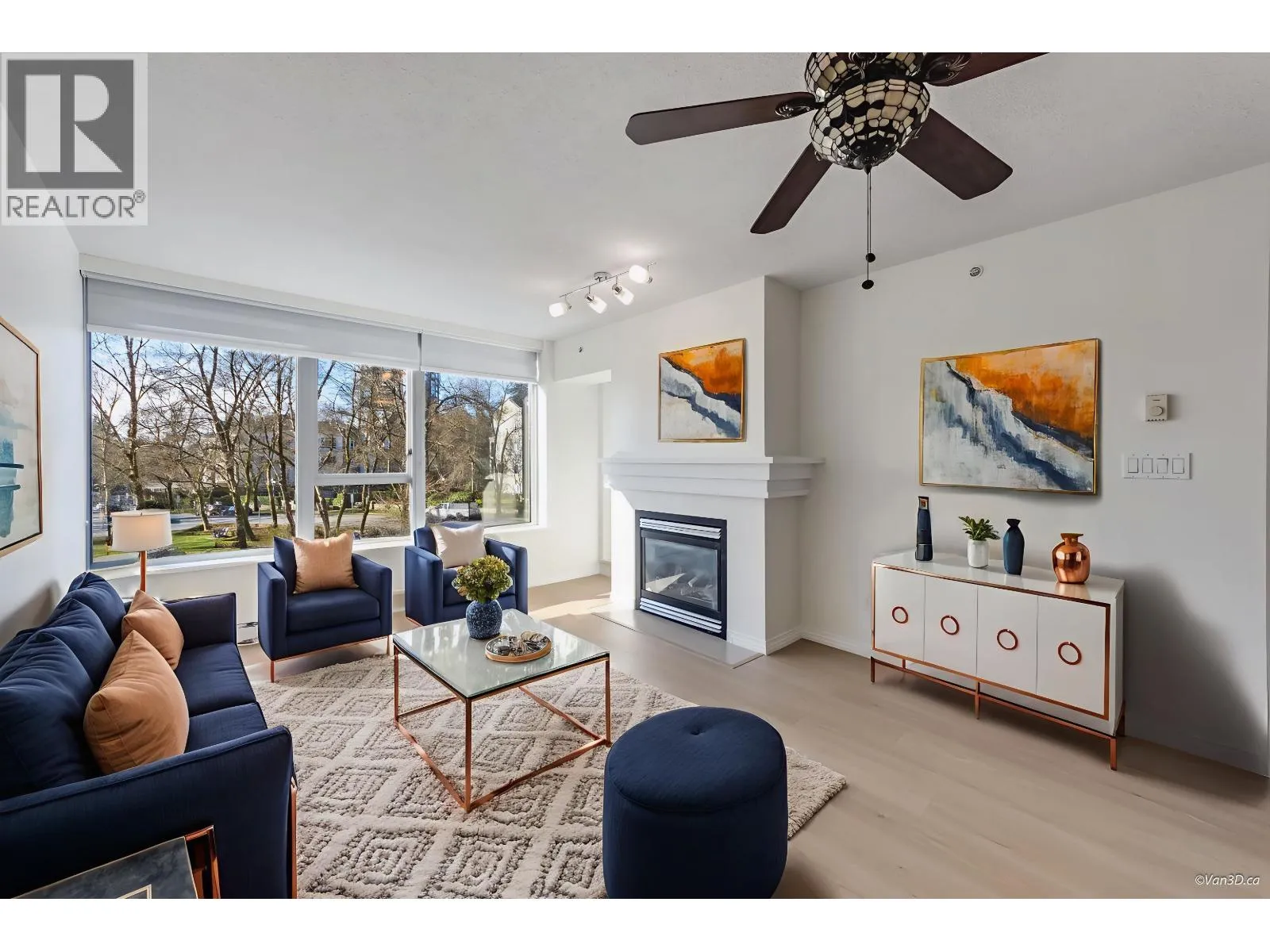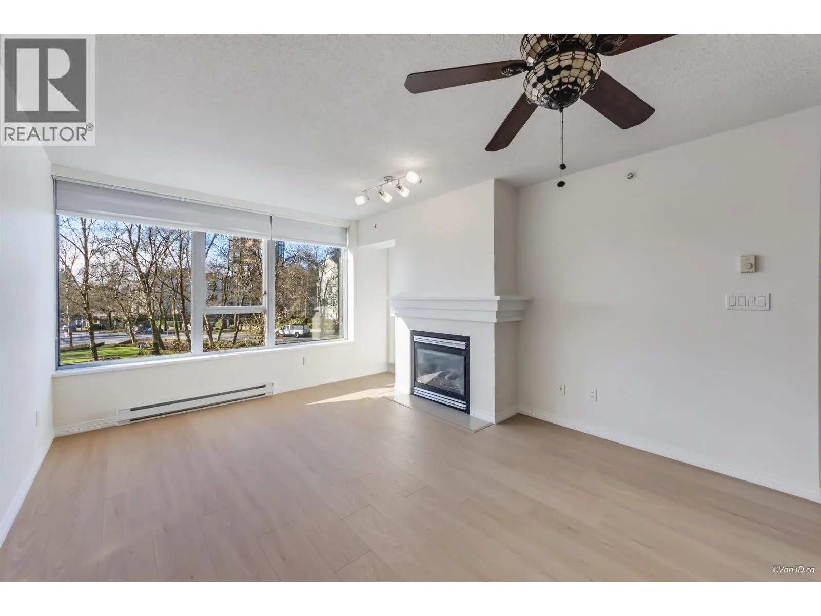 Welcome to this renovated 1 bed + den home in UBC´s Hampton Place. This 761 square ft residence features a functional layout with new tile, fresh paint, and a convenient entry nook. The flexible den is perfect for a home office, while the spacious laundry room provides rare extra storage. The refreshed kitchen boasts new stainless steel appliances and quartz countertops, flowing into an open living area with a gas fireplace and west-facing small park views. The king-sized bedroom and living room both access a large balcony. This unit includes two side-by-side parking stalls and a storage locker. Virtual staging showing the potentials and for reference only. Van3D floorplan measured 761 sqft; Strata plan shows 715 sqft. Measurement is approx, Buyer and buyer agent to verify. (id:27476)