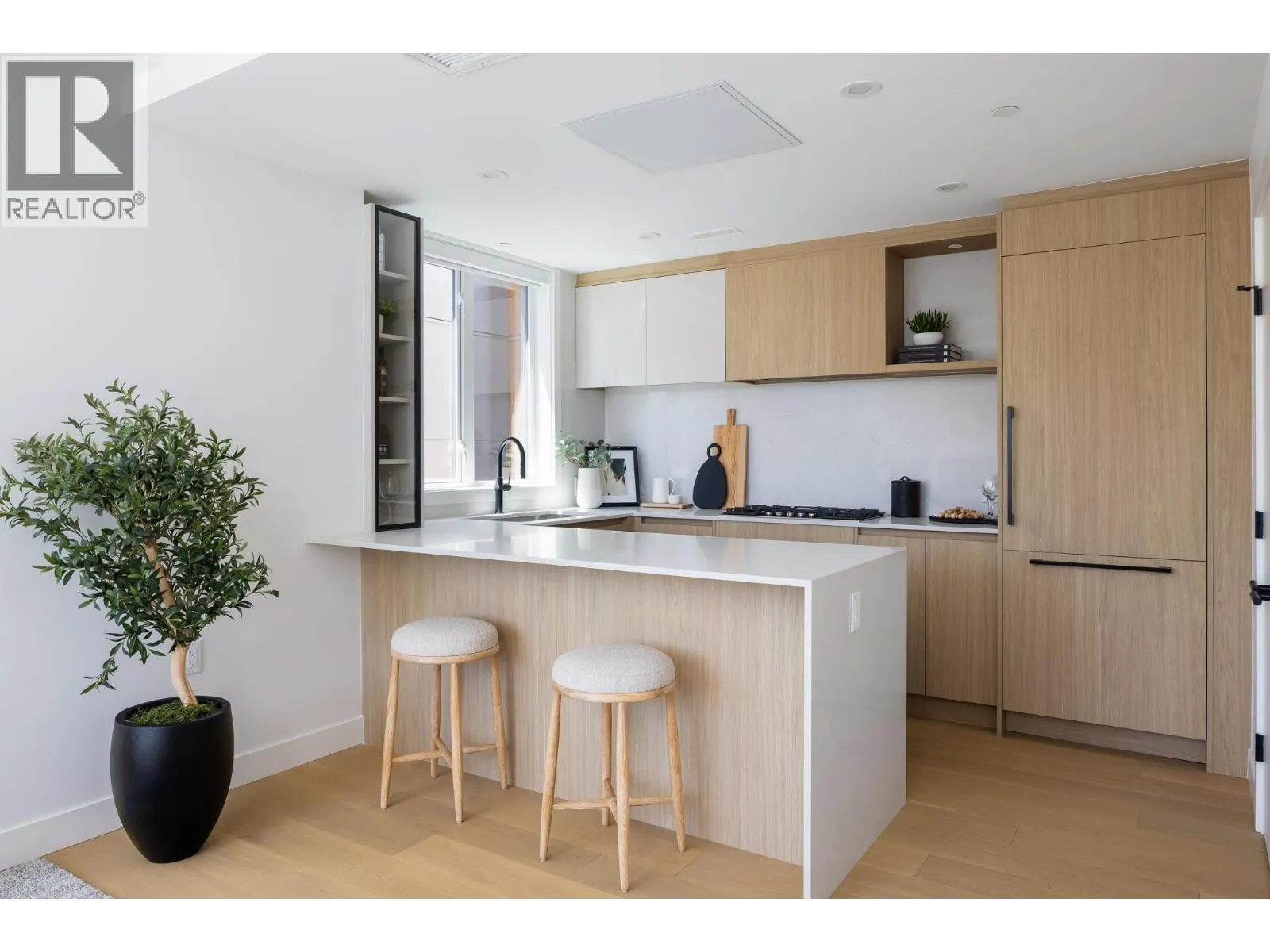 Be W 49th by Modella Developments is a collection of 17 newly built move-in ready 2 and 3-bedroom homes located in Vancouver's prestigious West Side. Tucked into a community of single-family residences, Be W 49th offers the security of neighbourhood living with the accessibility of city amenities and rapid transit, just beyond your doorstep! This corner 2-level townhome features 3 beds and 2.5 baths across spacious 24'5" wide interiors with 9' ceilings and engineered oak floors throughout. Culinary kitchens include full size Gaggenau appliances and plenty of open and closed kitchen storage. Entertain and enjoy expansive views on the large rooftop terrace. Includes 1 EV ready parking and storage locker. Open house Sat Feb 7, 2-4PM. (id:27476)