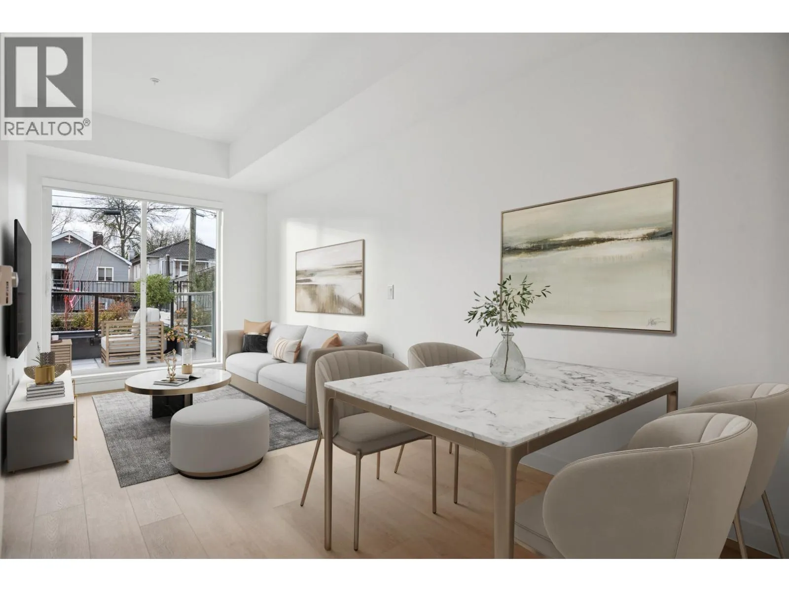 BRIGHT & EFFICIENTLY DESIGNED 1 BEDROOM + DEN, GROUND LEVEL HOME OFFERING 535 SQ FT OF LIVING PLUS A 128 SQ FT OVERSIZED PATIO ON THE QUIET SIDE OF THE BUILDING! Modern L-shaped kitchen features integrated Fulgor appliances flowing into a bright, open living area ideal for relaxing or entertaining. Versatile den is perfect for a home office or extra storage. Just steps to Trout Lake & minutes from the shops, cafés & restaurants of Commercial Drive. Easy access to Commercial/Broadway skytrain station, transit & daily conveniences. Enjoy shared amenities including a community room, rooftop garden, playground & outdoor recreation space. A fantastic opportunity in a central, walkable location! 1 PARKING & 1 LOCKER. THIS IS ONE NOT TO MISS! (id:27476)